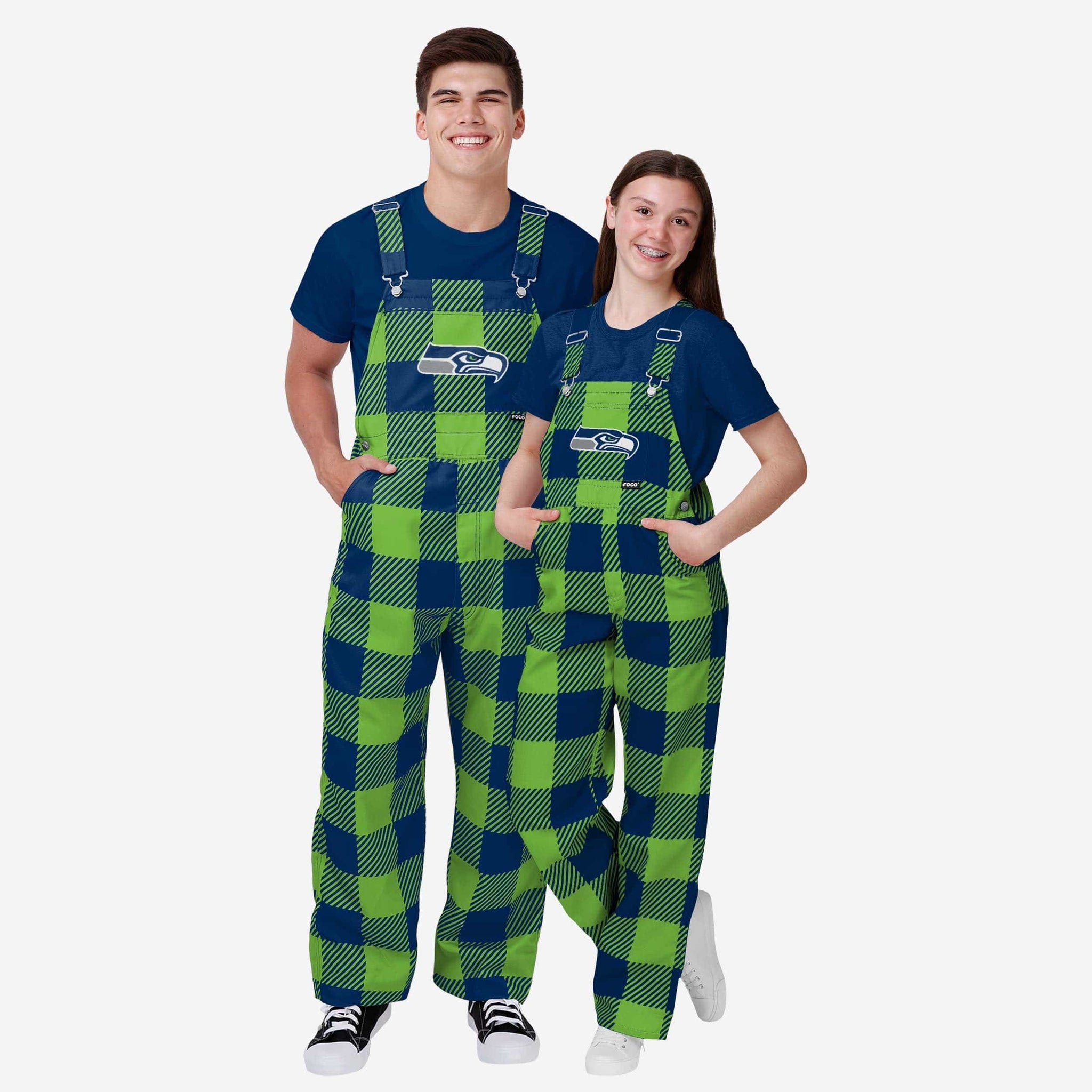 Seattle Seahawks Youth Plaid Bib Overalls FOCO - FOCO.com