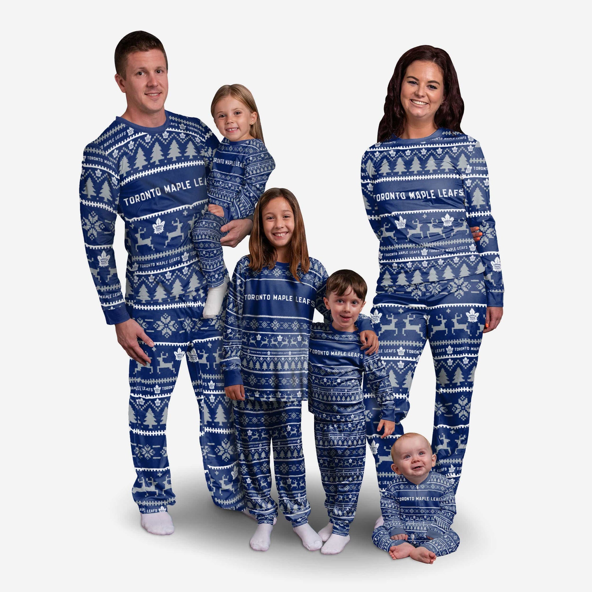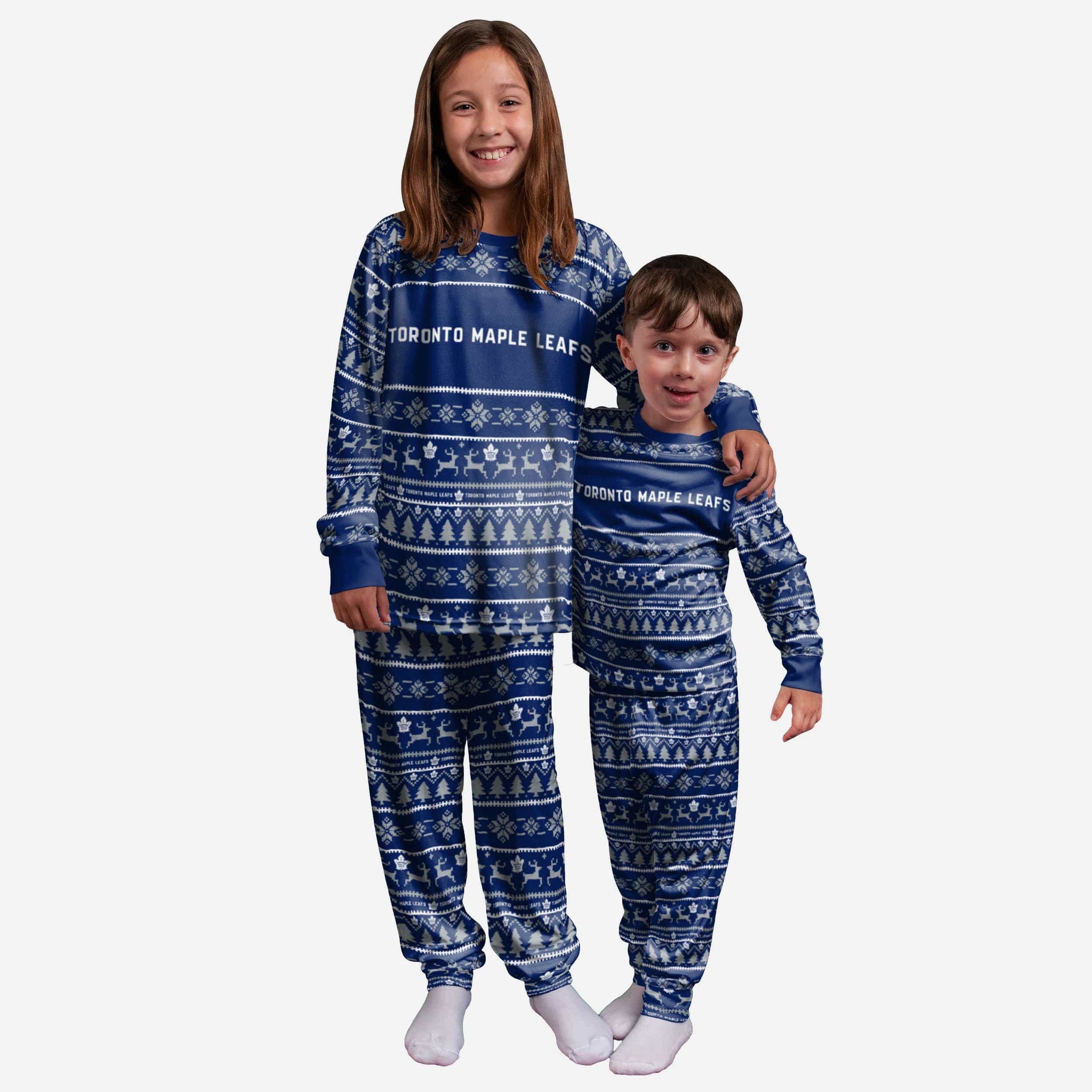 Get some matching family pajamas to turn your good night's sleep into a great night's sleep. You won't want to miss these kids' team pajamas. These youth PJ's are comfortable and show off your team spirit in the form of some sweet youth jammies. Introducing Toronto Maple Leafs Youth Family Holiday Pajamas. Don't forget to take your holiday photo with the family wearing matching Christmas pajamas.