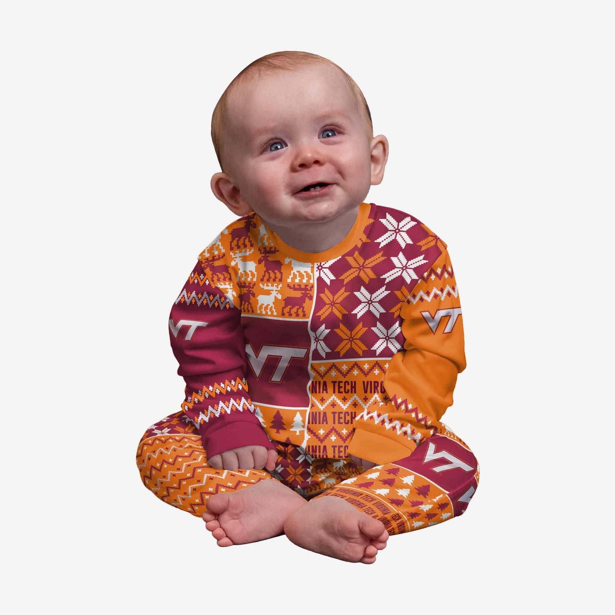 Get your young fan started early this holiday season in these Virginia Tech Hokies Infant Busy Block Family Holiday Pajamas! Your baby will absolutely love these matching Christmas pajamas! Make sure your infant enjoys sweet dreams filled with holiday joy by having them sleep in infant pajamas. Don't forget to take your holiday photo with the whole family wearing matching Christmas pajamas!