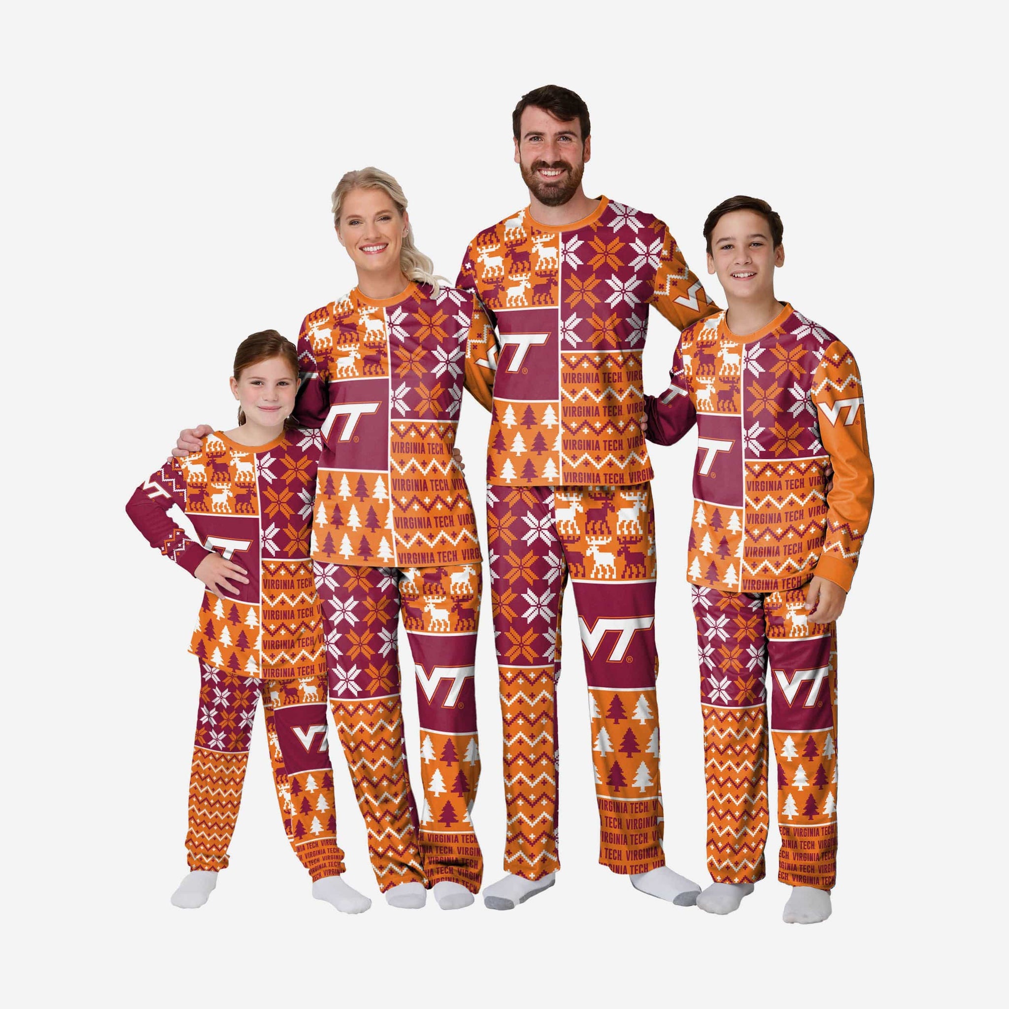 Get some matching family pajamas and dress to impress this holiday season! You won't want to miss these kids' team pajamas! These youth PJ's are comfortable and show off your team spirit in the form of some sweet youth jammies. Introducing the Virginia Tech Hokies Toddler Busy Block Family Holiday Pajamas! Don't forget to take your holiday photo with the whole family wearing matching Christmas pajamas!