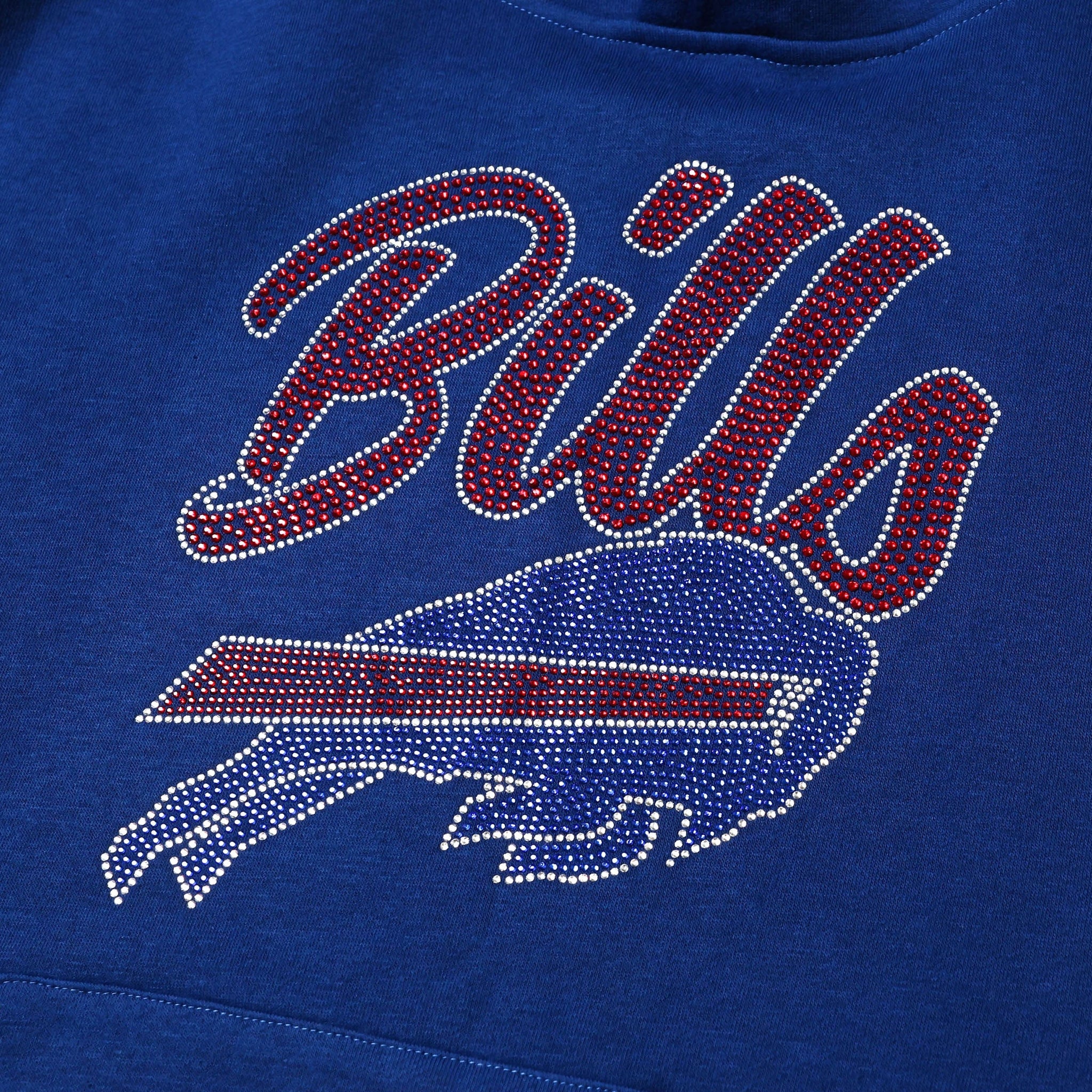 Glam is meeting game day with the Buffalo Bills Womens Rhinestone Logo Oversized Hoodie! With a bold, blinged-out logo across the chest and a relaxed, oversized fit, it’s made for cheering loud, lounging proud, and turning heads wherever you go. Shine bright. Stay warm. Rep your team.