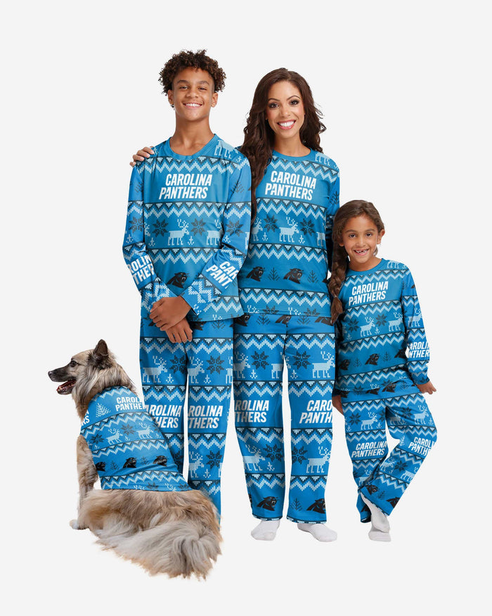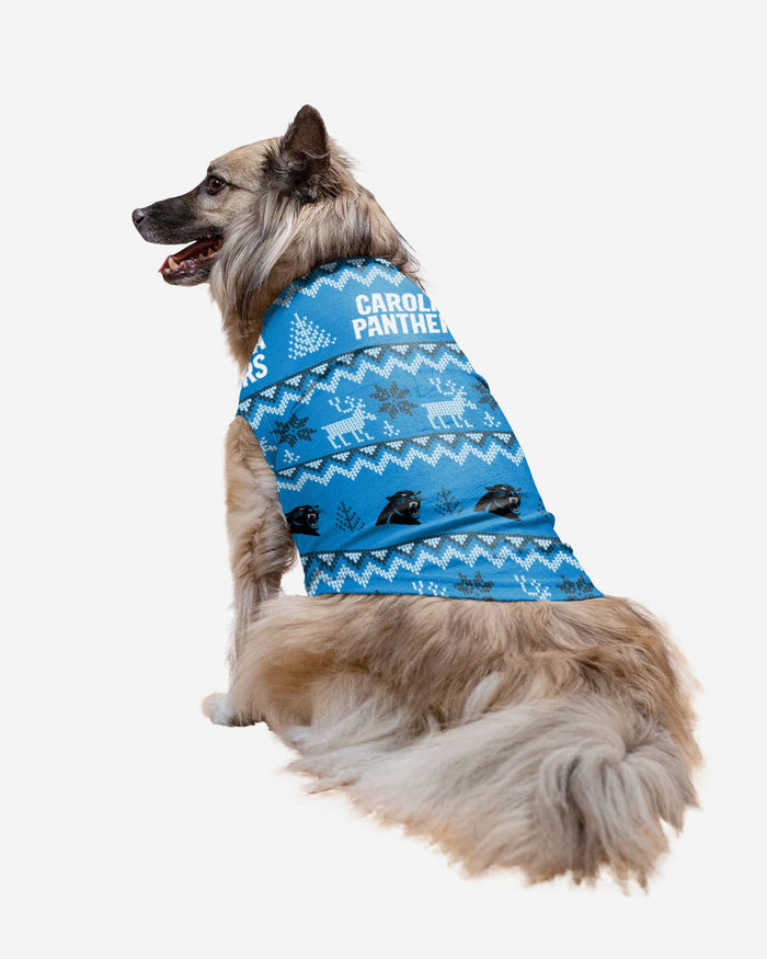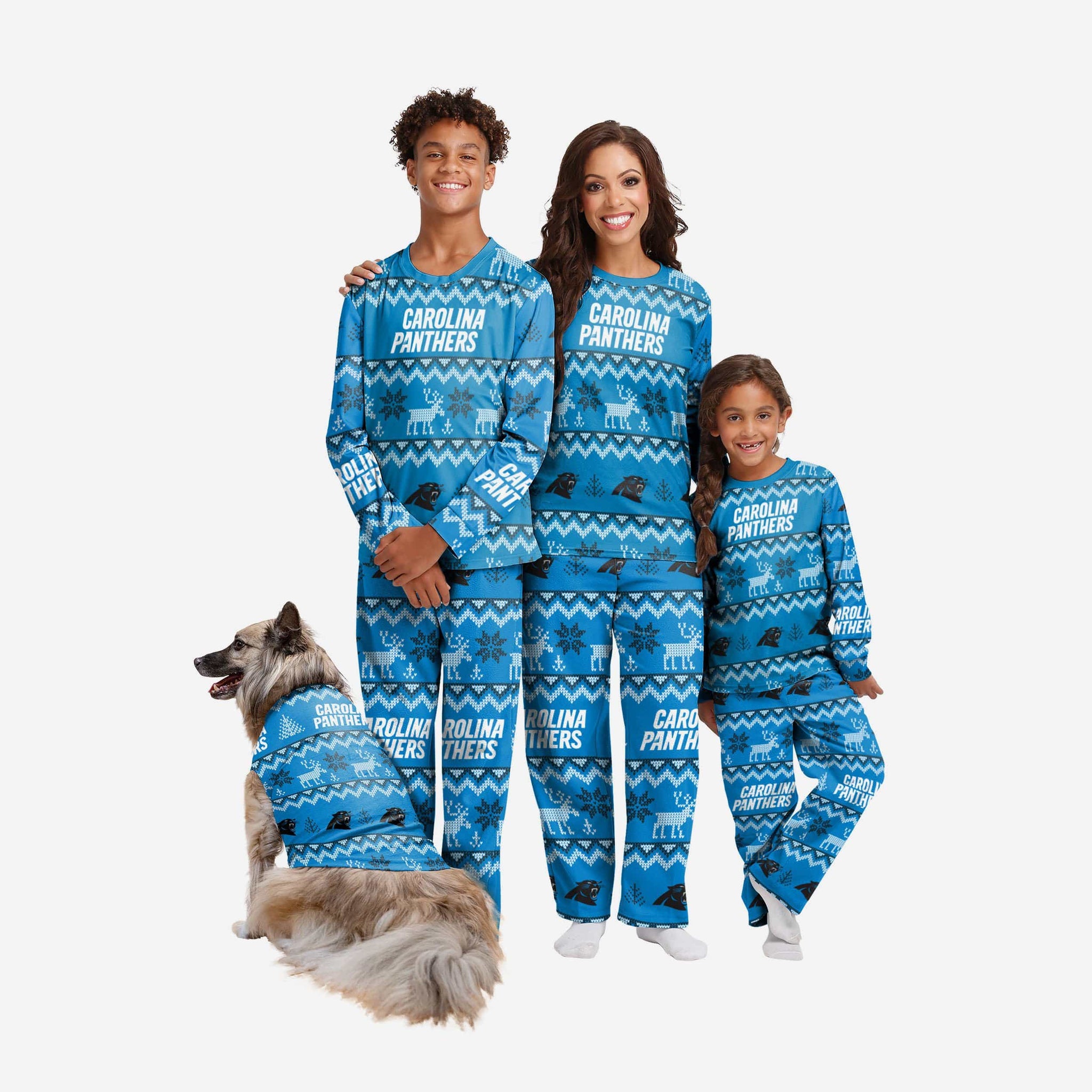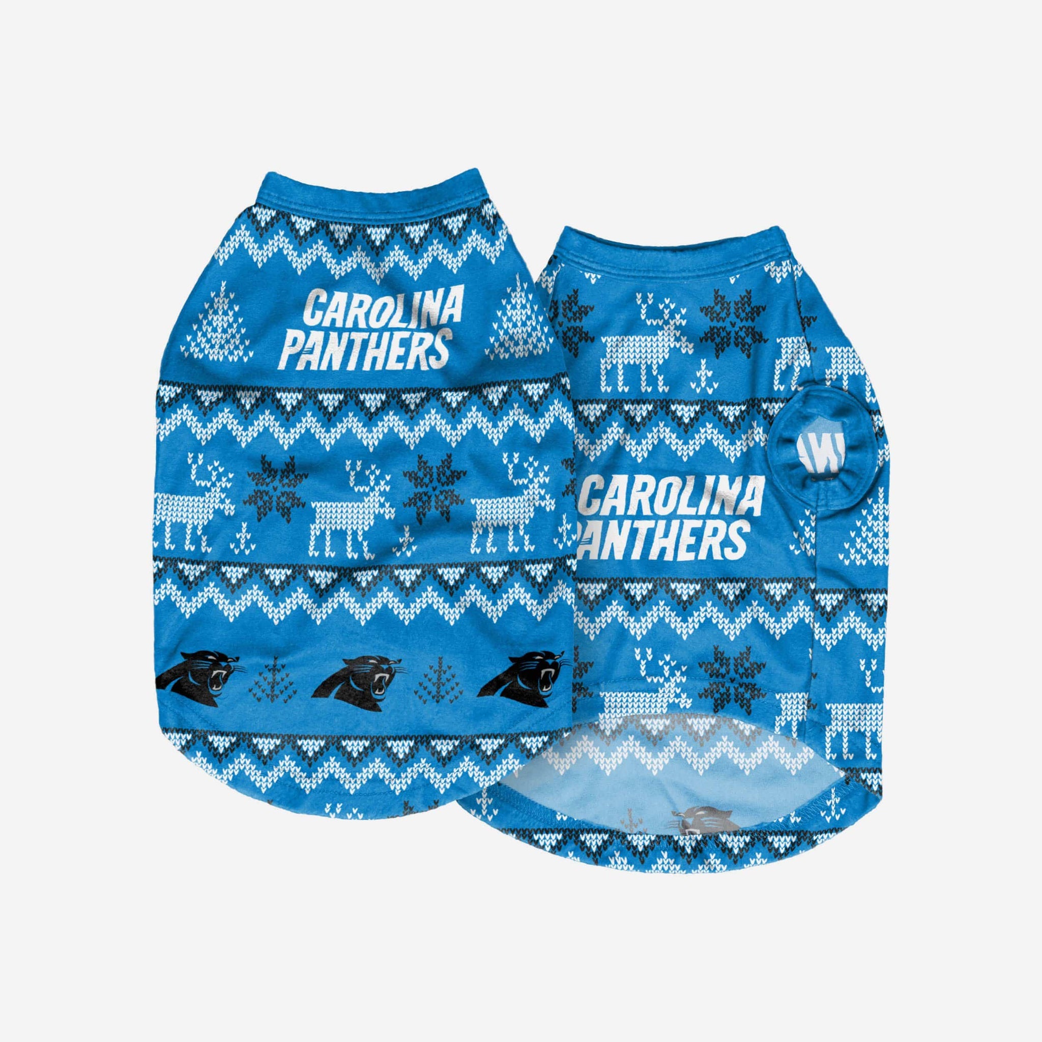 Show off your pet's holiday spirit with this dog sweater! Your good boy (or girl) will love this Carolina Panthers Dog Family Holiday Ugly Sweater so much, they'll be saying WOOF BARK AWOOO (that's THANK YOU in pup language). Don't forget to match your canine's sweater with a set of matching holiday pajamas!