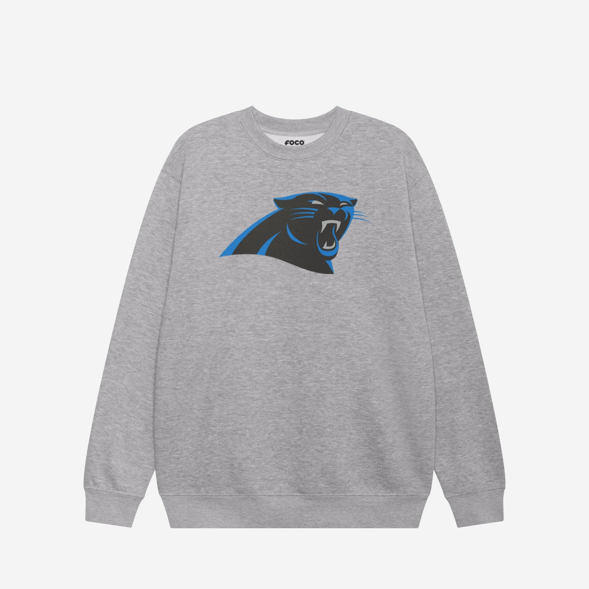 Carolina Panthers Primary Logo Crew Neck Sweatshirt FOCO Athletic Heather S - FOCO.com