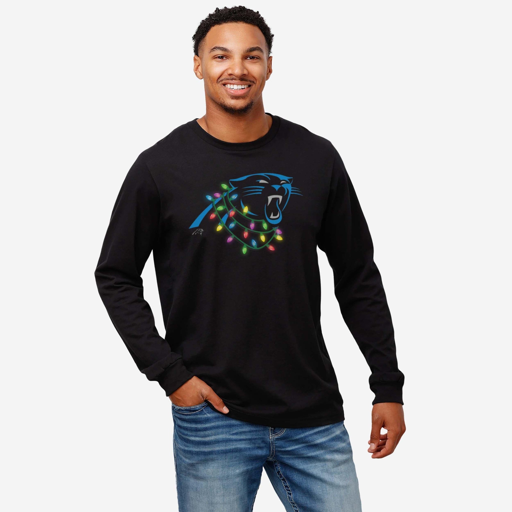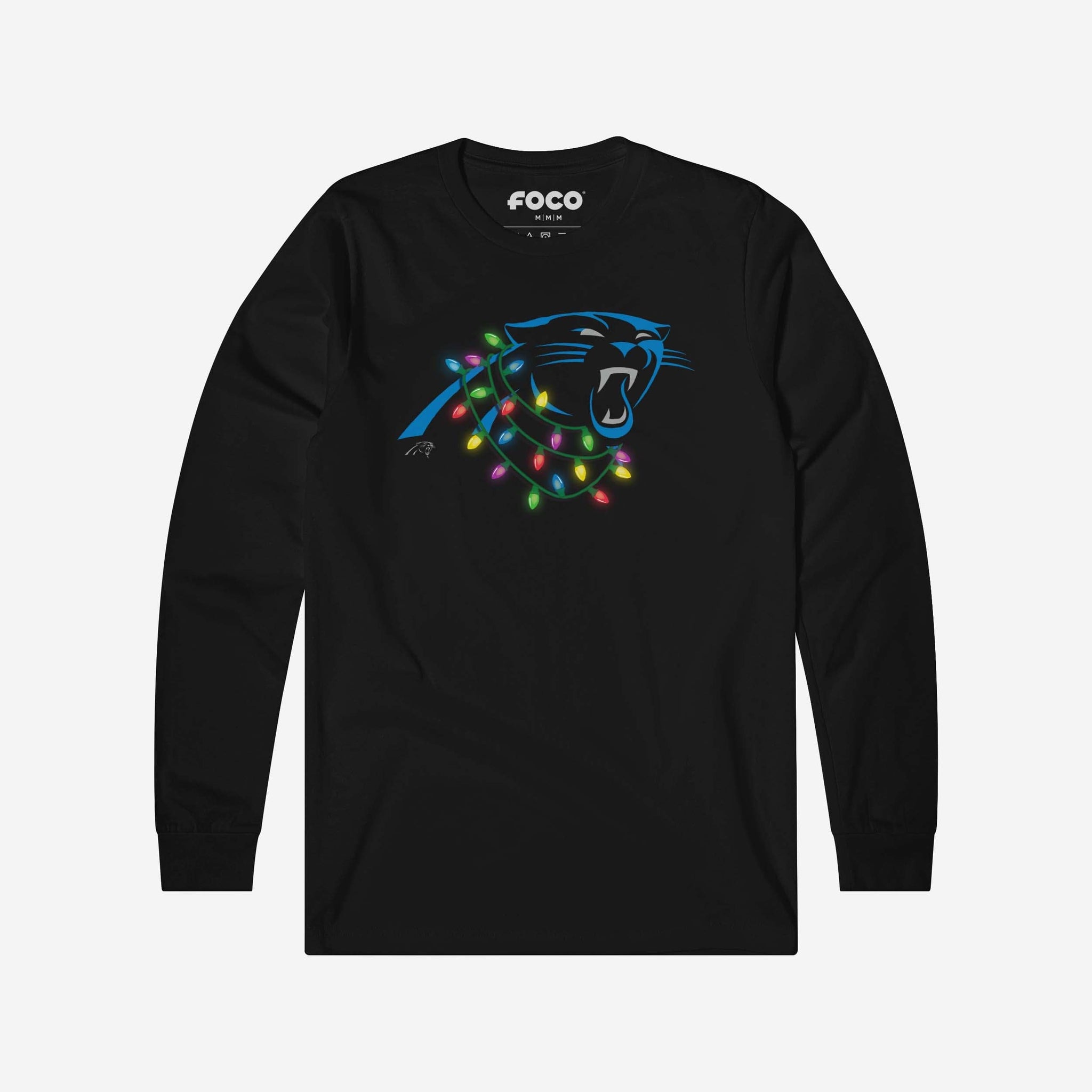 Carolina Panthers Primary Logo Holiday Lights Long Sleeve T-Shirt FOCO - FOCO.com