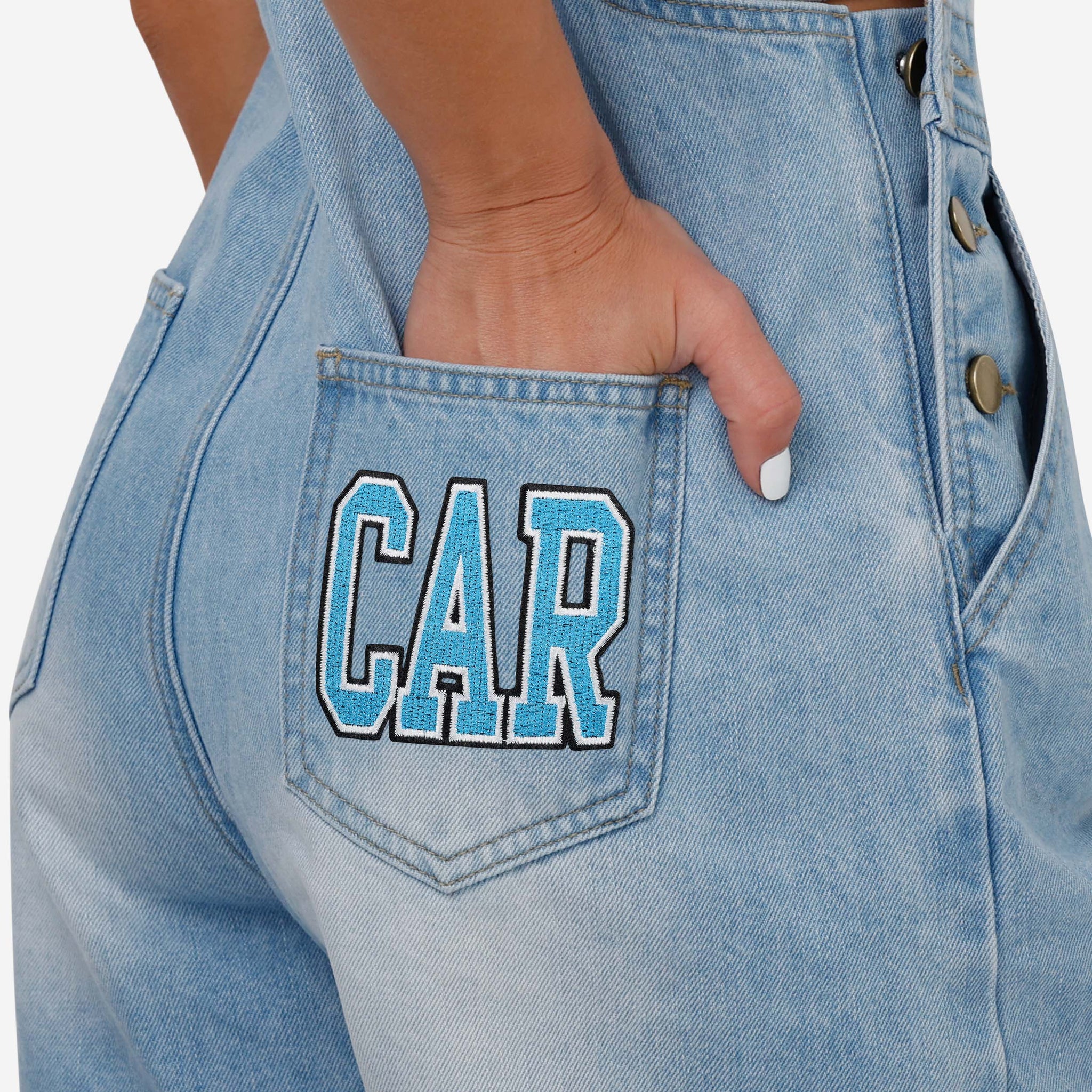 Show your team spirit in these stylish and comfortable Carolina Panthers Womens Big Logo Denim Shortalls. With their all-over denim design and bold team logo patch display, these shortalls are the perfect way to show your support for the Carolina Panthers!