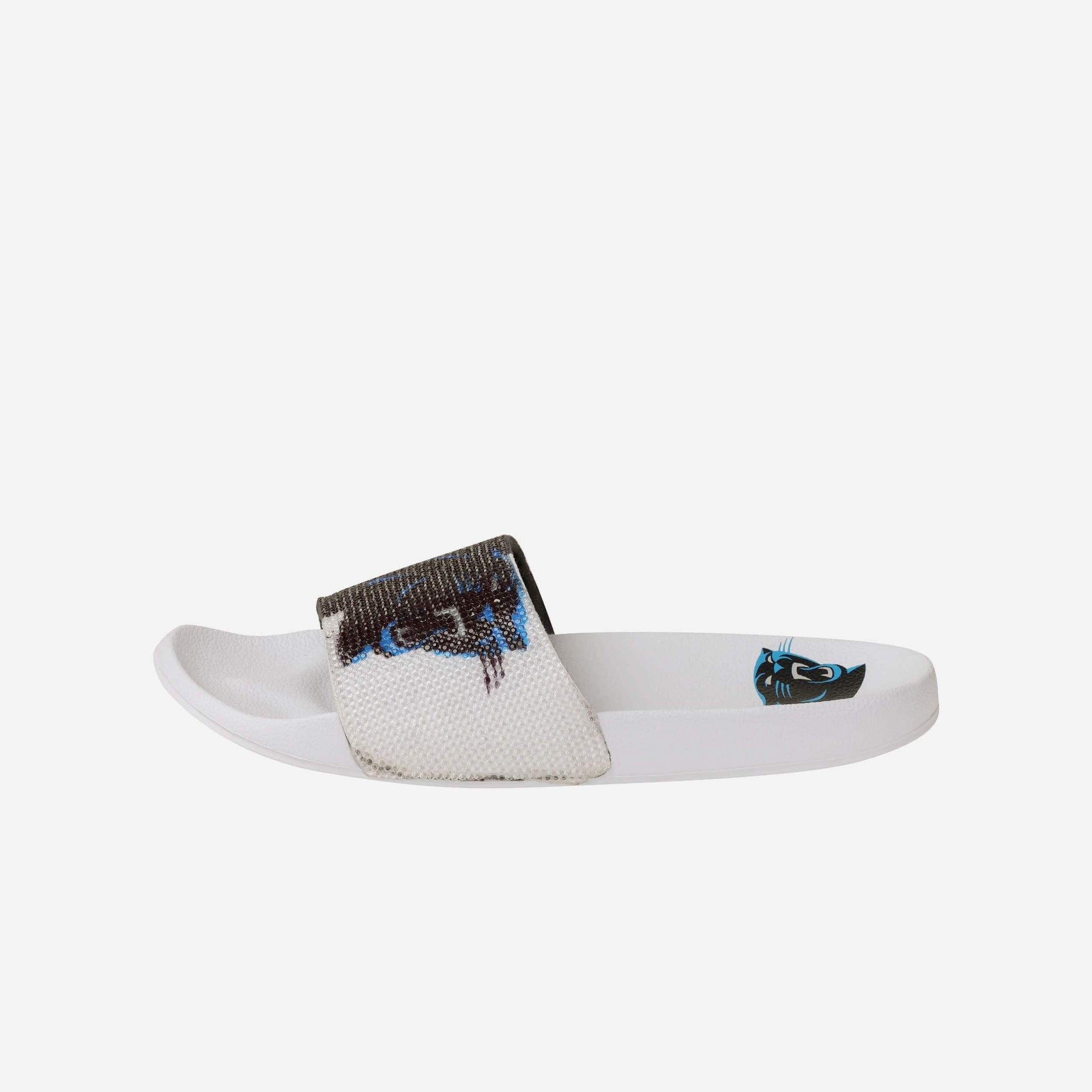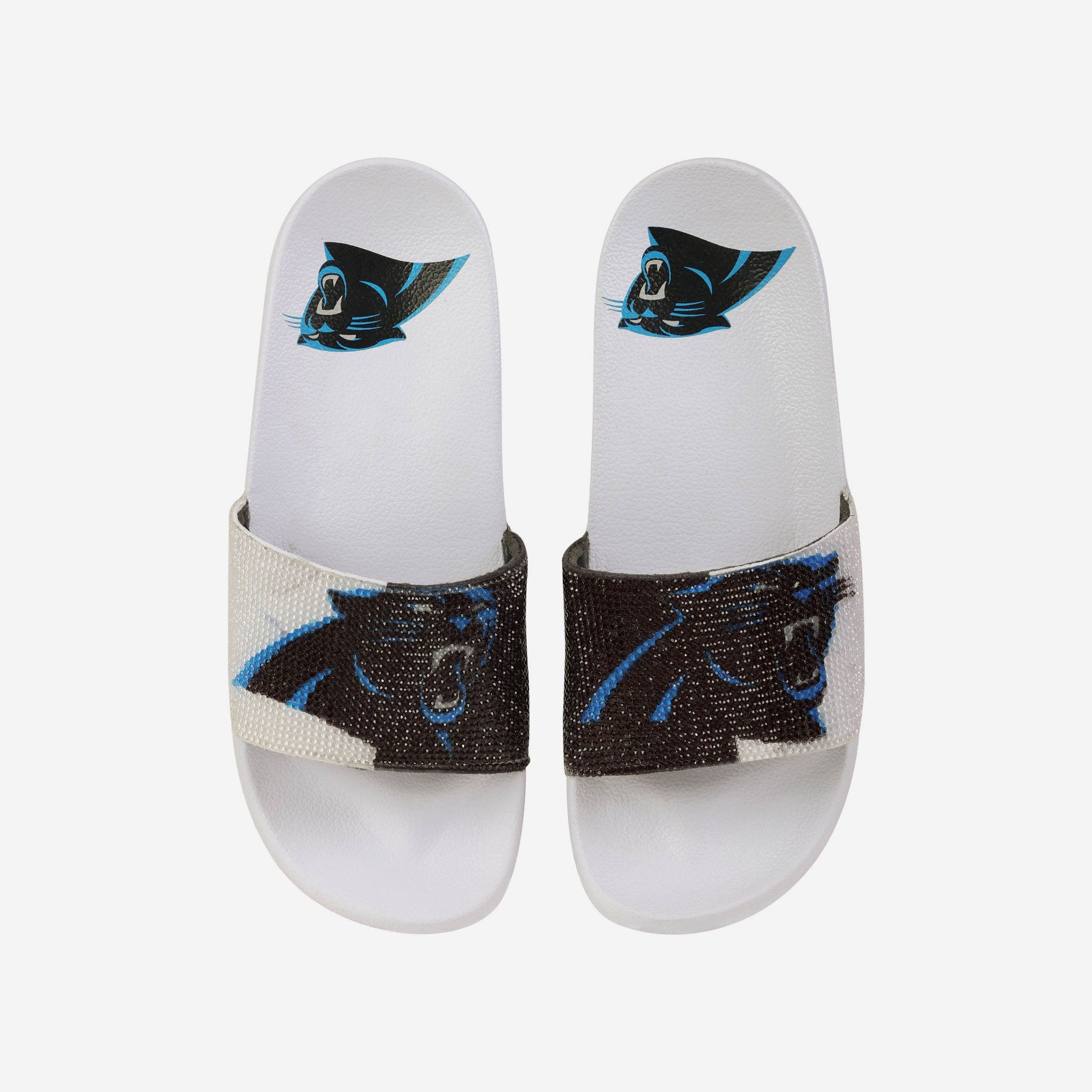 These Carolina Panthers Women's Big Logo Shimmer Slides are the jewel of fresh fan footwear! Let your team spirit shine like a beacon of awesome!