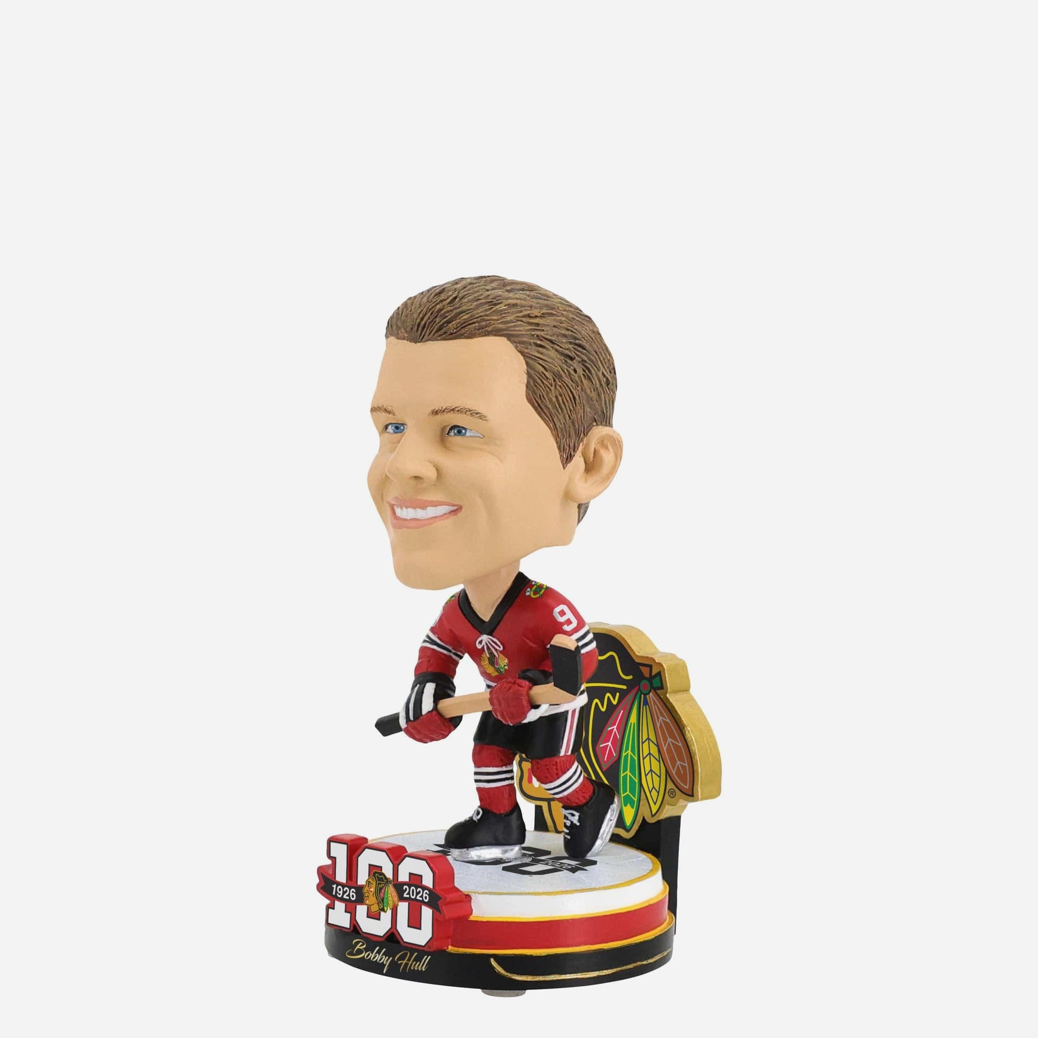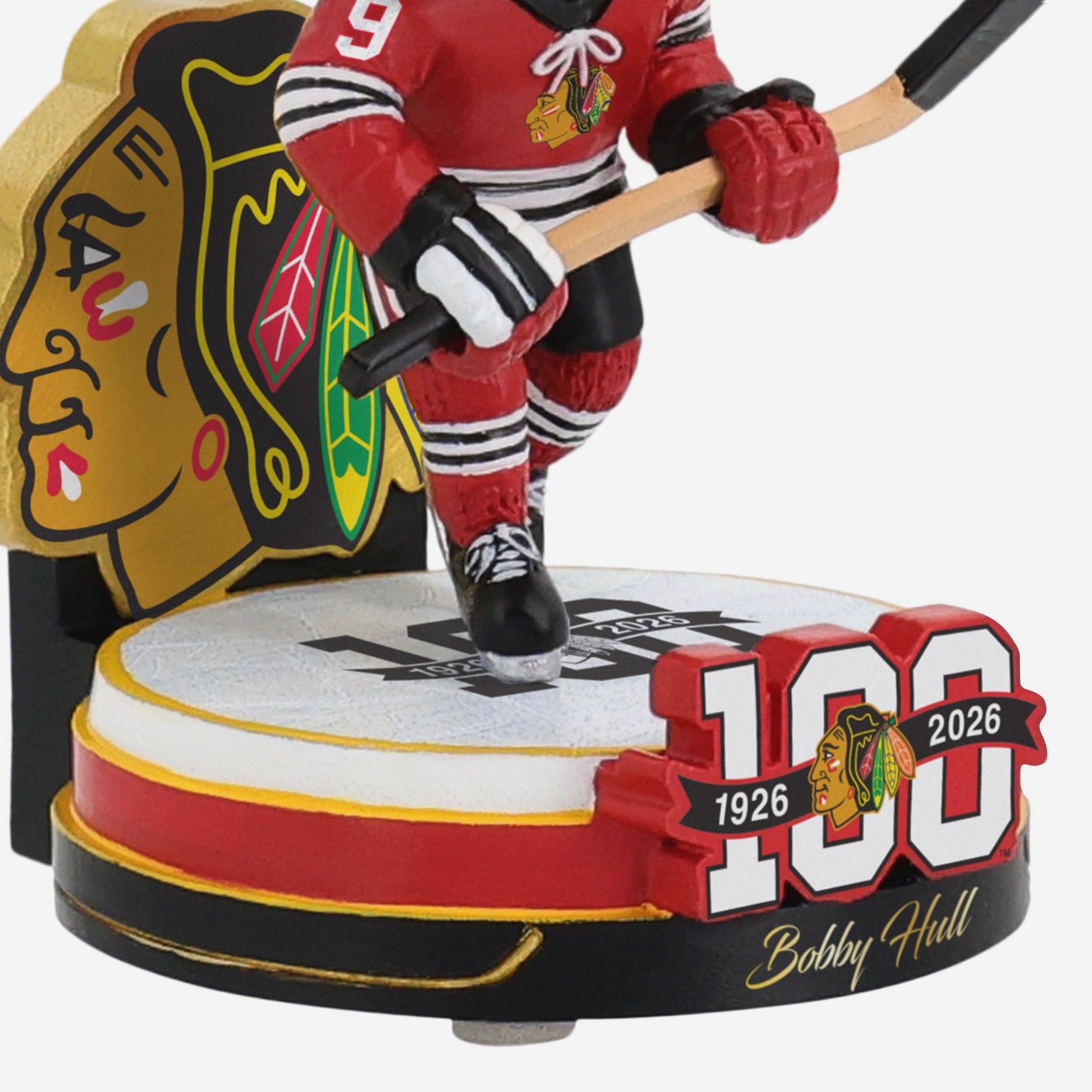 100 years of red, white, and black history. Celebrate a century of hockey in the Windy City with this Bobby Hull Chicago Blackhawks 100th Anniversary Mini Bighead Bobblehead.