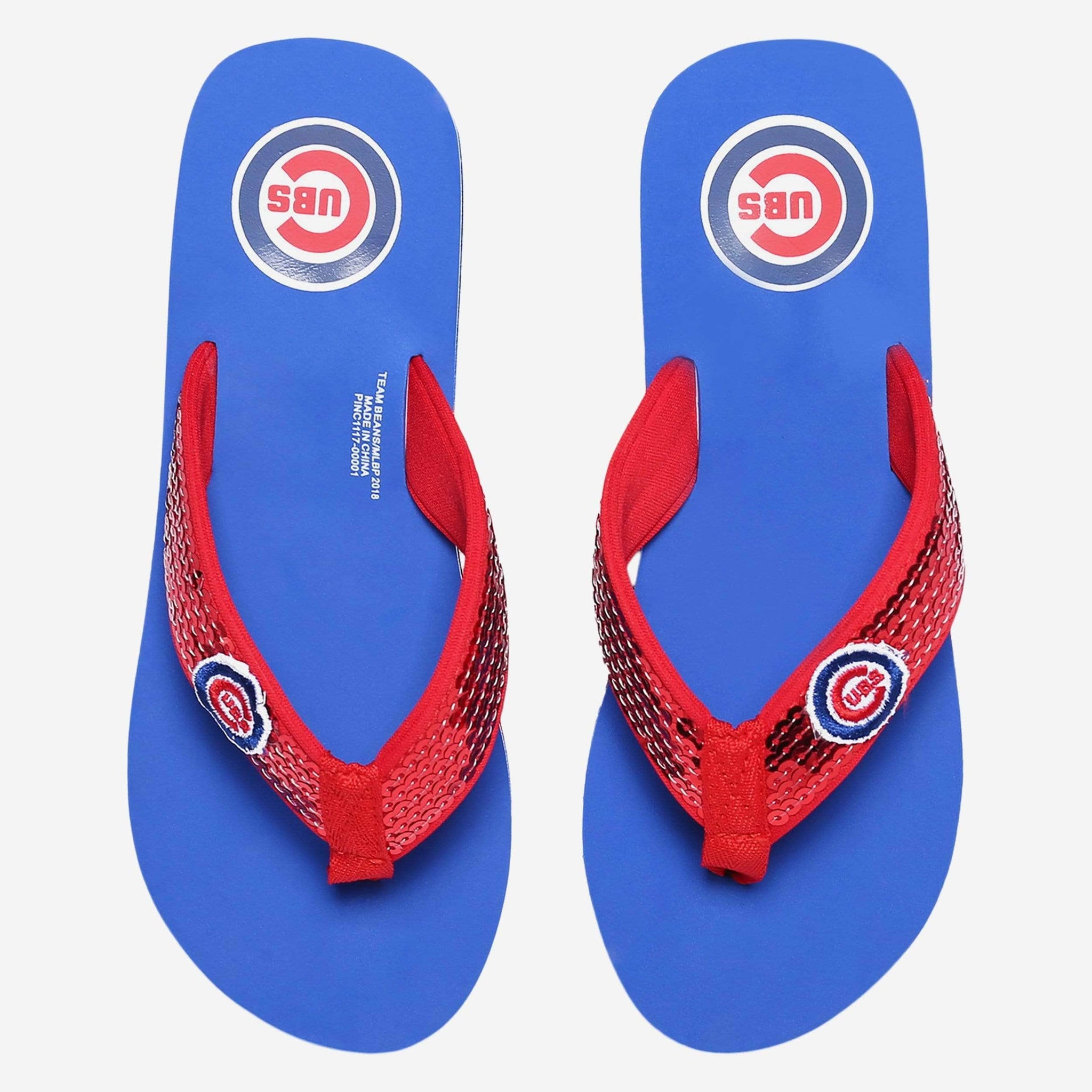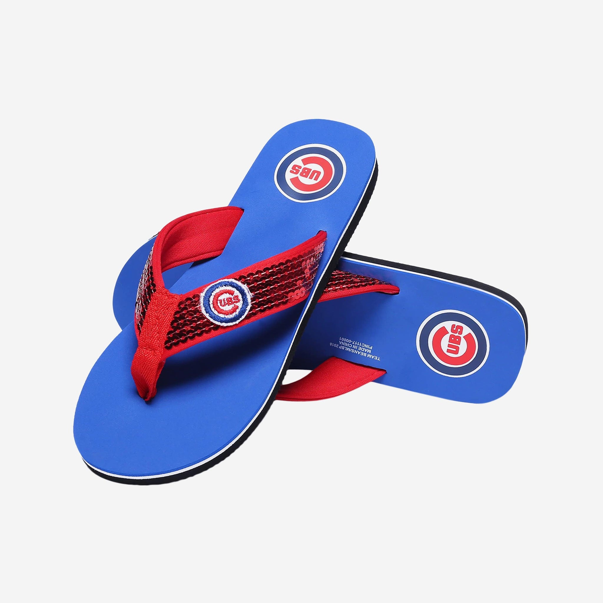 Nothing comes close to shining as bright as your team spirit. Well, nothing other than these Chicago Cubs Womens Sequin Flip Flops. Rock your fandom in comfort and style. Just don't be surprised when people need sunglasses when they look at you.