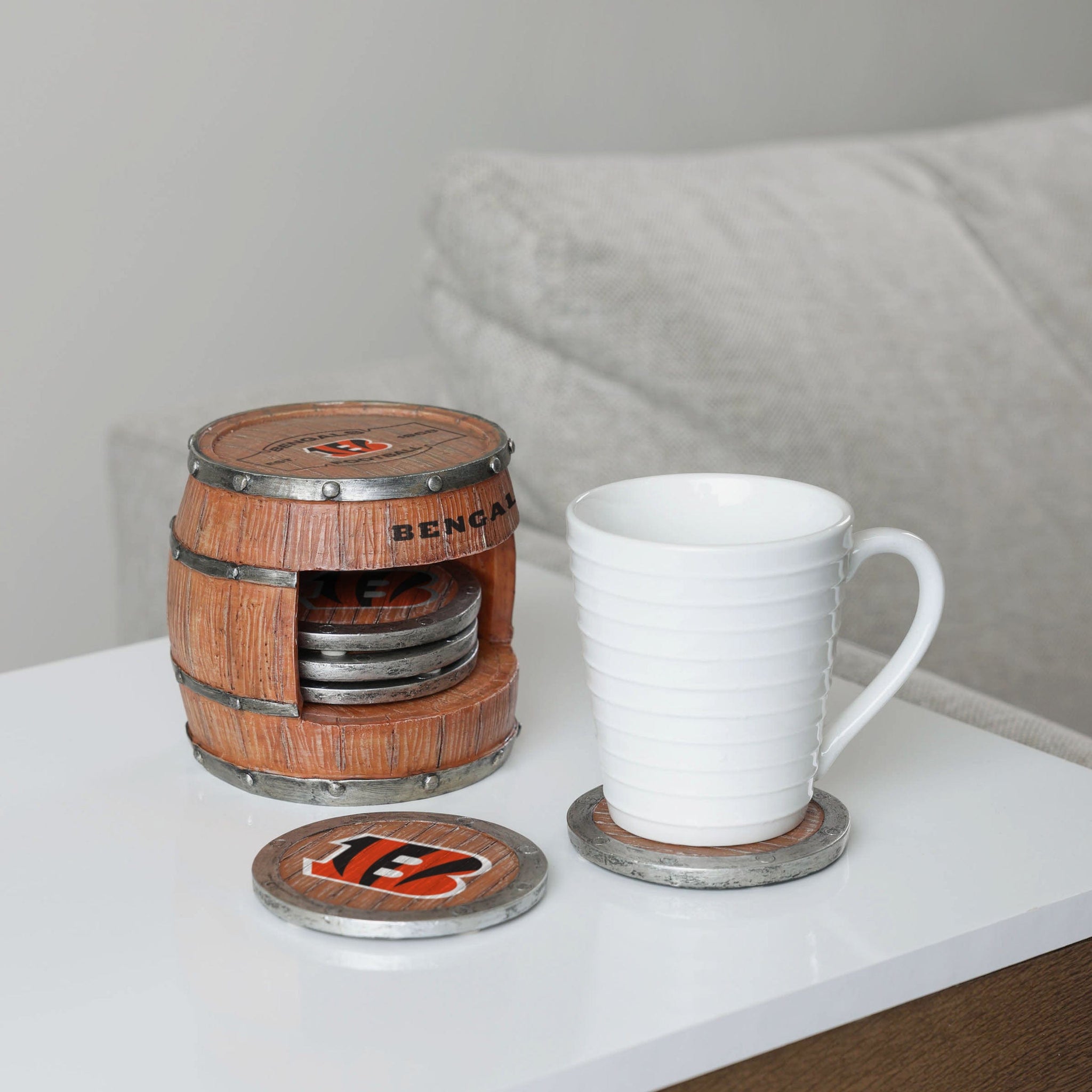 Championship rings? Yay! Unsightly rings on the coffee table? Boo! Break out the beverages worry-free and get ready for every watch party with this Cincinnati Bengals 5 Pack Barrel Coaster Set.