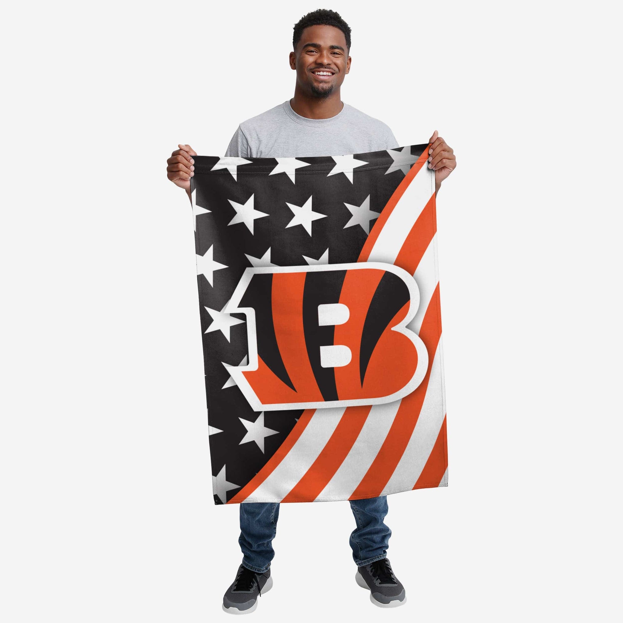 Stars, spirits, and a whole lot of team spirit. Plant your flag as the best fan around by pledging your allegiance to the Cincinnati Bengals Americana Vertical Flag.
