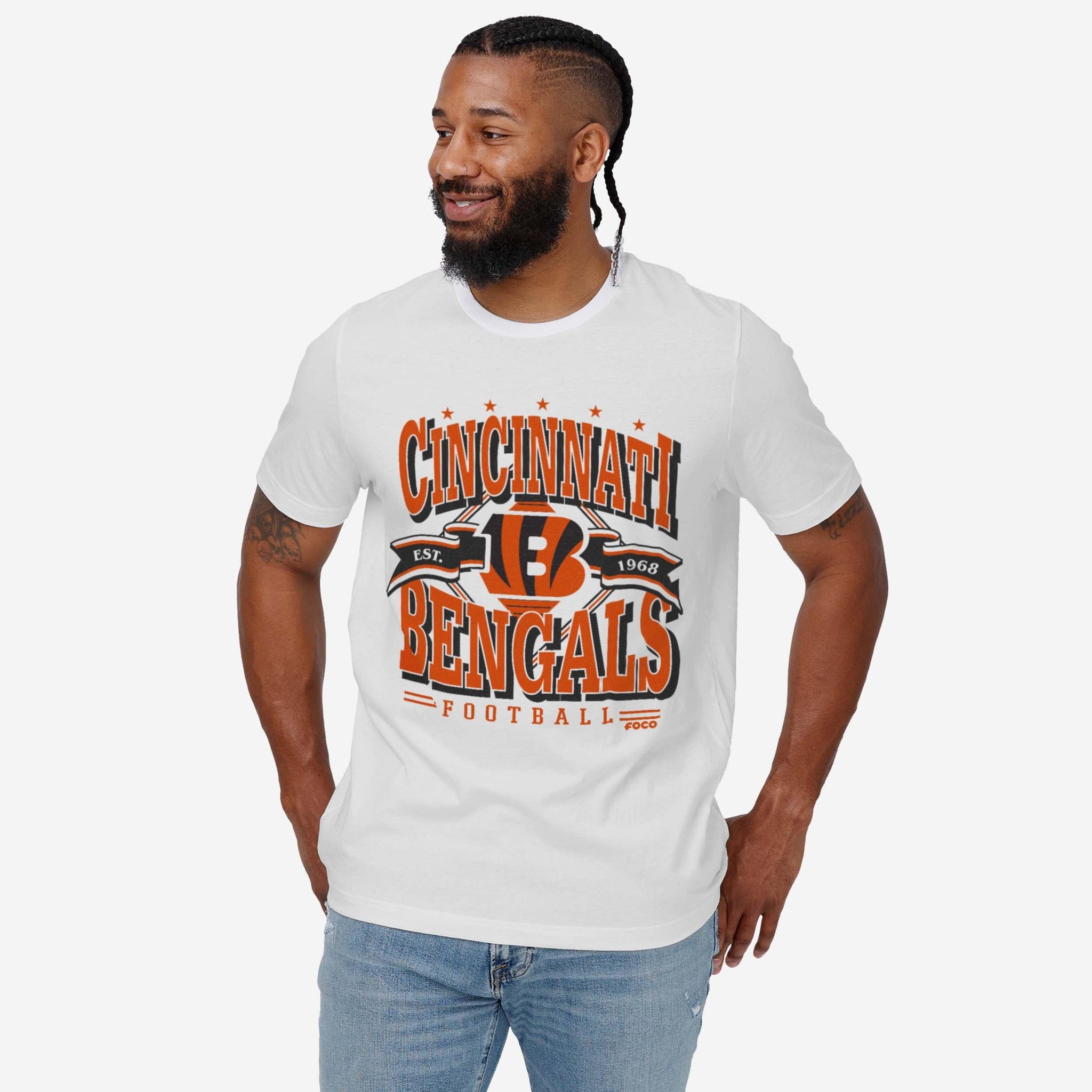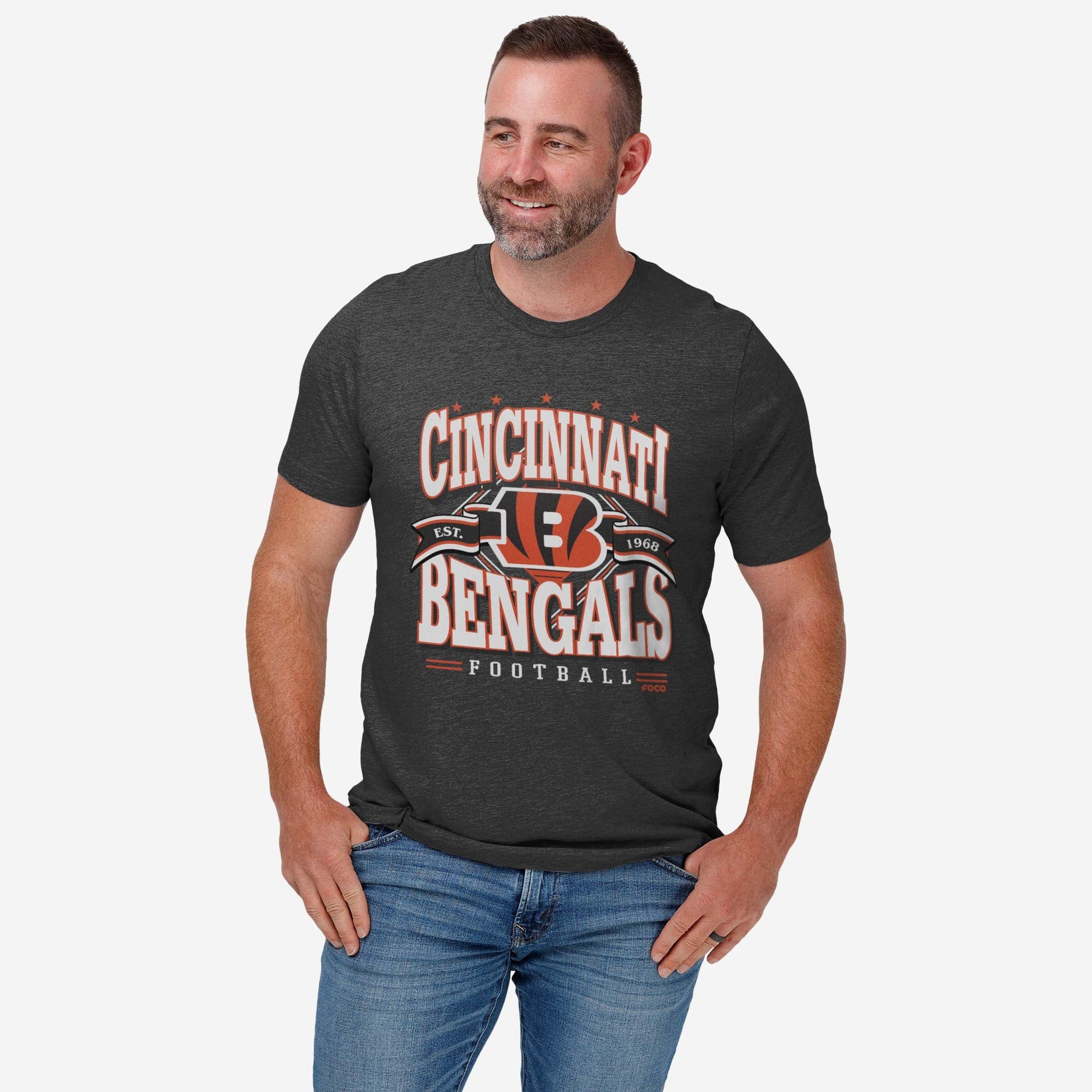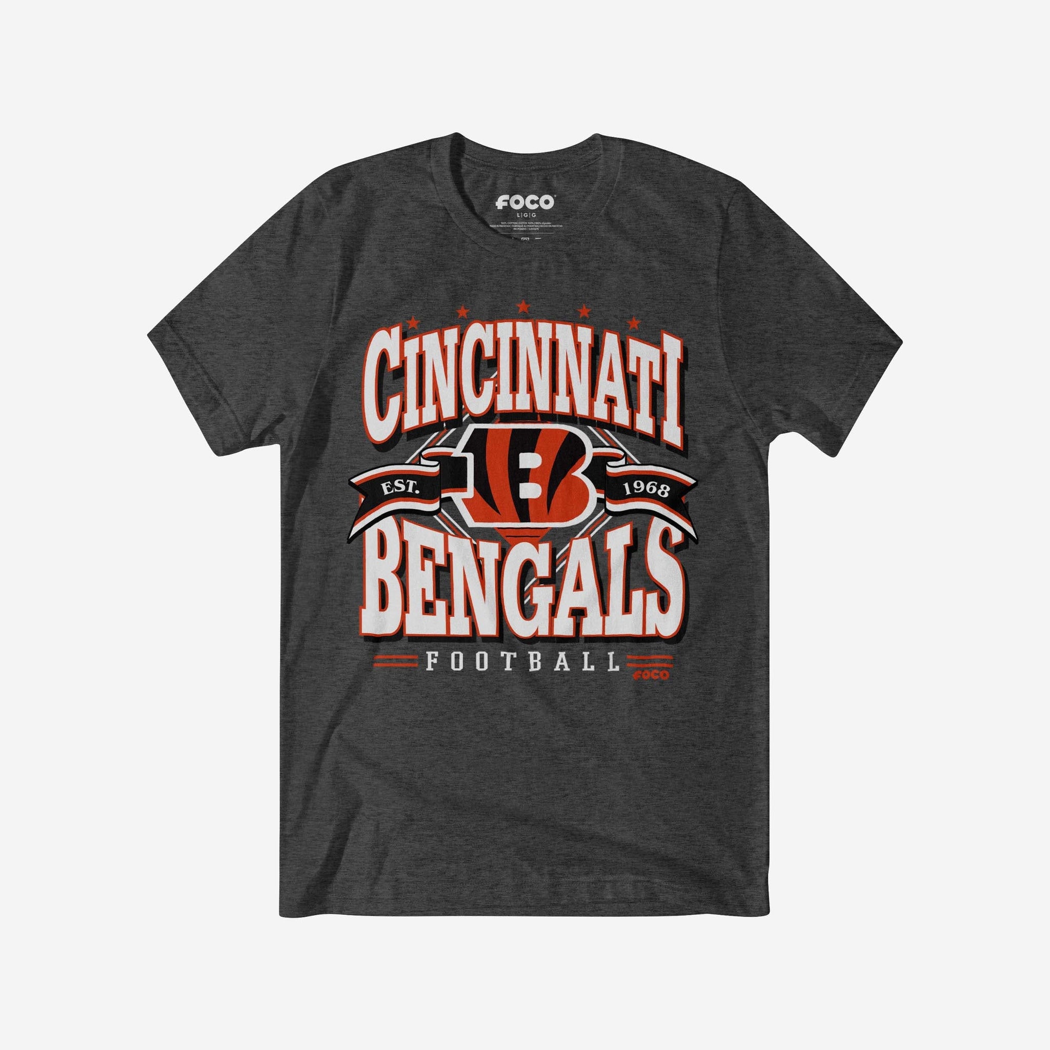 - All-over, team-colored design: This traditional t-shirt shows off the official Cincinnati Bengals colors in an all-over, team-colored design, so you can show your team spirit with pride.