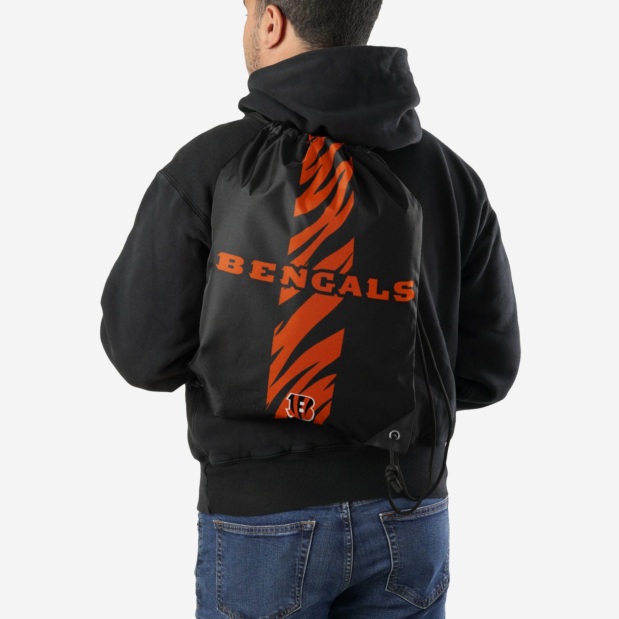 Want to get hyped with stripes? Then you want to gear up on the go with this Cincinnati Bengals Team Stripe Wordmark Drawstring Backpack.