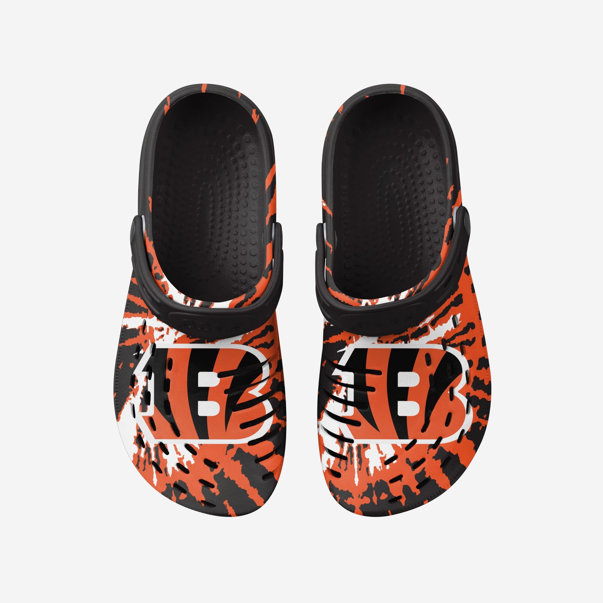 Enjoy a heaping helping of groovy goodness by standing out in these Cincinnati Bengals Tie-Dye Clogs with Straps.