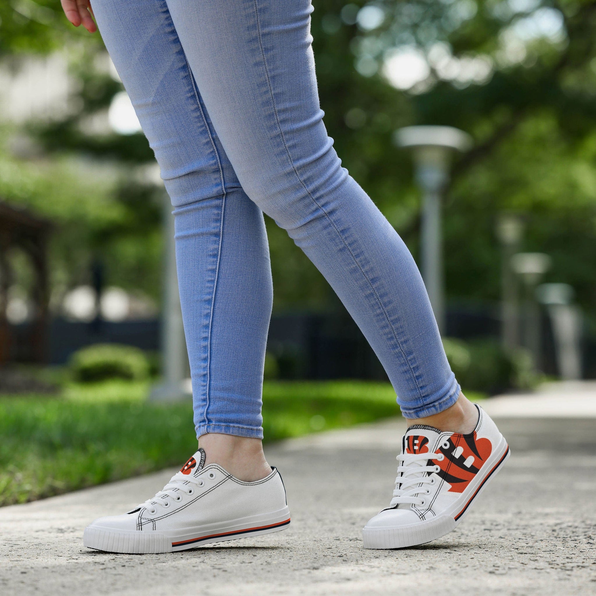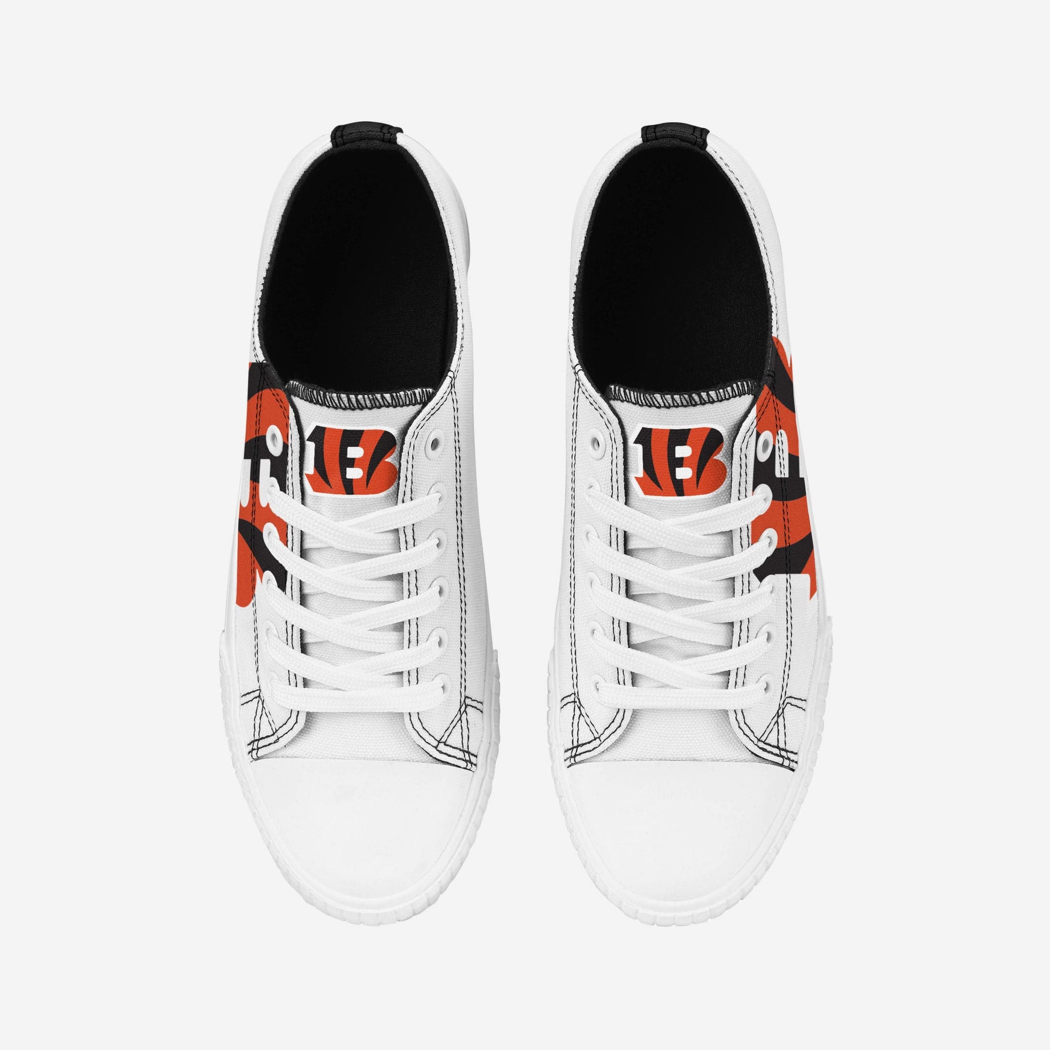 Low tops. High spirits. No matter the final score, you'll always be winning with the Cincinnati Bengals Women's Big Logo Low Top White Canvas Shoes on your feet.