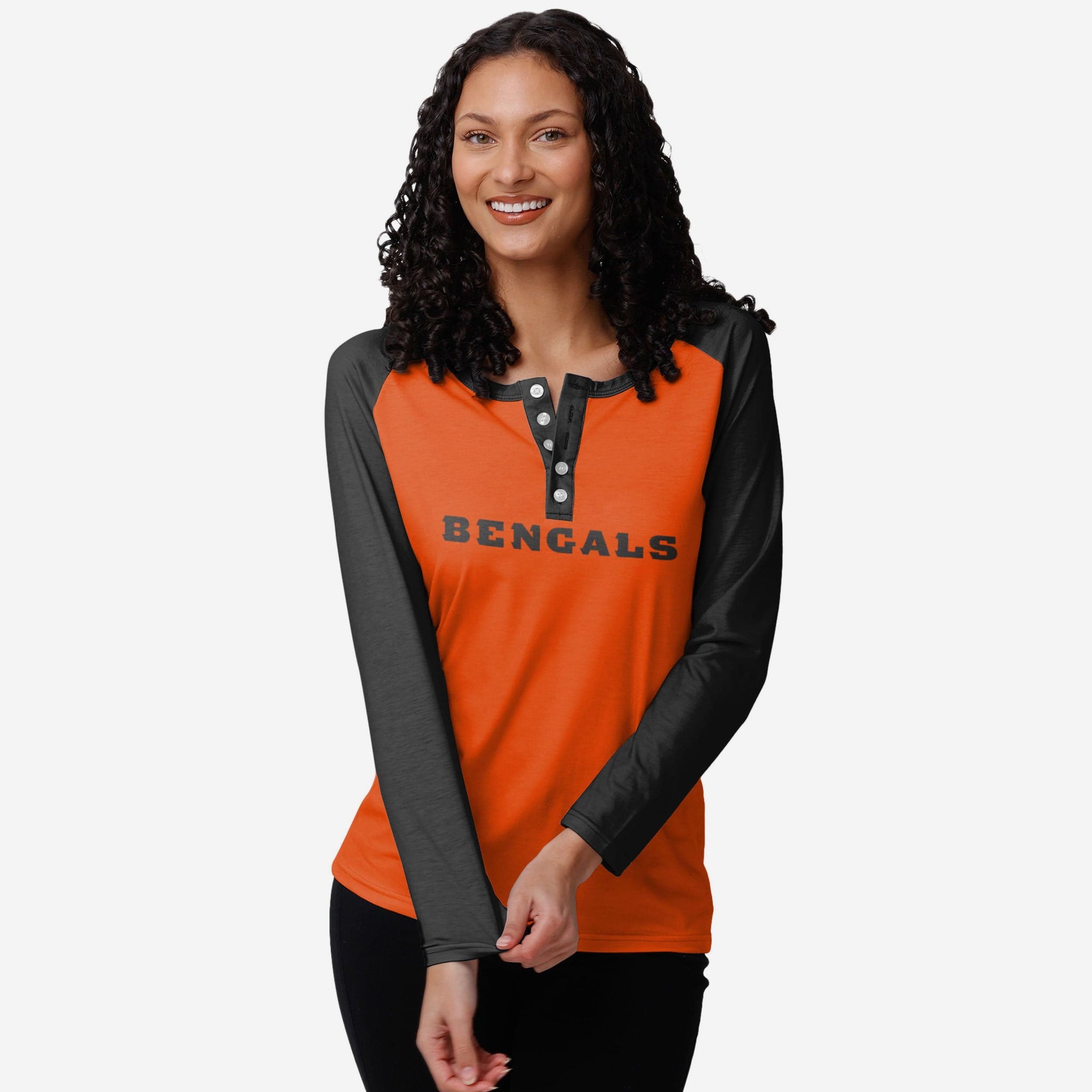 Cincinnati Bengals Womens Big Wordmark Long Sleeve Henley FOCO S - FOCO.com