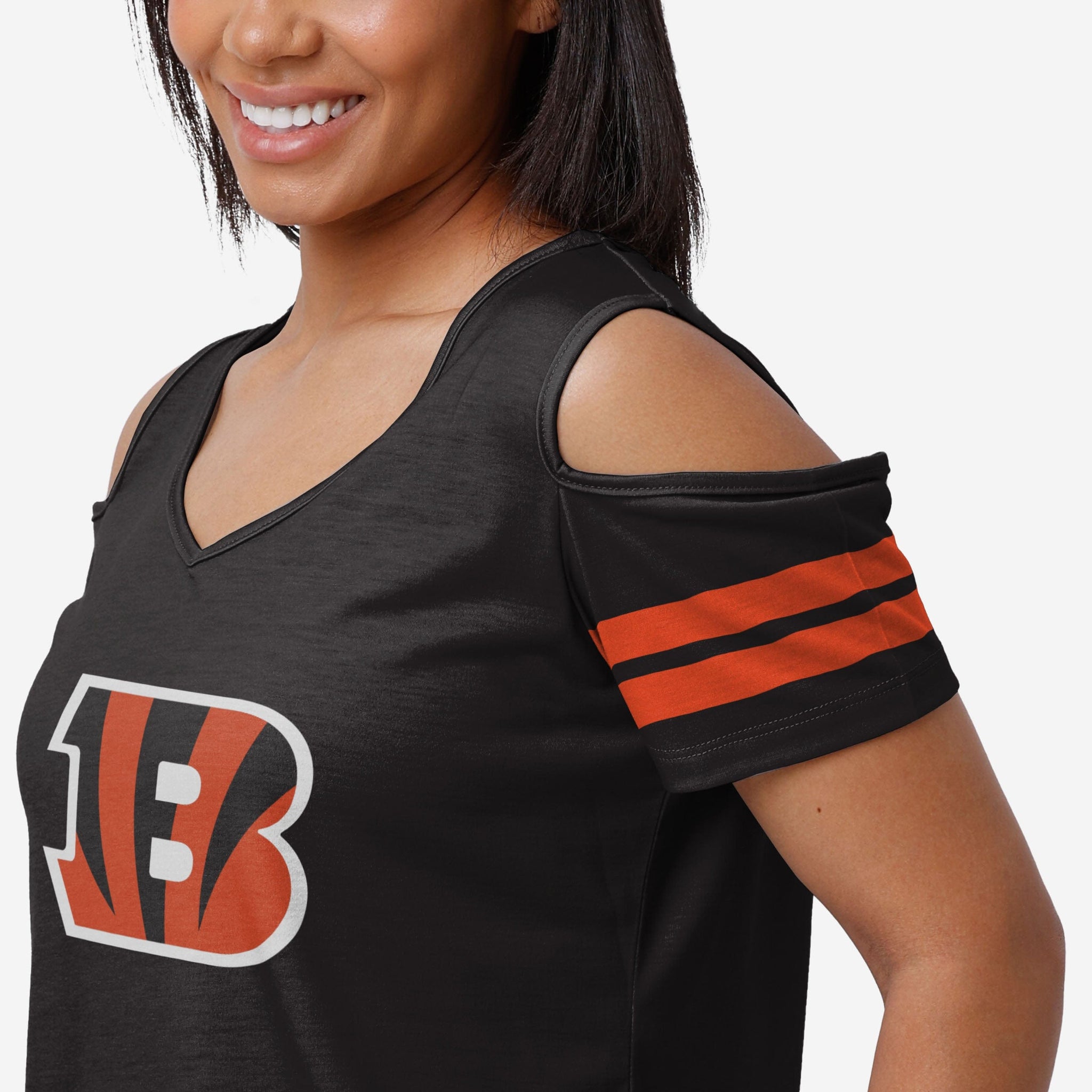 Someone doubting your fandom? Give 'em the cold shoulder by rocking this Cincinnati Bengals Women's Cold Shoulder T-Shirt.