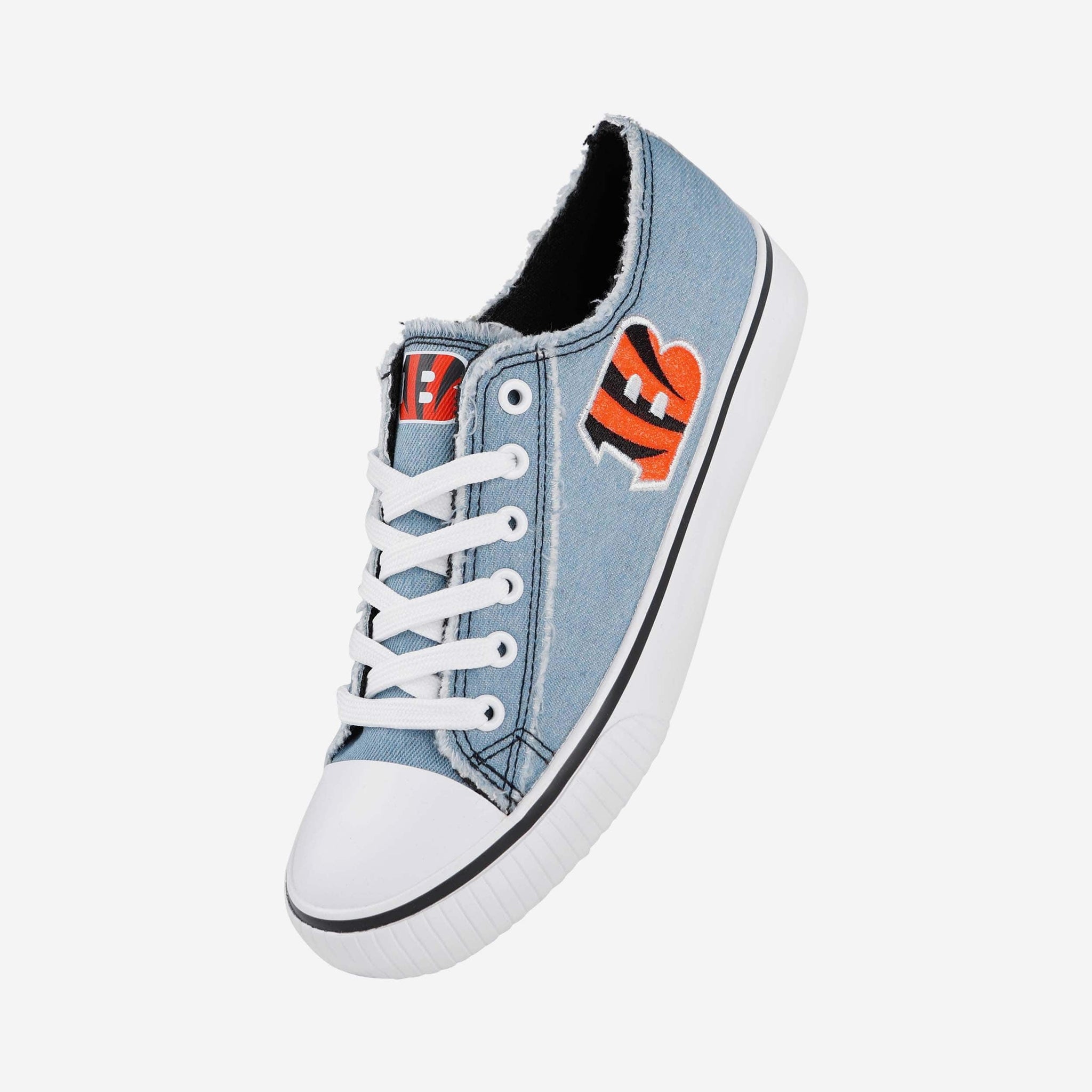 Nobody can dull your sparkle as a fan! Get ready to make all your game days denim days too as you shine on with a pair of Cincinnati Bengals Women's Denim Low Top Canvas Shoes.