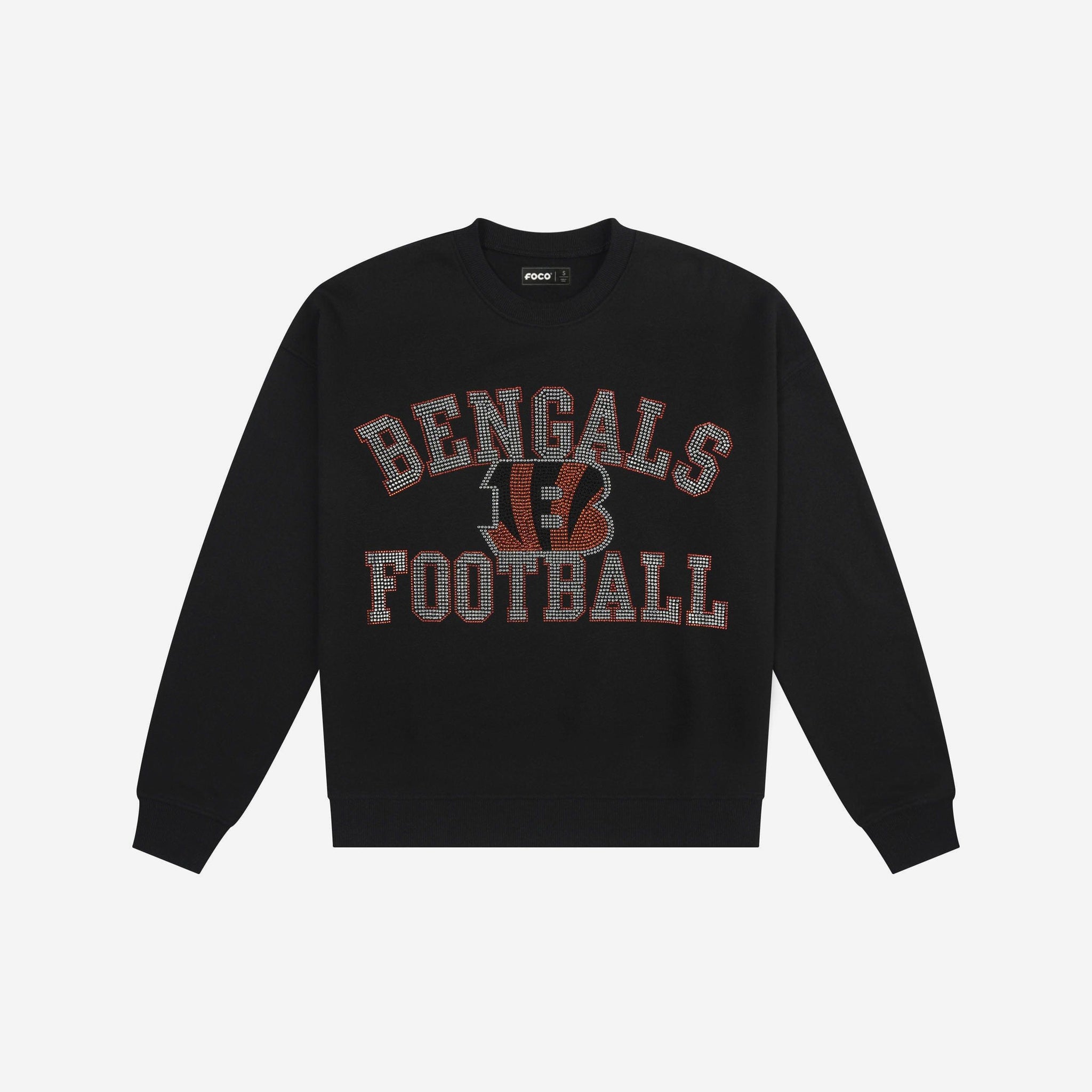 Bling it on! It's time to turn up the twinkle and let your fan fit do the talking. This Cincinnati Bengals Womens Rhinestone Logo Oversized Crew Neck Sweatshirt is made for those who like their cozy with a little extra shine. From game day to every day, it’s the perfect way to stay warm and wow-worthy.