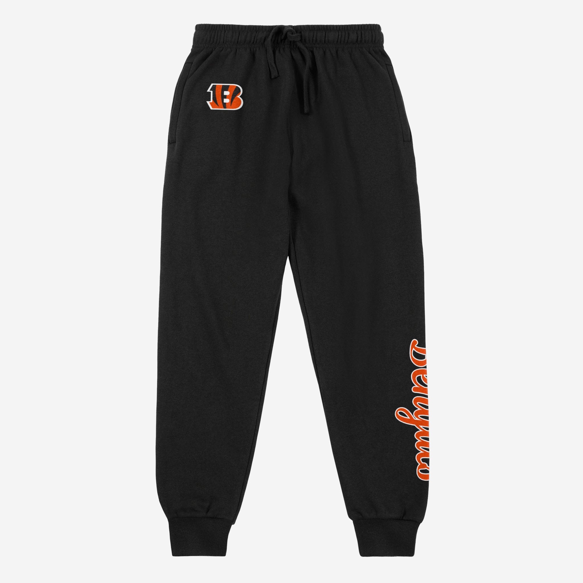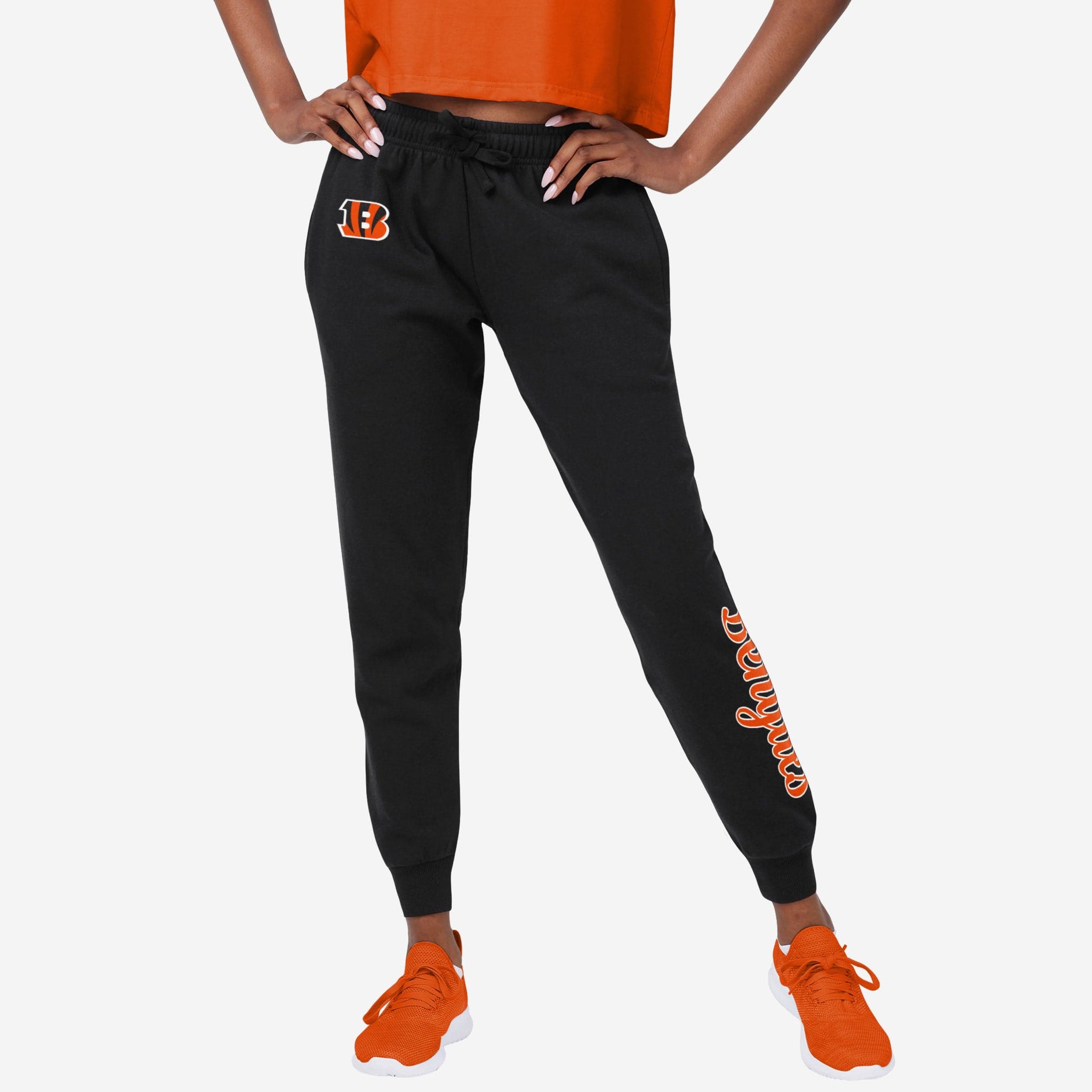 Let's flip the script on your workout wardrobe. Hit the track, treadmill, or trail in style with these Cincinnati Bengals Women's Script Wordmark Black Joggers.