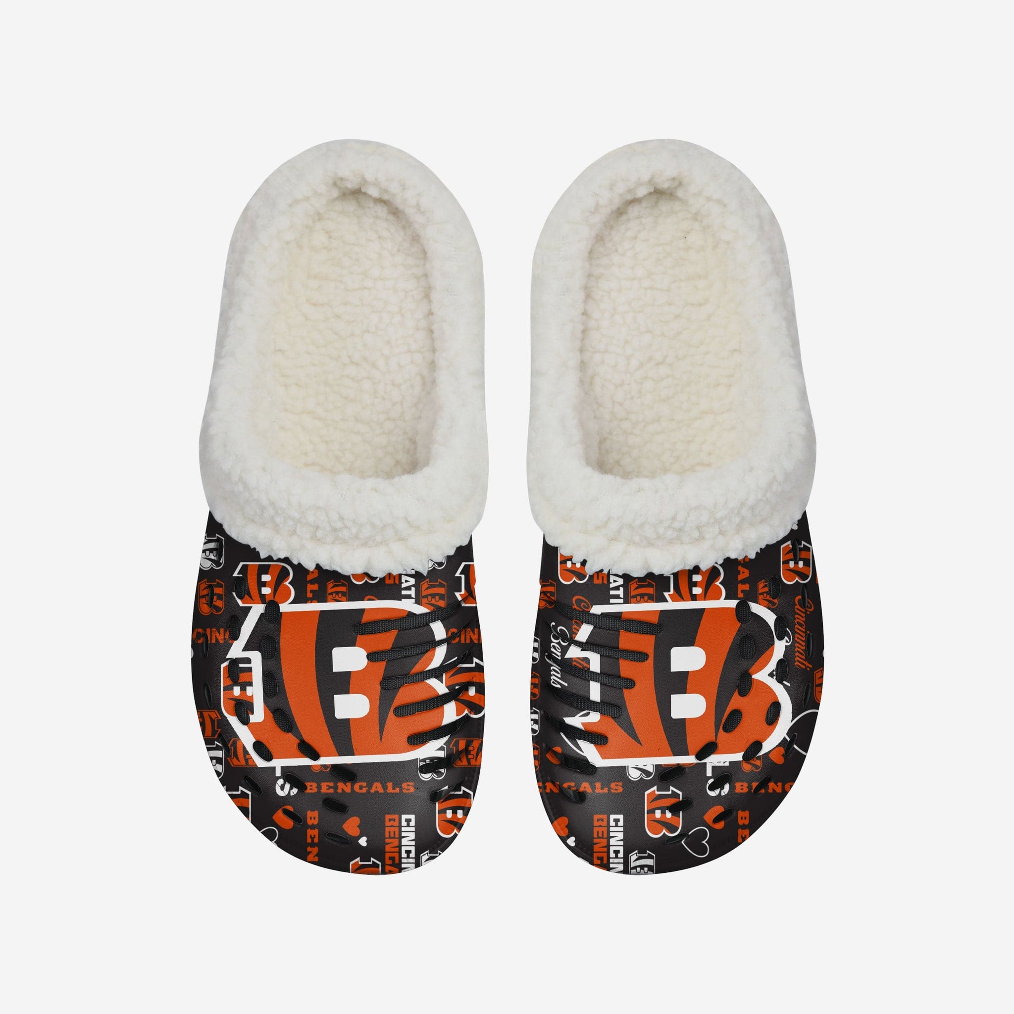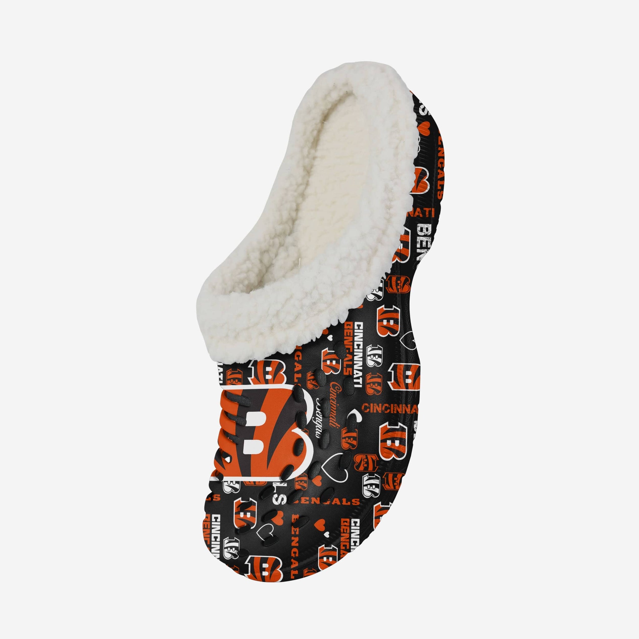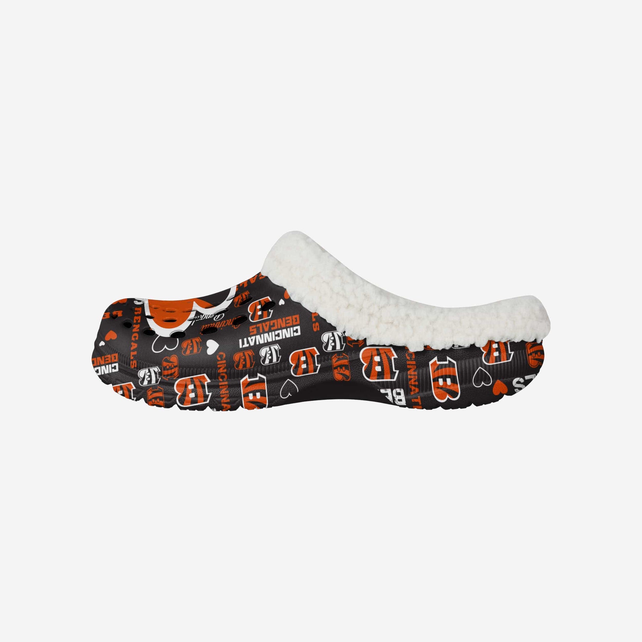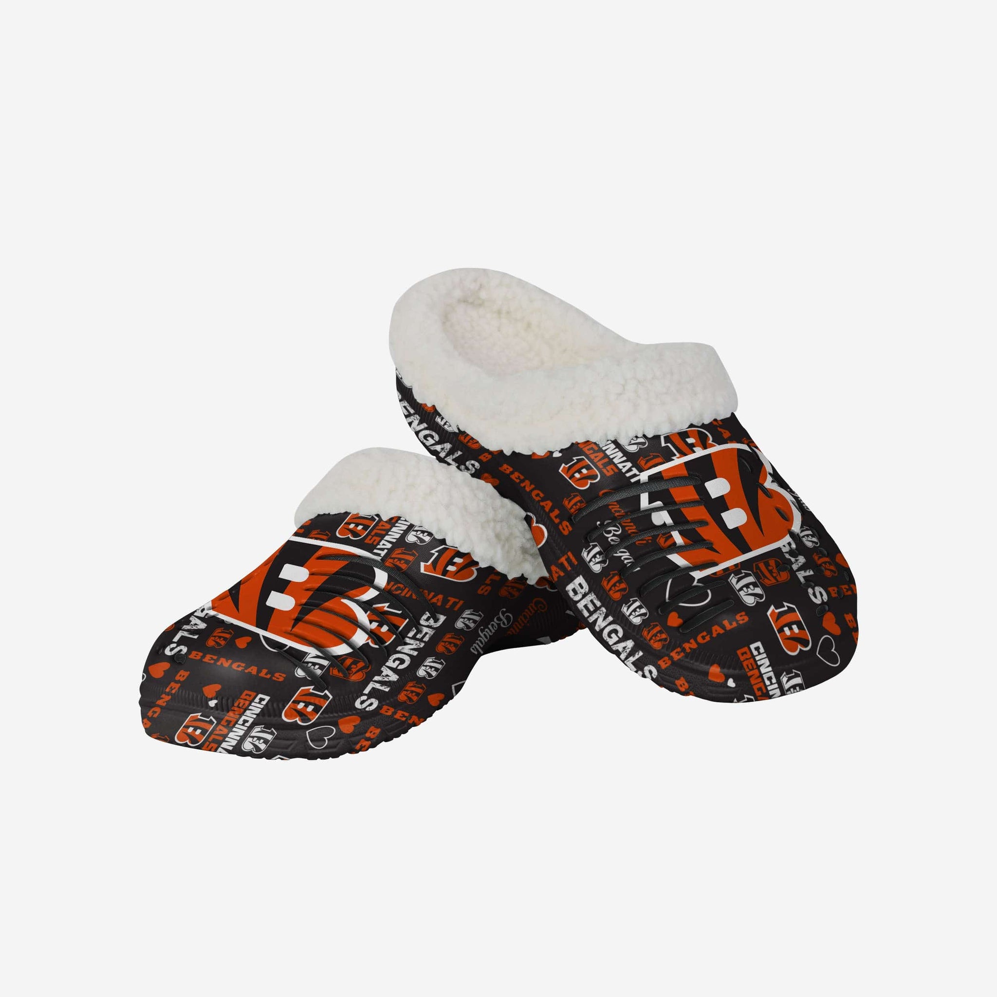 Don't just add some pep to your step - Add a little love to it, too. These Cincinnati Bengals Women's Sherpa Lined Logo Love Clogs are just what you're looking for.