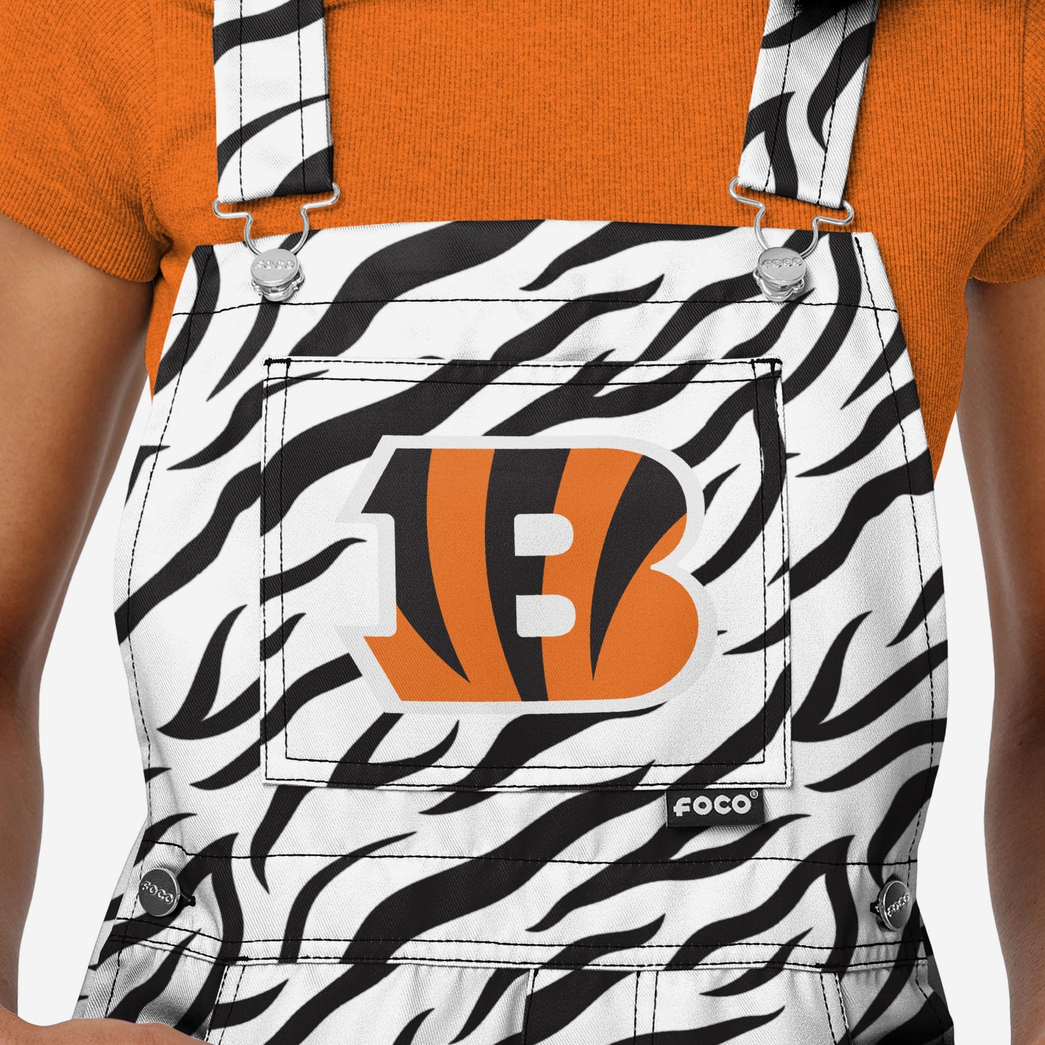 - All-over team-colored design: These shortalls are covered in the official Cincinnati Bengals colors, so you can show your team spirit with pride.