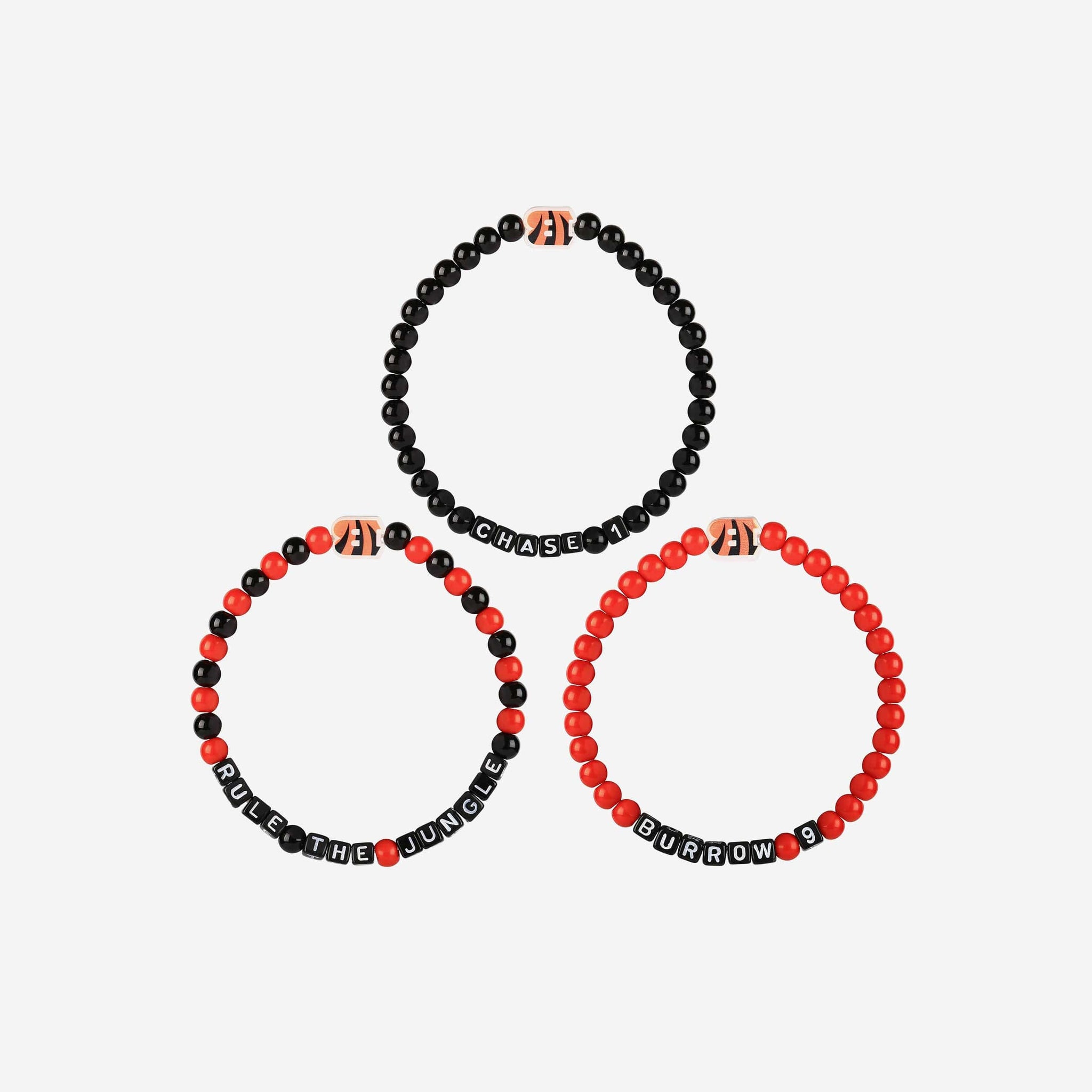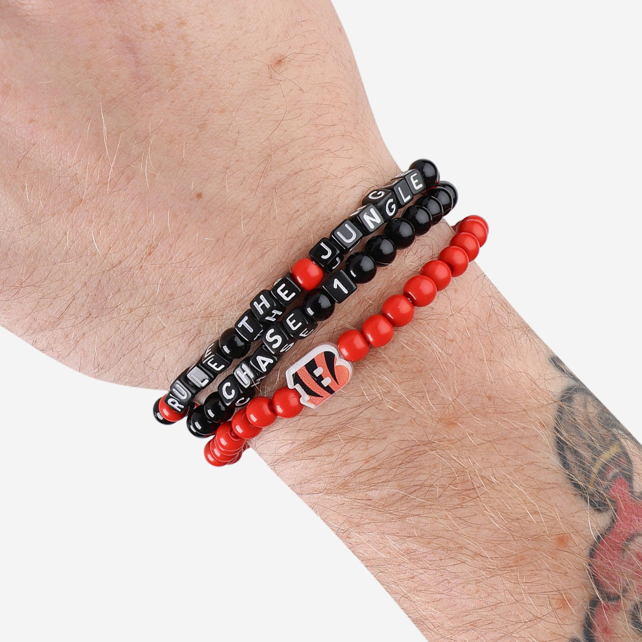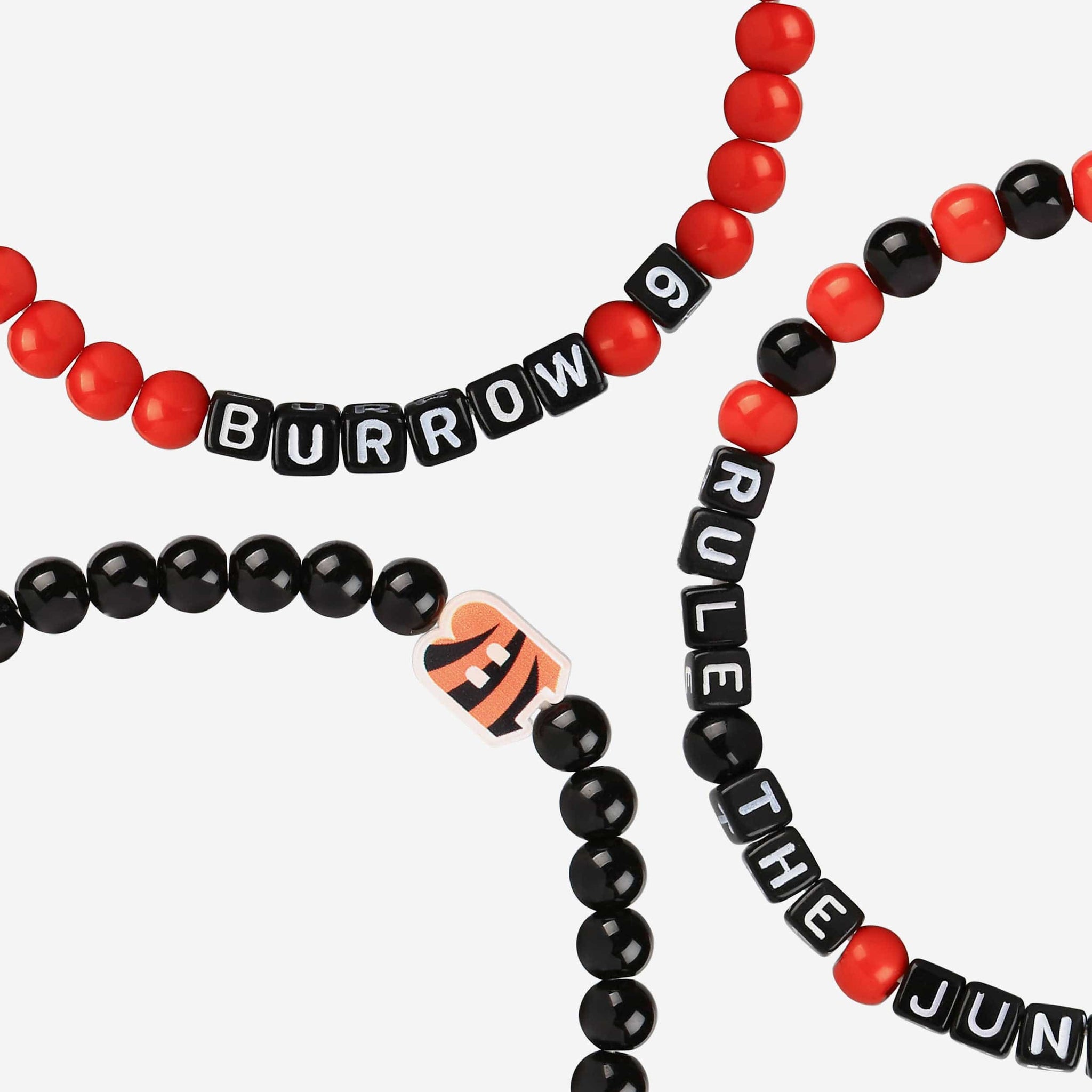 A whole new way to rep the team in style is here. Step up your fan fashion sense with this Joe Burrow & Ja'Marr Chase Cincinnati Bengals 3 Pack Player Beaded Friendship Bracelet. These matching friendship bracelets have an all-over team-colored design and team logo displays, which makes them the perfect way to show your support for the Cincinnati Bengals on gamedays and every day in between.