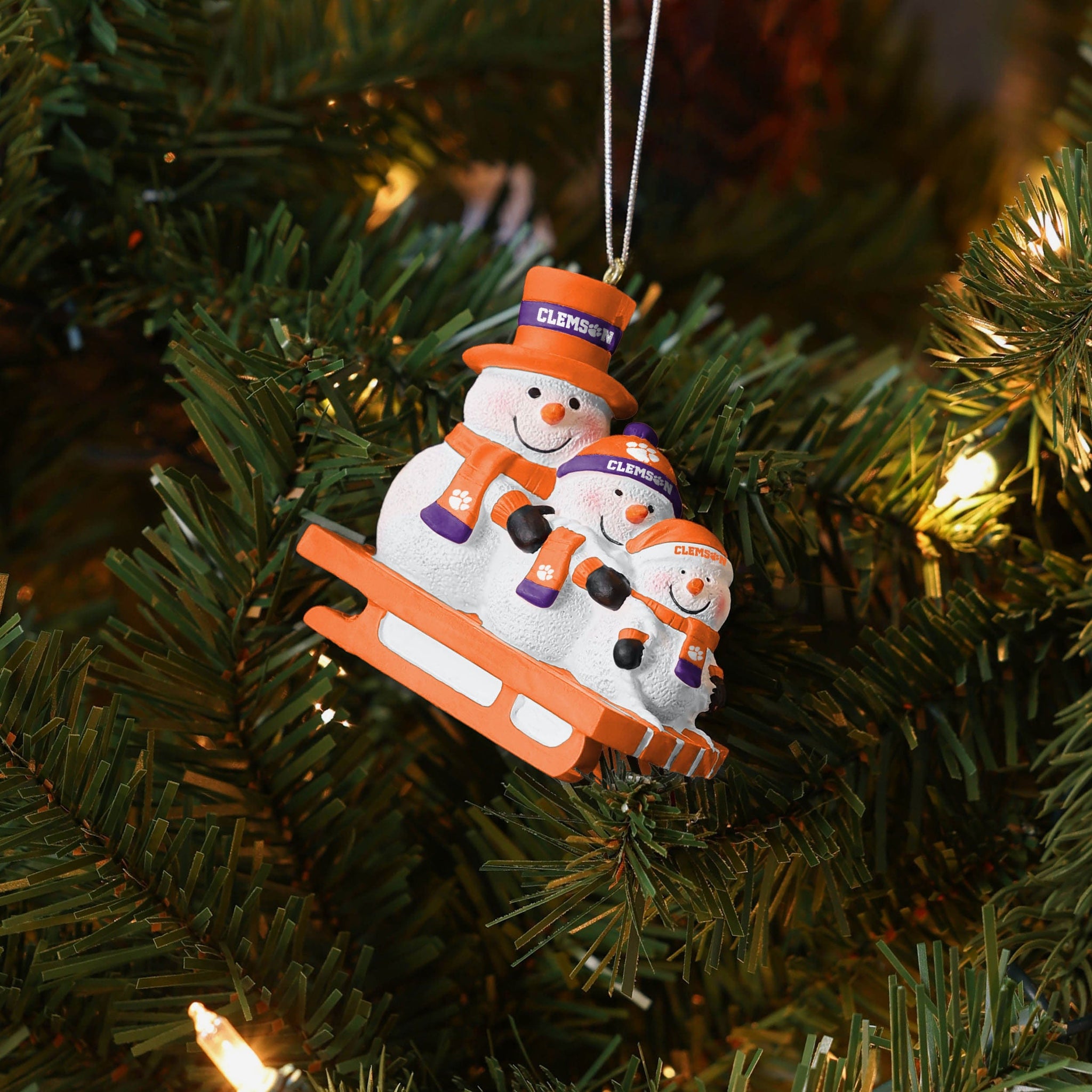 Meet three snowman friends that won't melt when you bring them inside! Introducing the Clemson Tigers Sledding Snowmen Ornament!