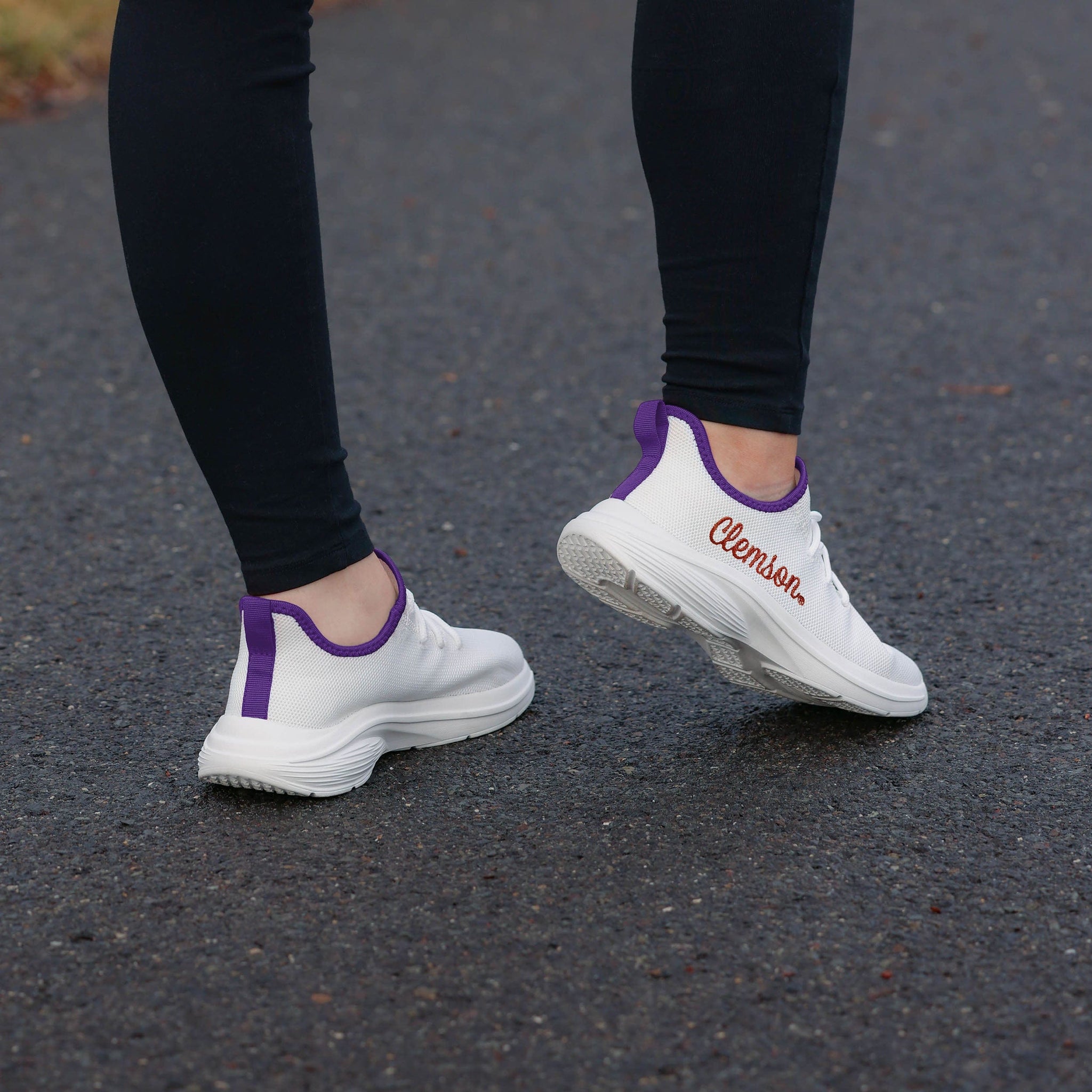 These Clemson Tigers Women's Midsole White Sneakers will make sure everyone knows that you're the heart and midsole of your fanbase.