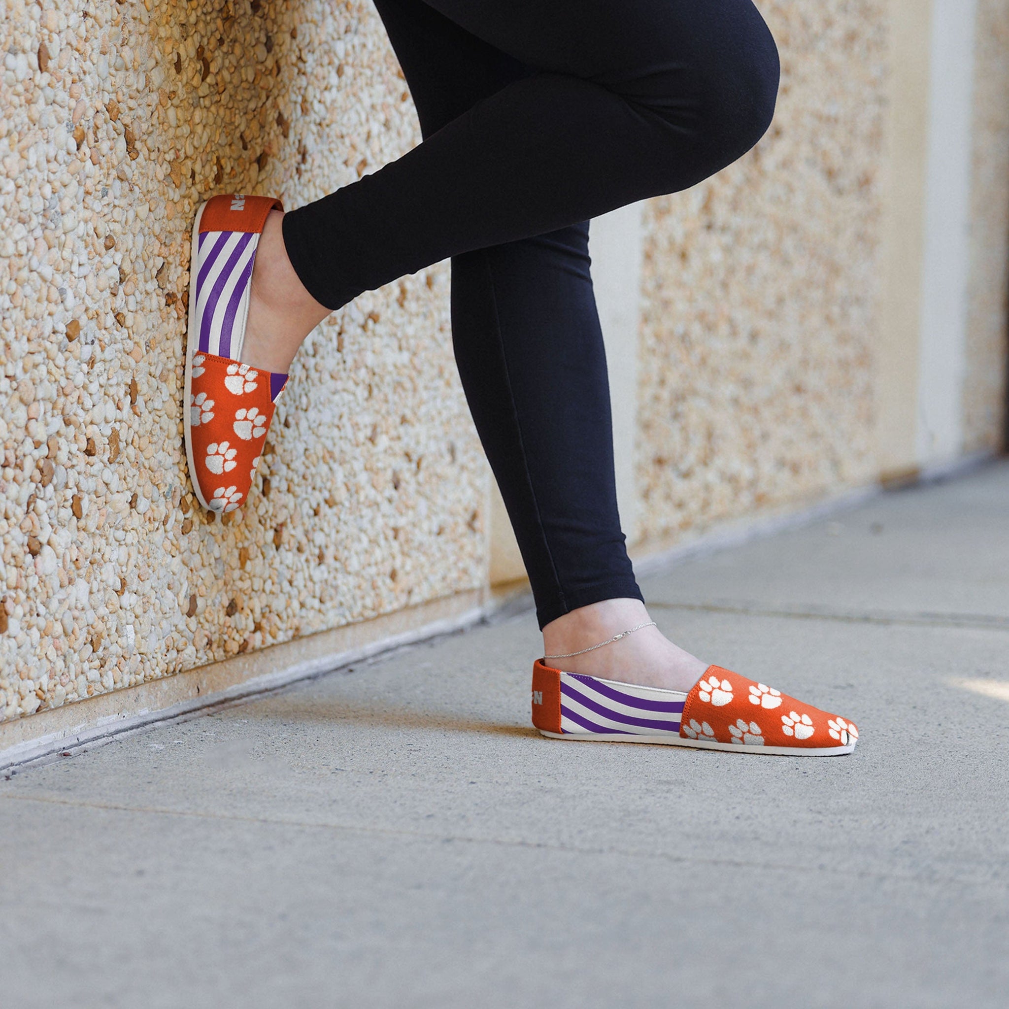 Would you rather a) be comfortable, b) be stylish or c) rock your team spirit in these Clemson Tigers Womens Stripe Canvas Shoes? Wrong! Wait, did you say all three? Because the answer is all three.