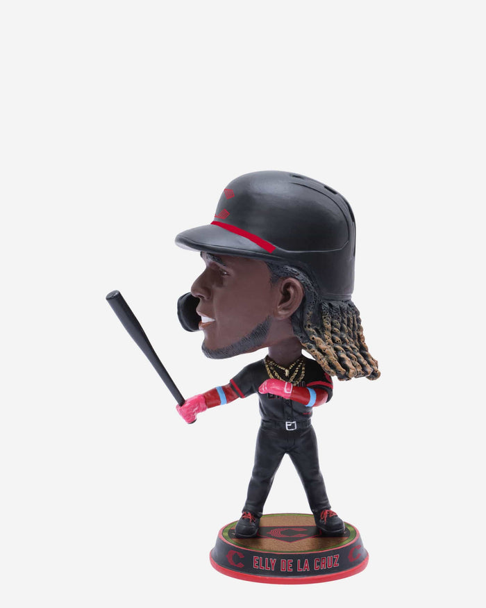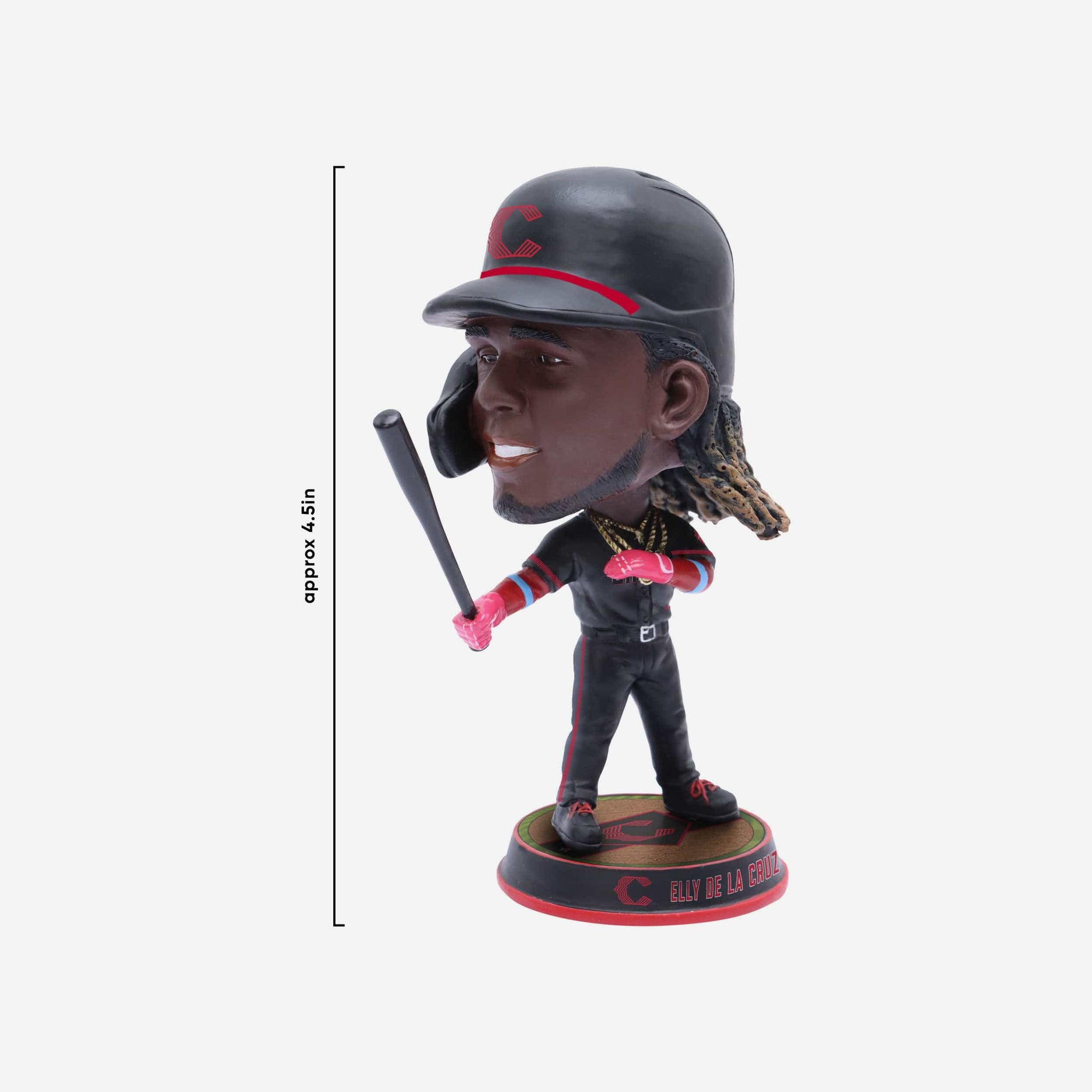 Juncta Juvait. Show off the pride of Cincy with the Elly De La Cruz Cincinnati Reds 2023 City Connect Field Stripe Mini Bighead Bobblehead.