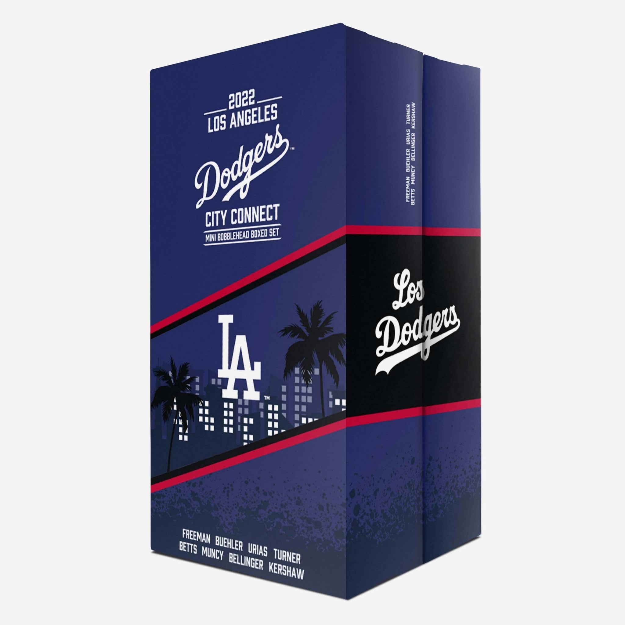 Freeman. Turner. Muncy. Betts. Bellinger. Kershaw. Urias. Buehler. This Los Angeles Dodgers 2022 City Connect Mini Bobblehead Boxed Set features a star-studded cast Hollywood could only dream of.