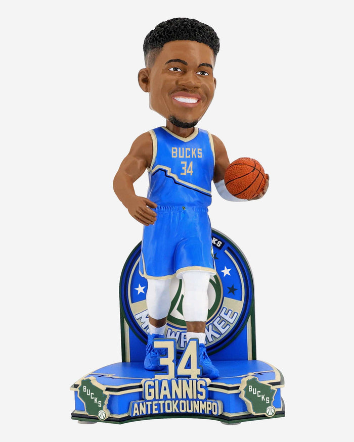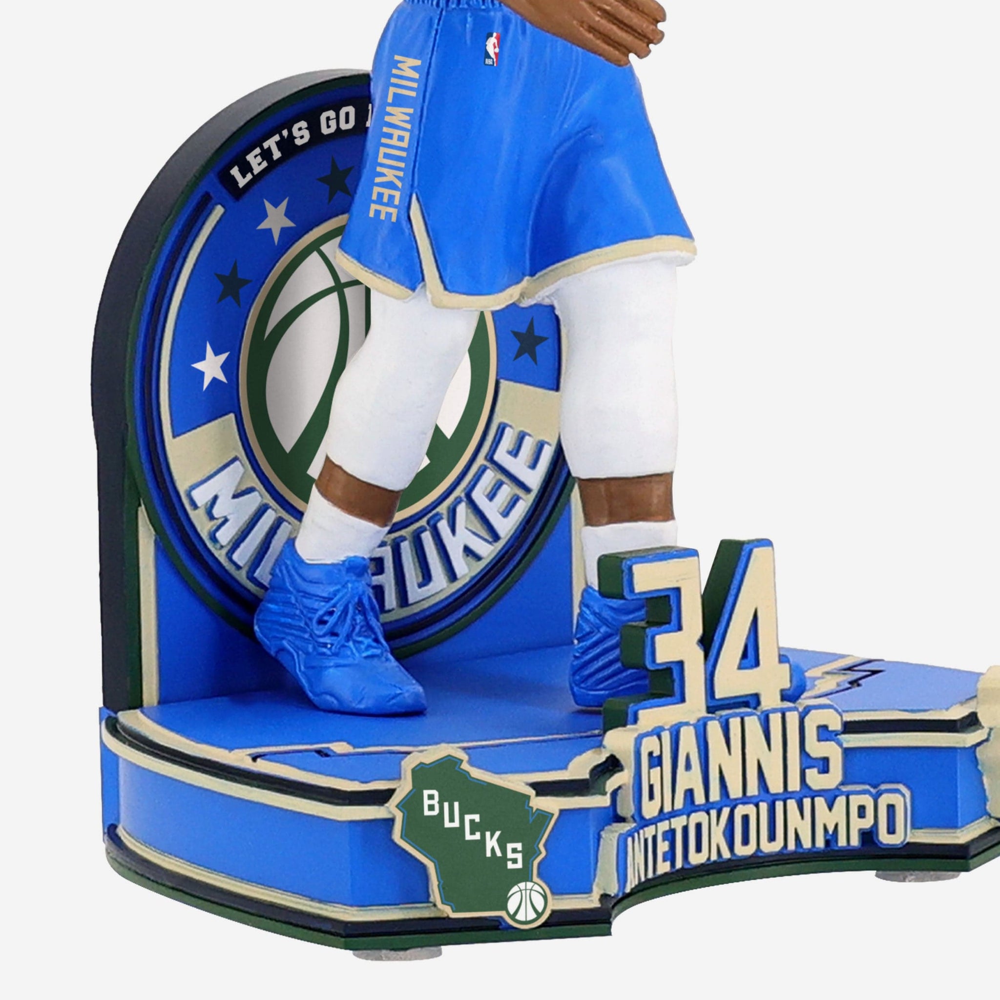 - Portrays Antetokounmpo wearing his blue City Edition gameday uniform in an action pose, ready to make big plays in a bigger style