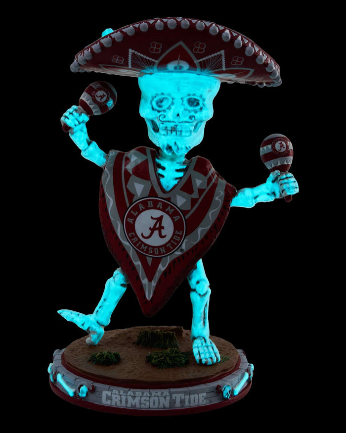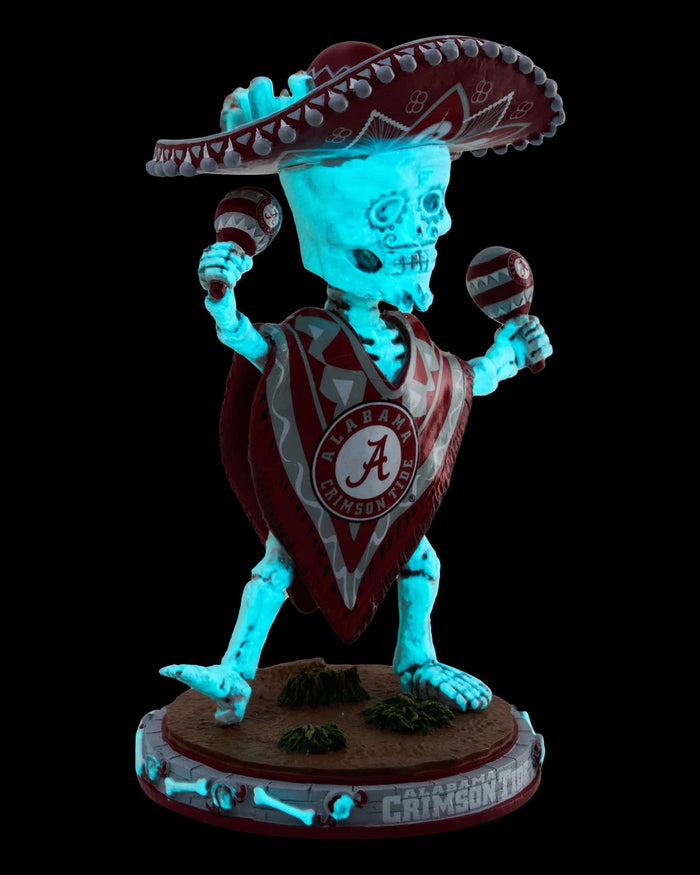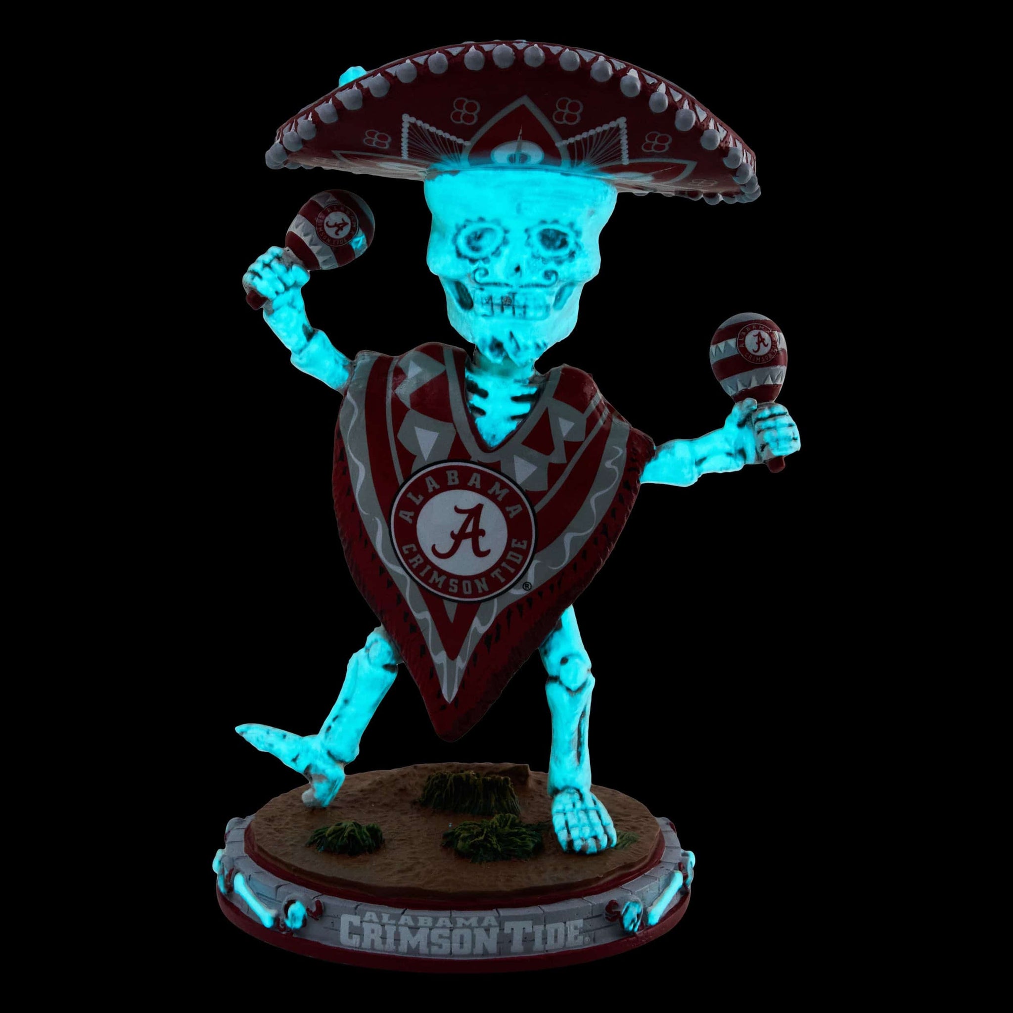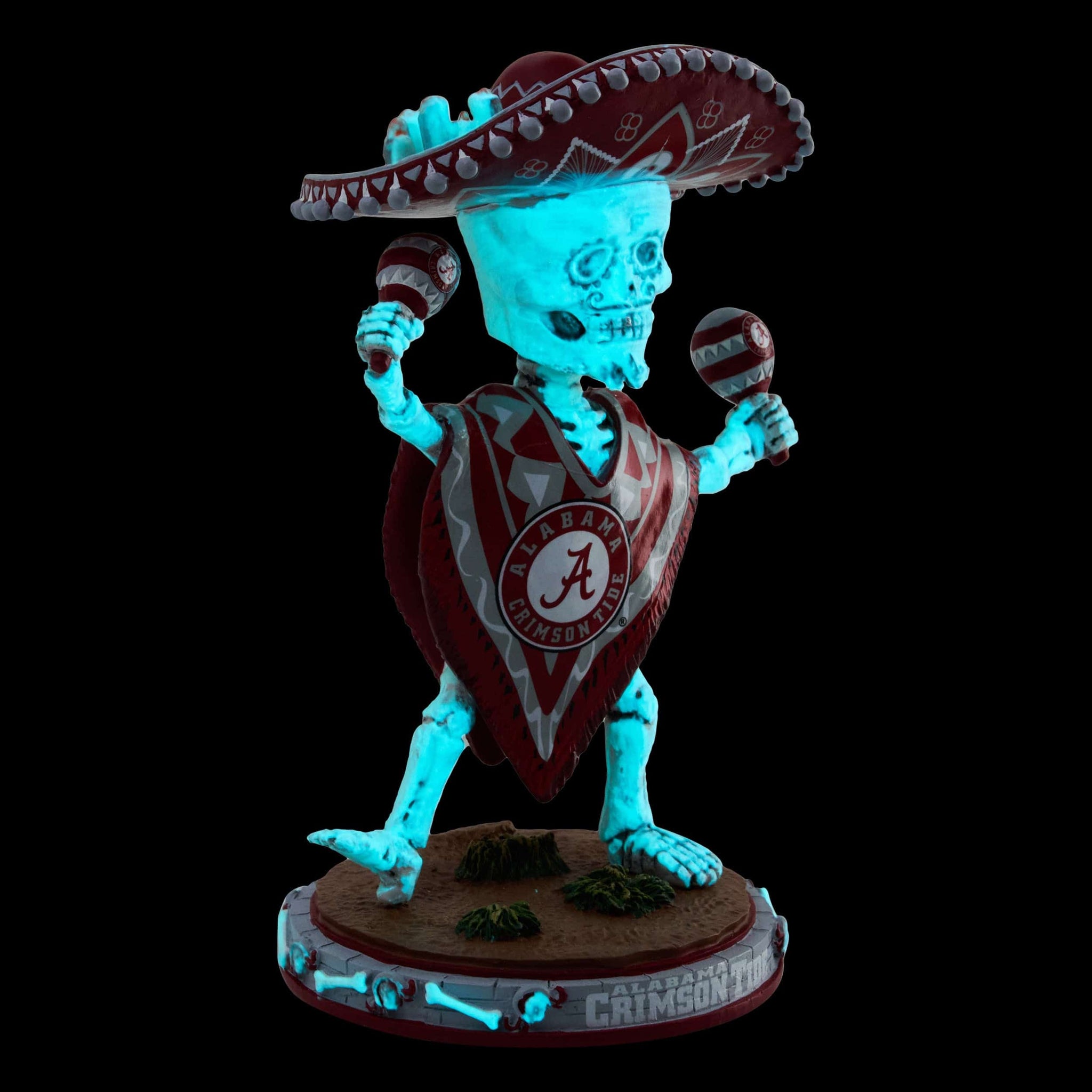 Is your Dia de los Muertos in need of a glow-up? You've come to the right place. Get the party going and bring some fandom to the festivities with this Alabama Crimson Tide Calavera Glow in the Dark Bobblehead.