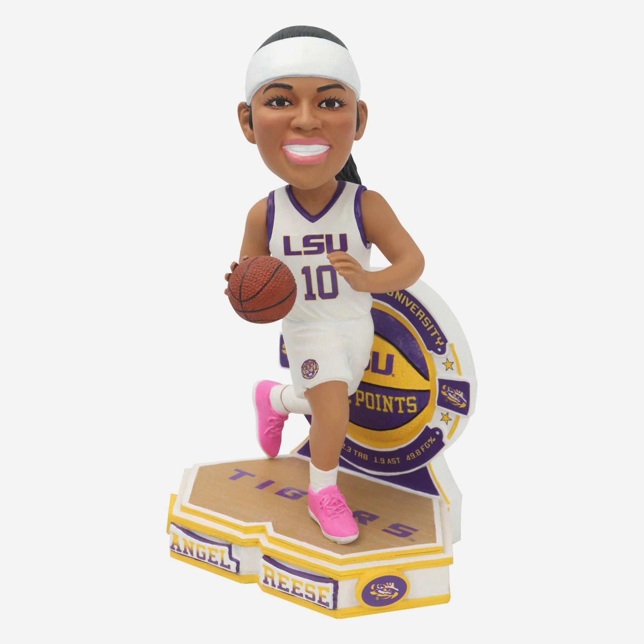 Geaux Tigers! Basketball by the bayou will be even better with the Angel Reese LSU Tigers College Stats Bobblehead by your side.