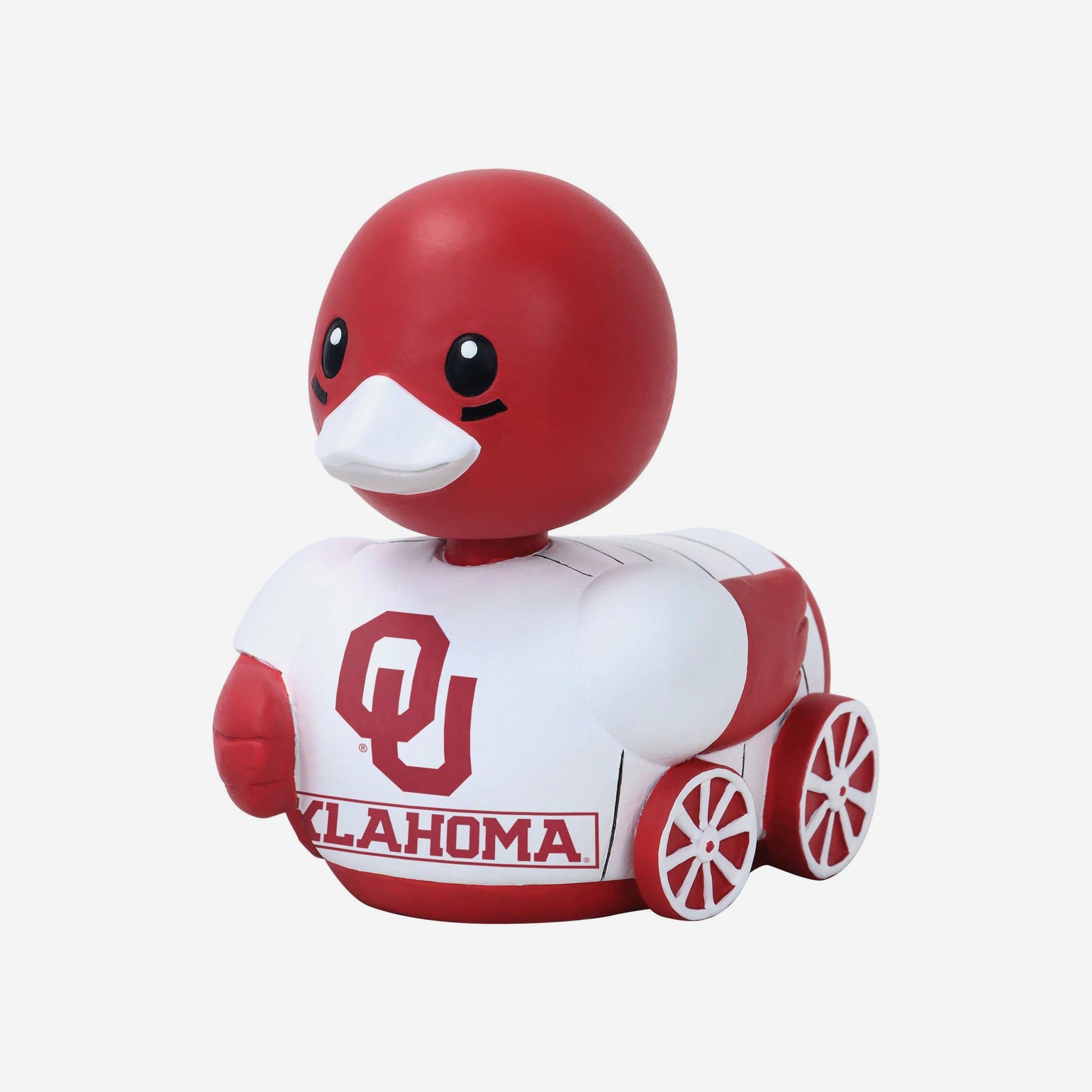 - Portrays team-colored duck with wagon wheels, ready to make a Sooners splash in your collection