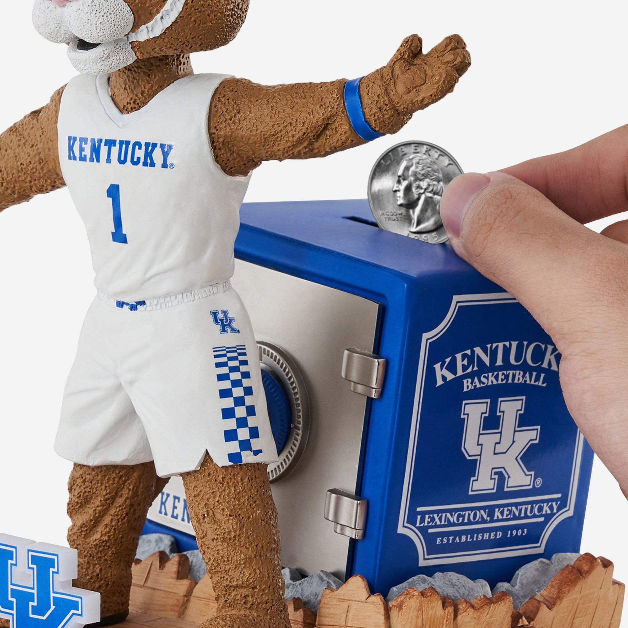 This mascot doesn't just carry the team - This mascot carries your change, too. Don't get what we're saying? It'll make "cents" when you've got this Scratch Kentucky Wildcats Mascot Bank Bobblehead in your collection.