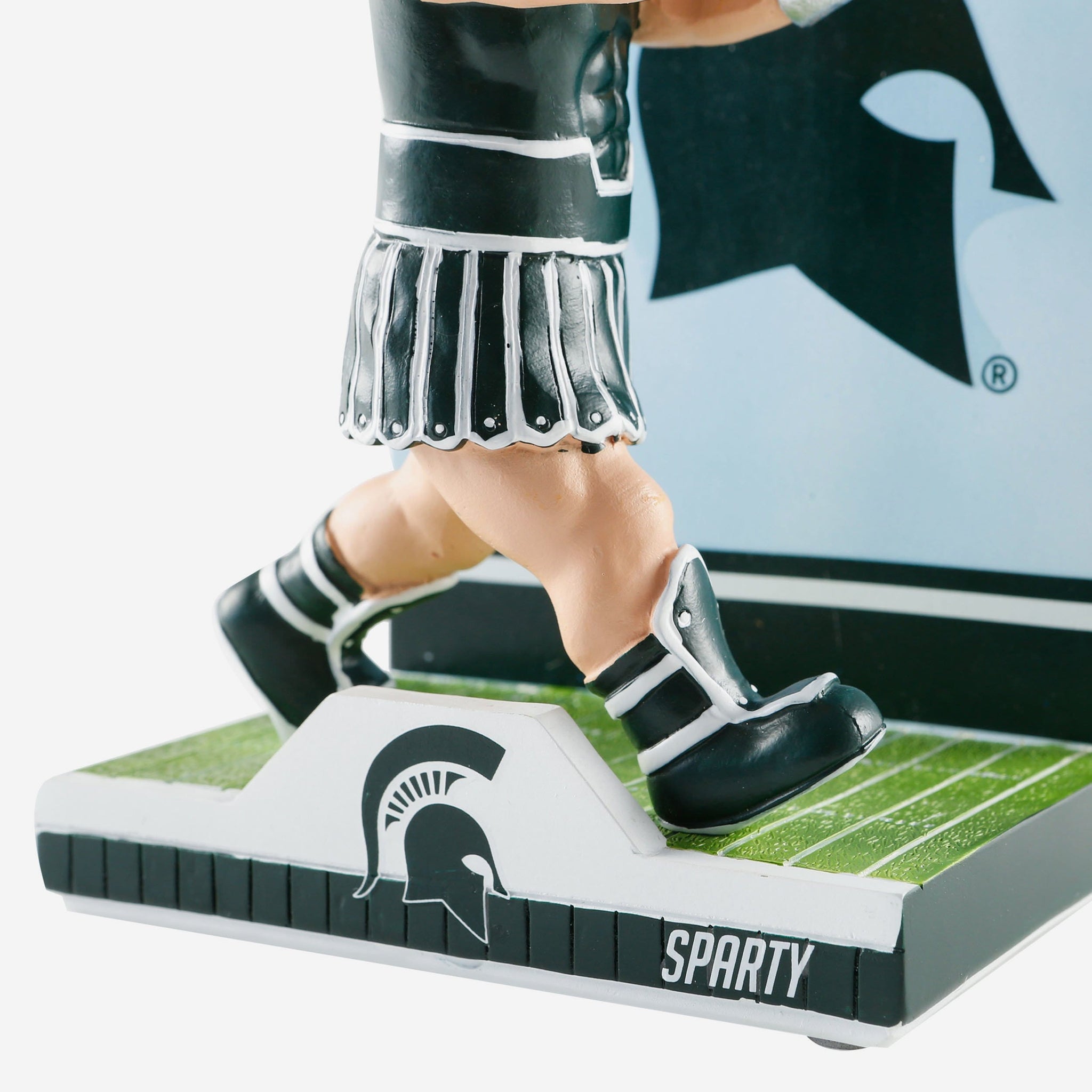 A bobblehead so bright, you're gonna need shades! Make sure your team pride shines like a beacon of awesome by showing off this Sparty Michigan State Spartans Mascot Action Pose Light Up Ball Bobblehead in your fancave!