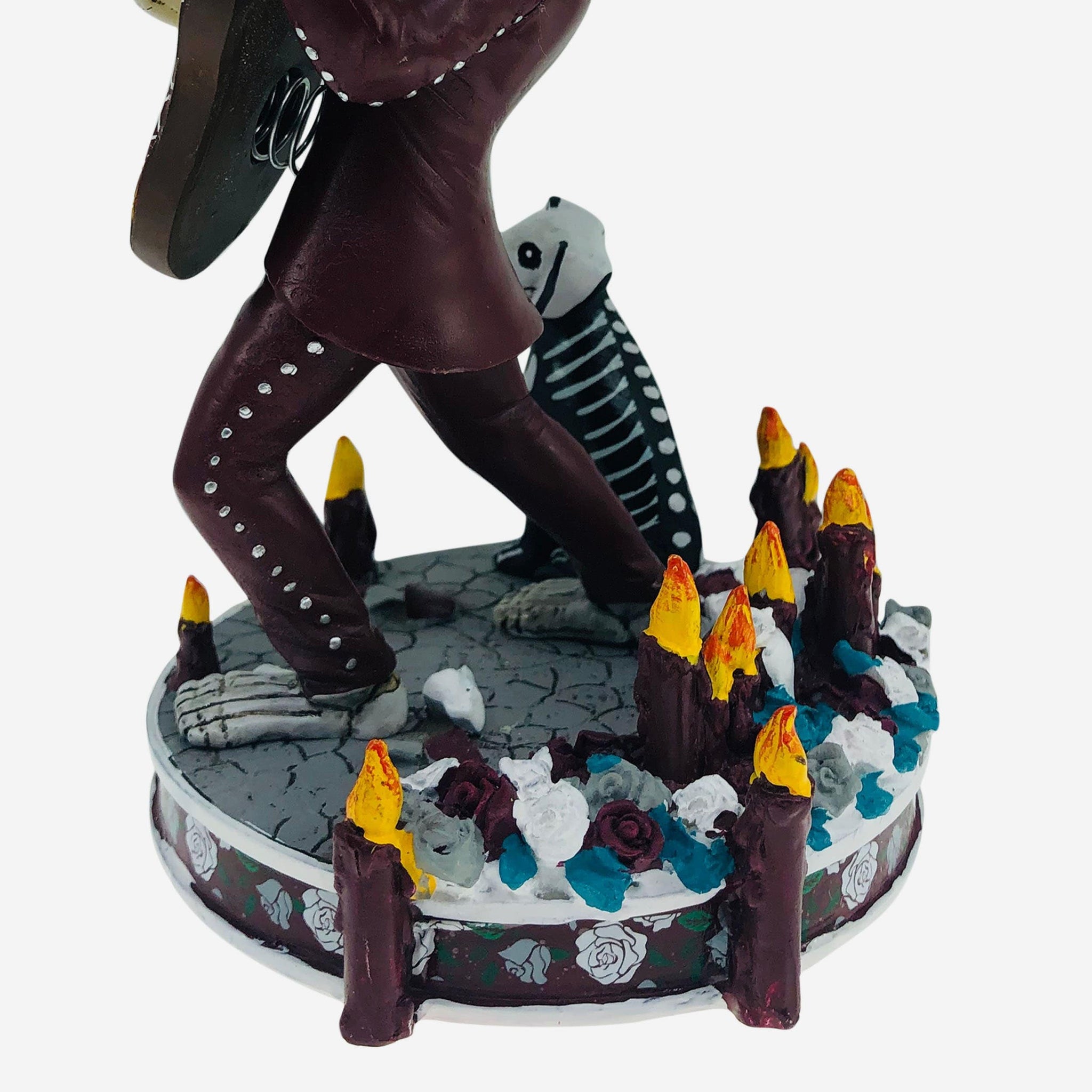 - Candle and flower accents on top of base, since this skeleton is putting on a show