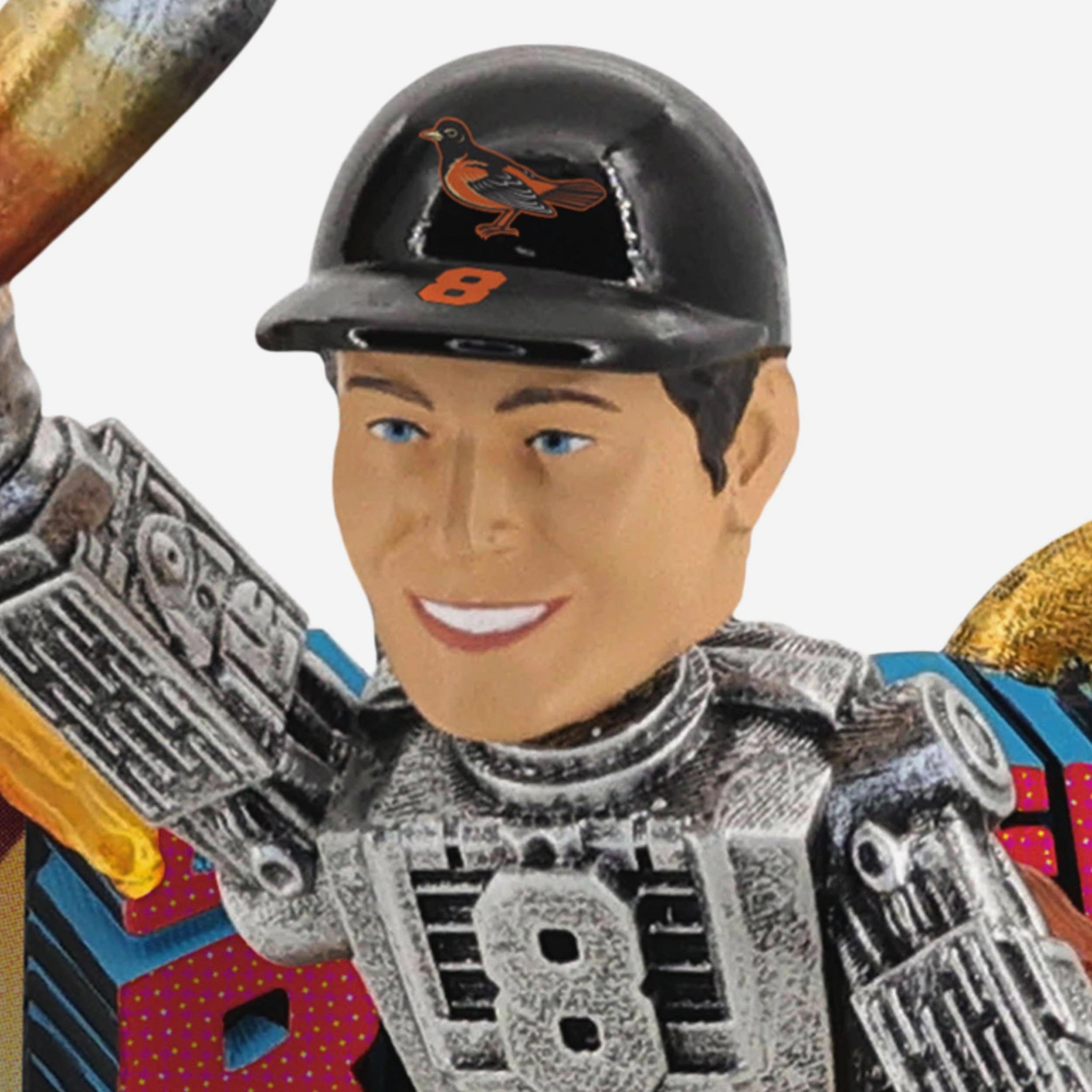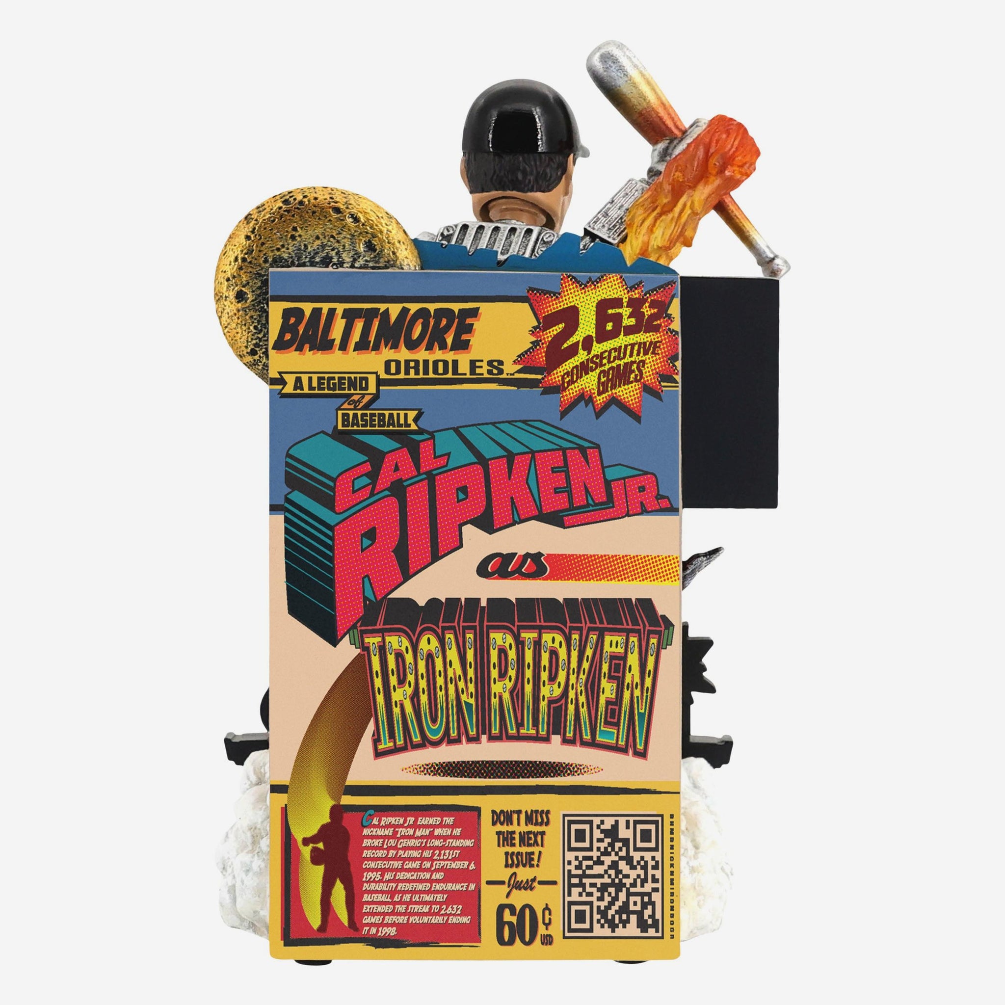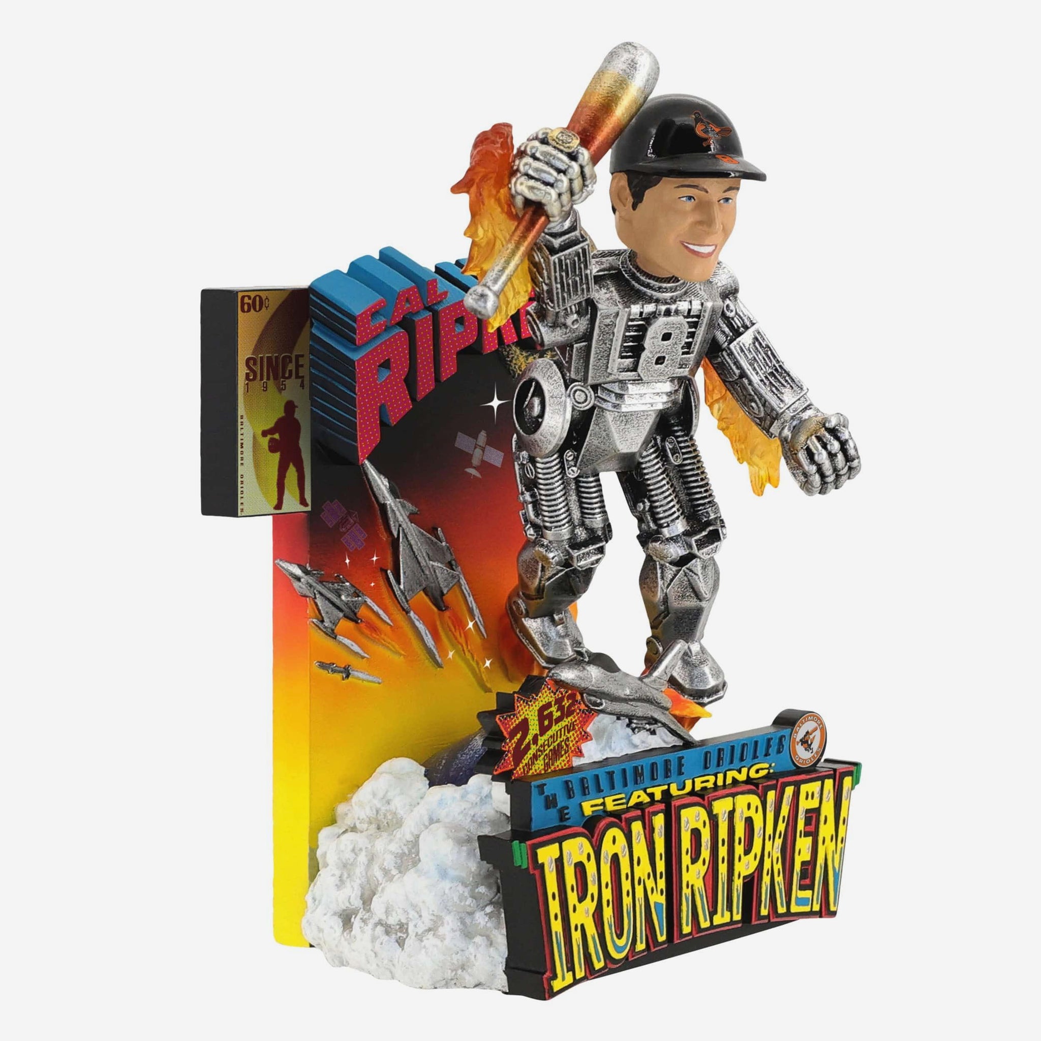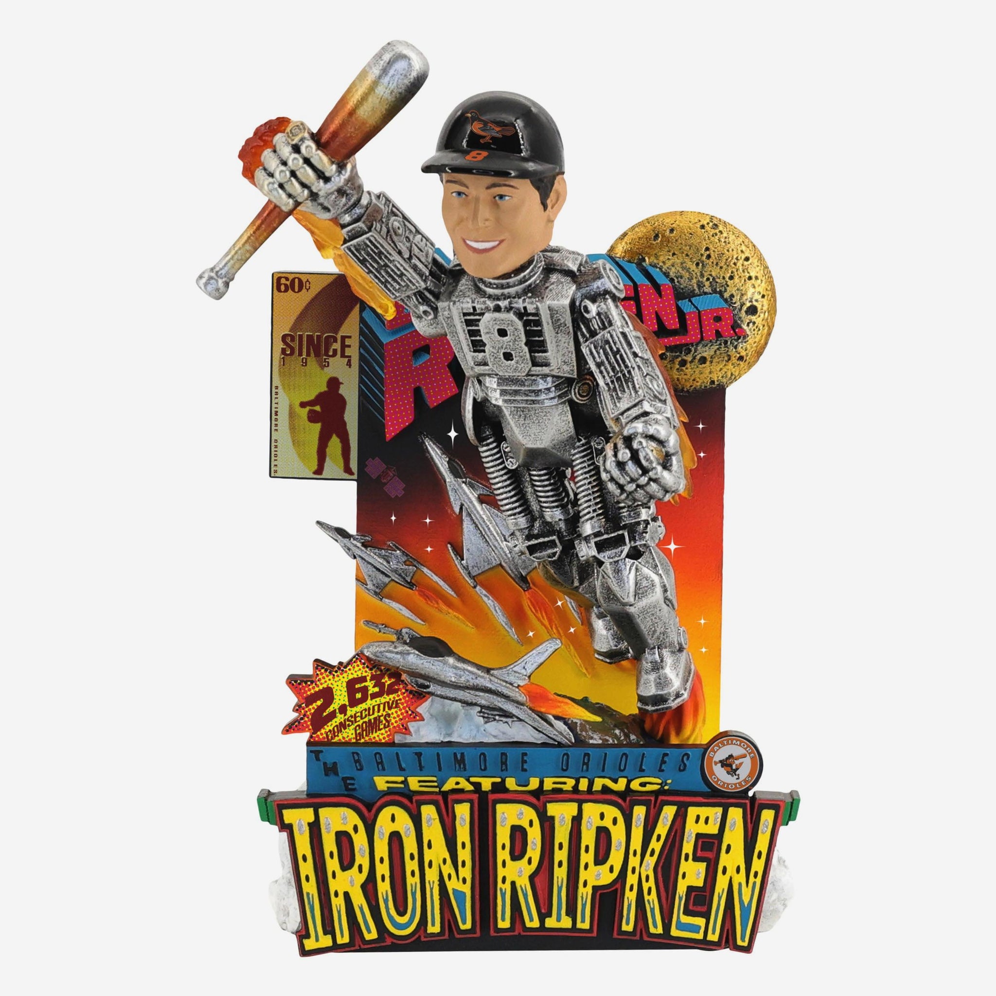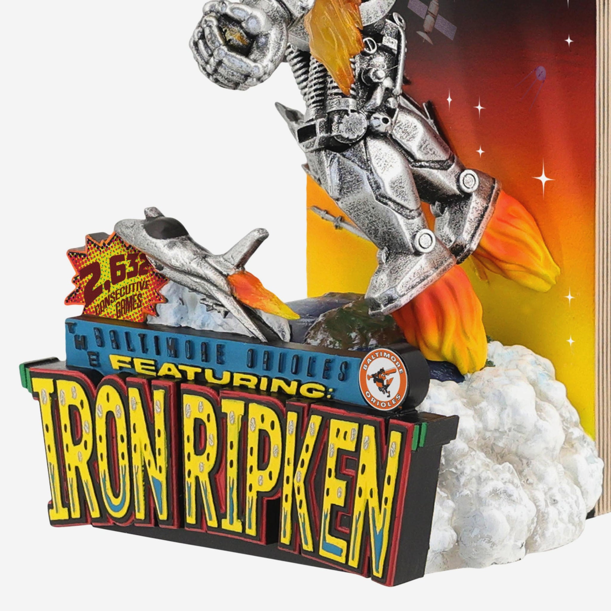 • Portrays Ripken Jr. wearing an iron suit with his number displayed on front in a flying action pose, ready to show off his legendary nickname