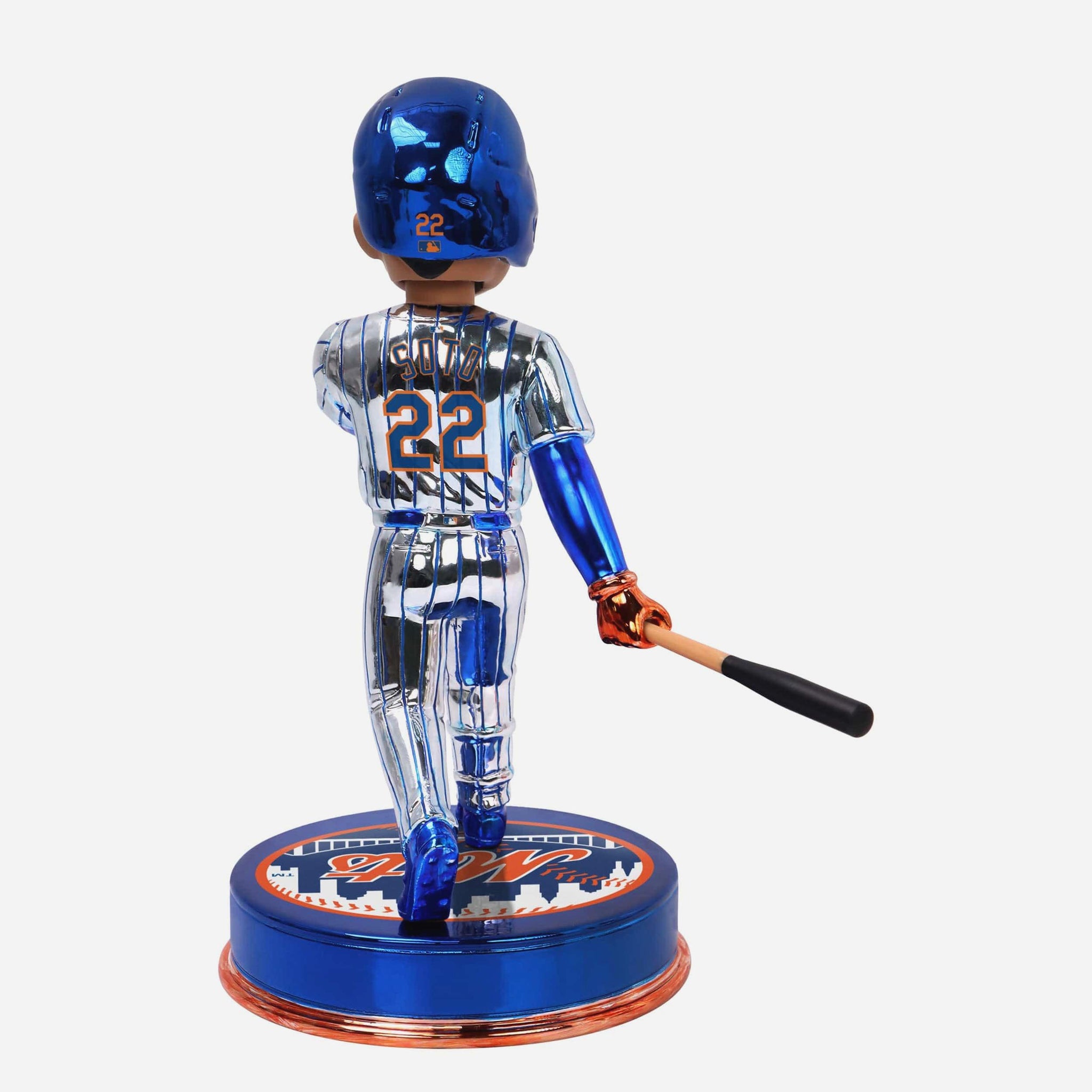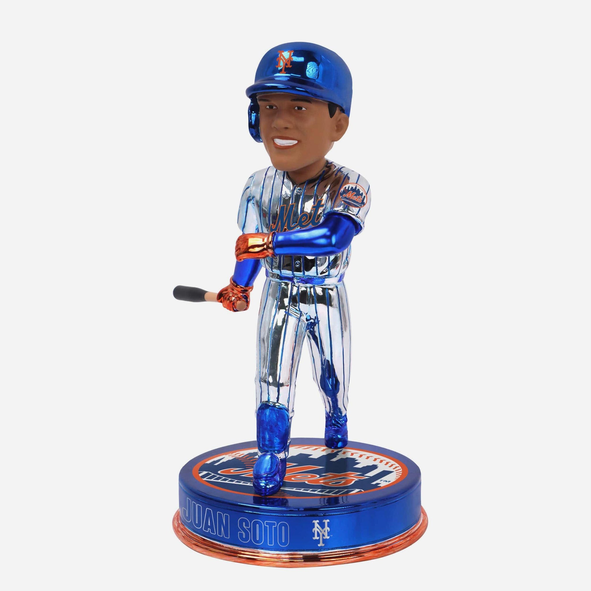 Soto is bringing the heat and the shine! Bring the bling to your Mets collection with the Juan Soto New York Mets Electroplate Edition Bobblehead.