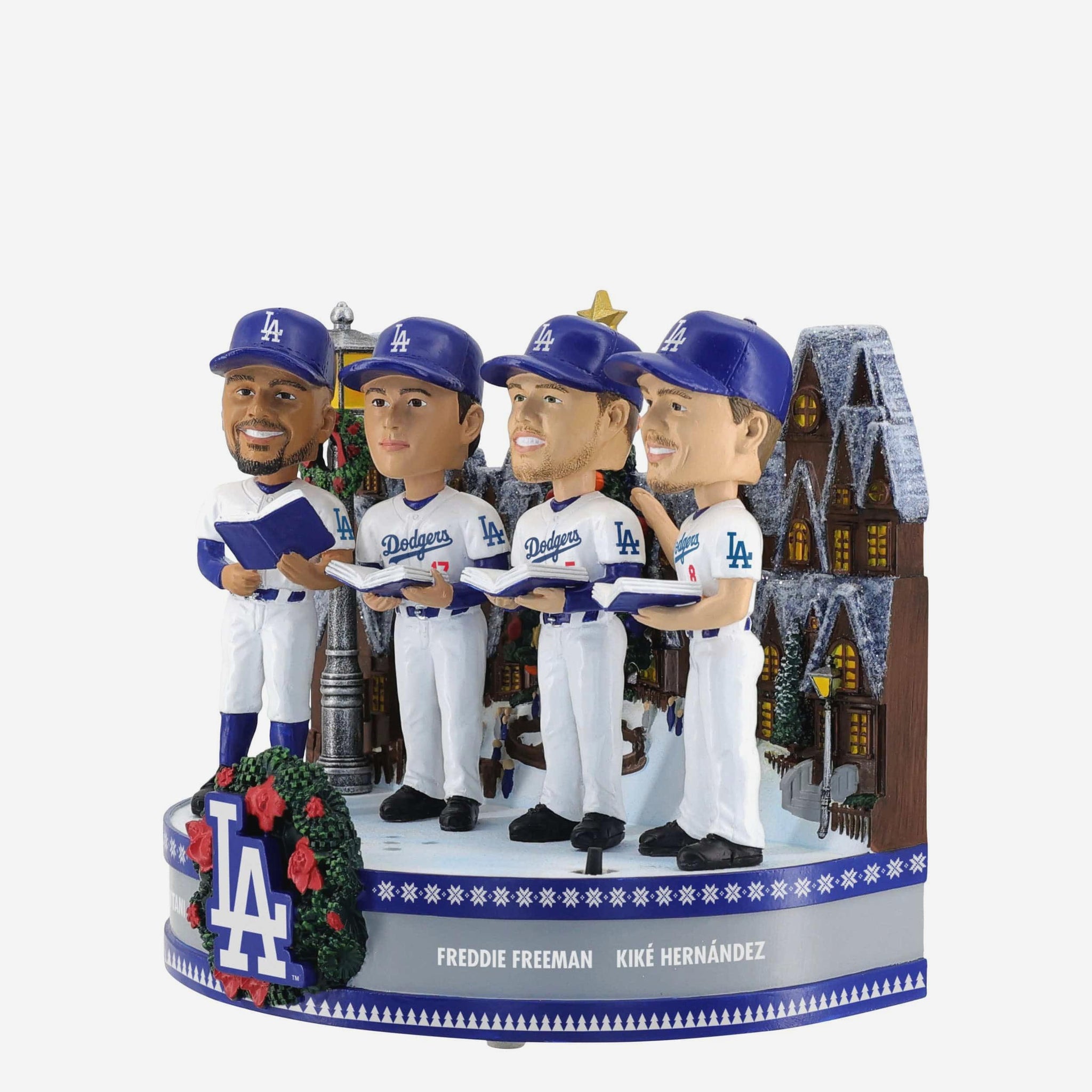 - Miniature festive scene featuring Betts, Ohtani, Freeman, and Hernandez singing classic holiday tunes
