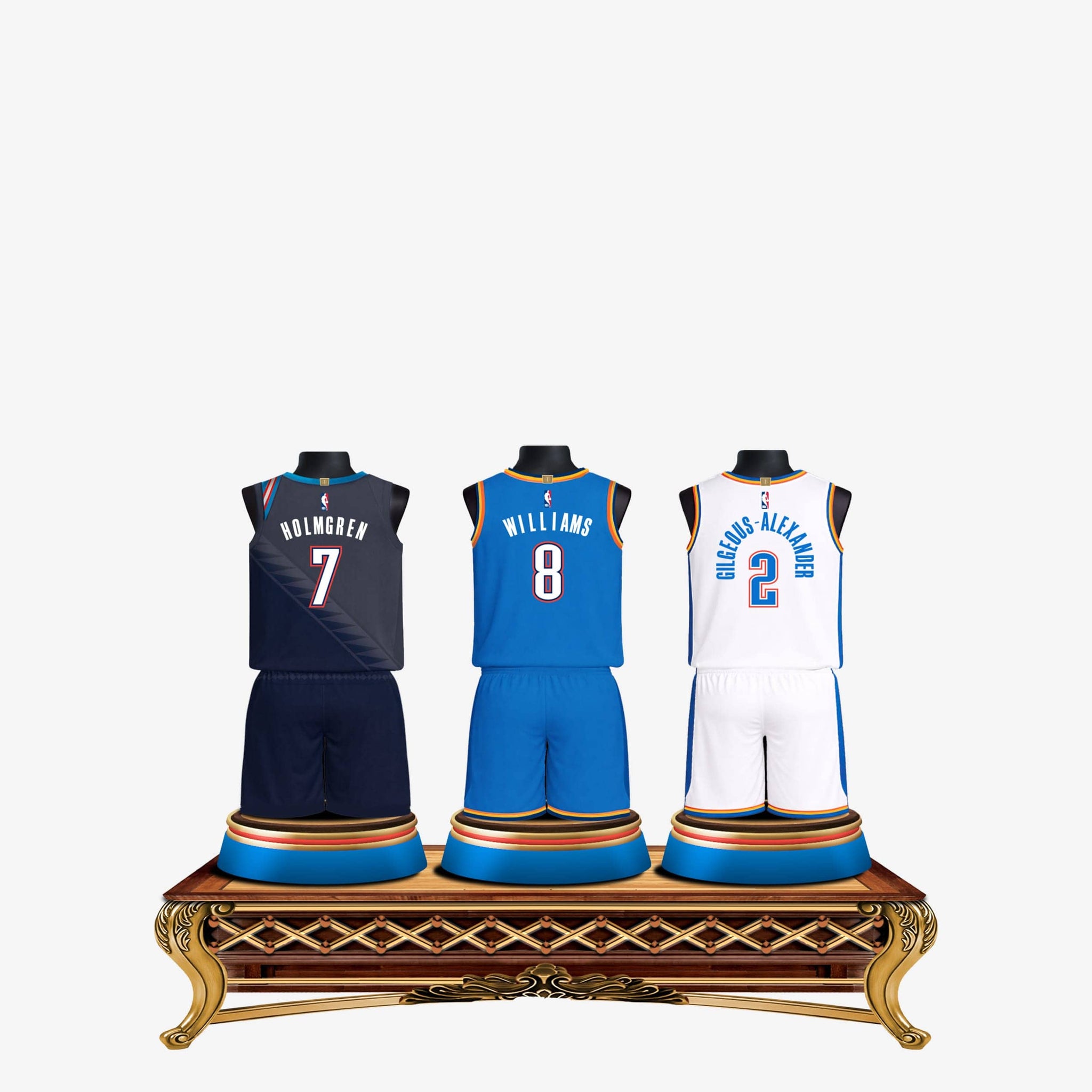 • Portrays Shai Gilgeous-Alexander & Jalen Williams & Chet Holmgren player jersey busts combining for one epic display of team spirit