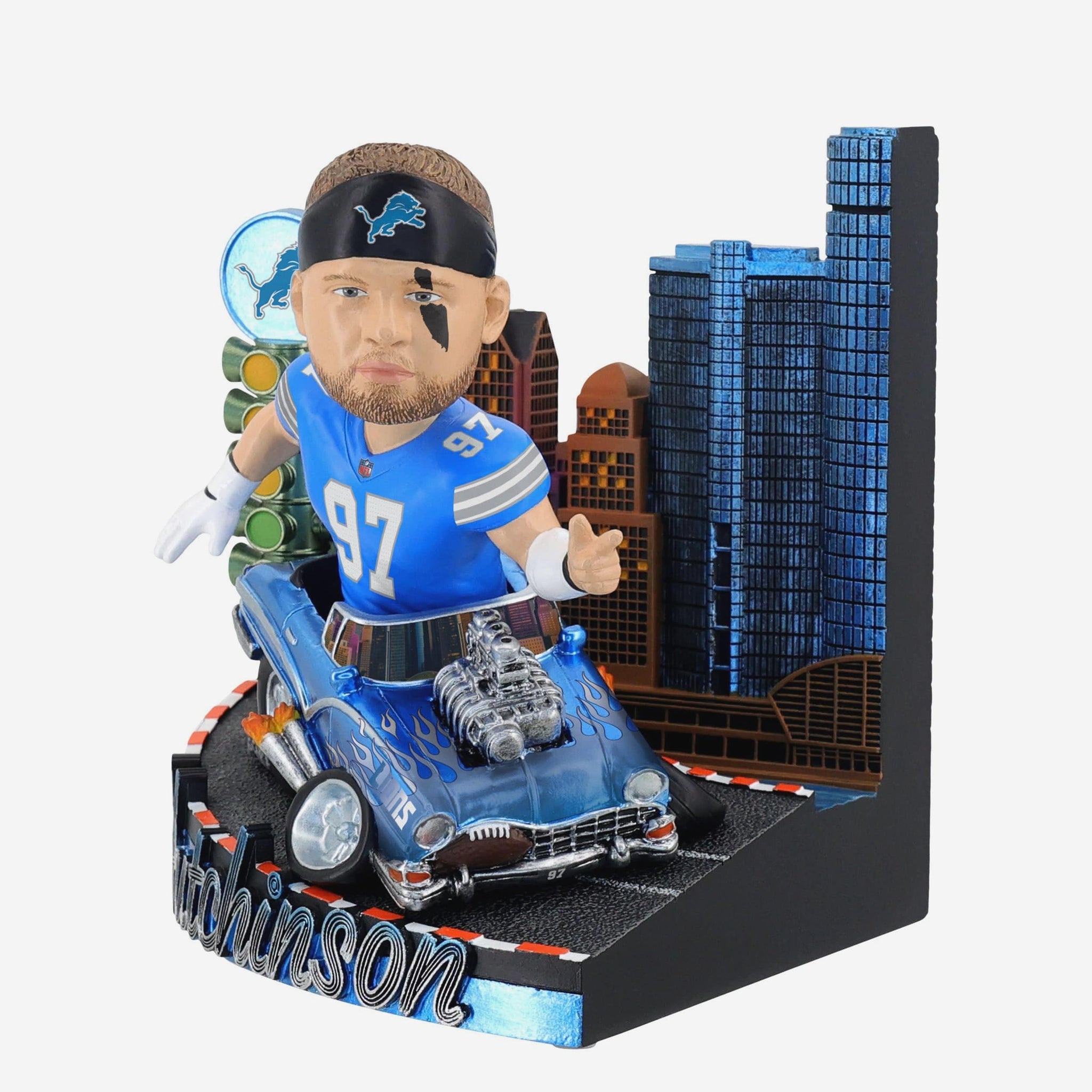 The Motor City Menace has entered the fast lane! Add some Detroit horsepower to your collection with this Aidan Hutchinson Detroit Lions Motor City Bobblehead.