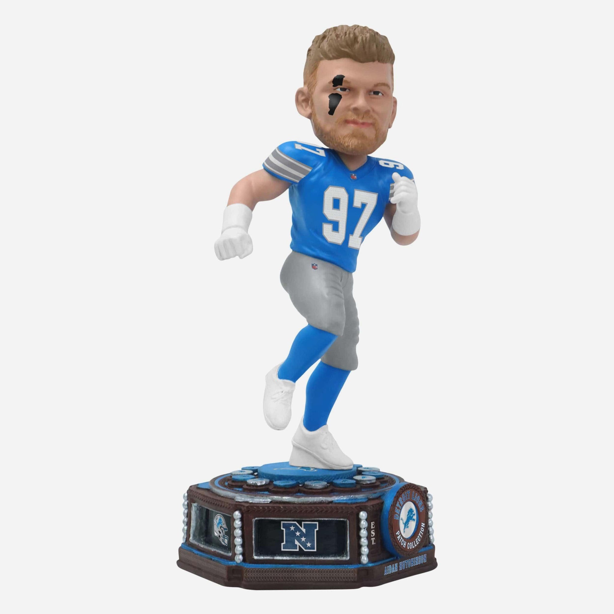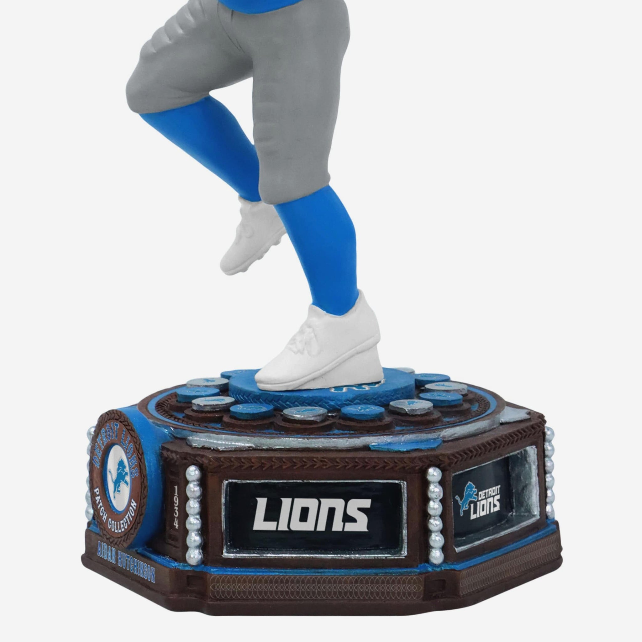 Get ready to patch together your team pride! Take a trip down memory lane with the Aidan Hutchinson Detroit Lions Patch Collection Bobblehead.