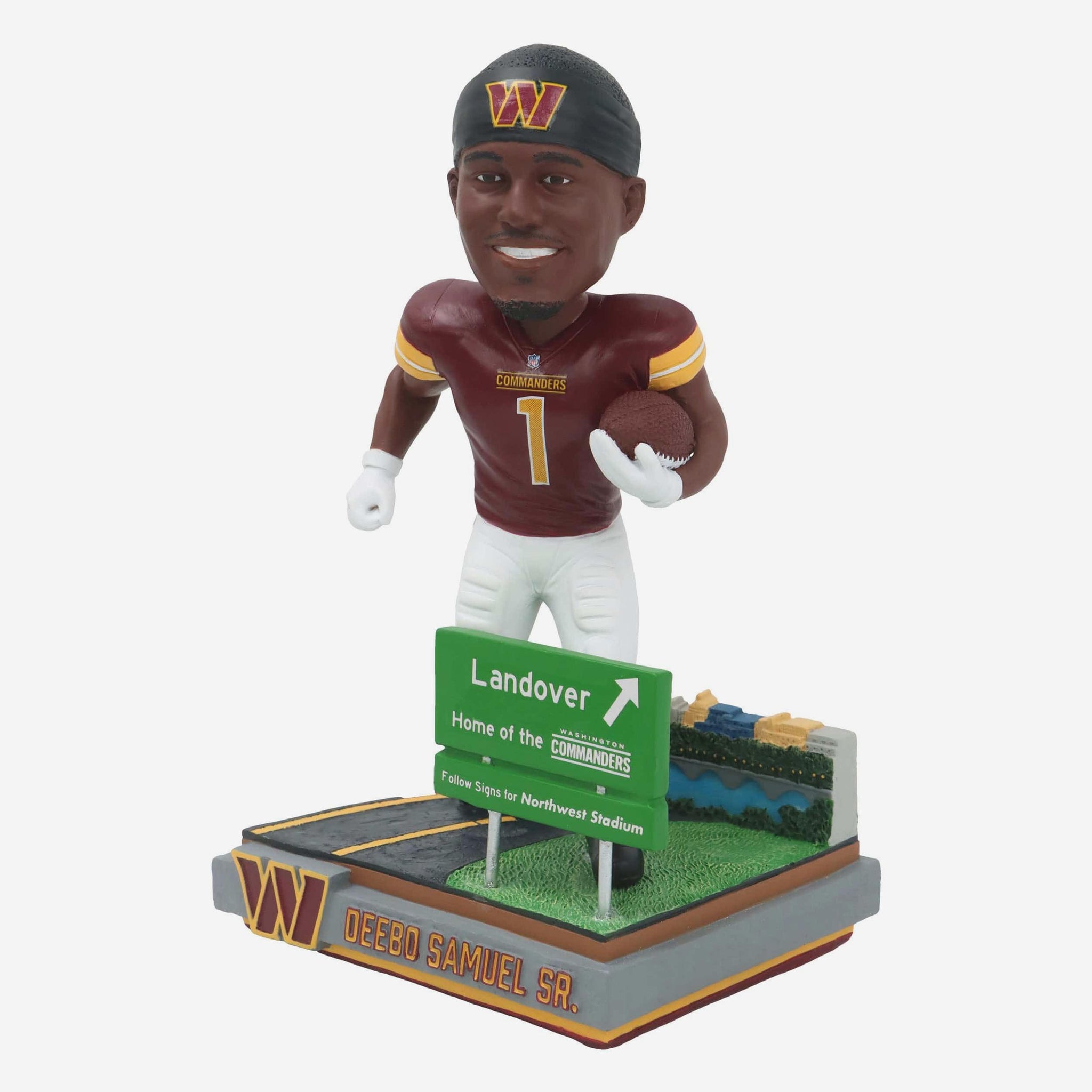 Deebo is off to Washington! Bring home the excitement of this superstar’s next chapter with the Deebo Samuel Washington Commanders Next Stop Bobblehead.