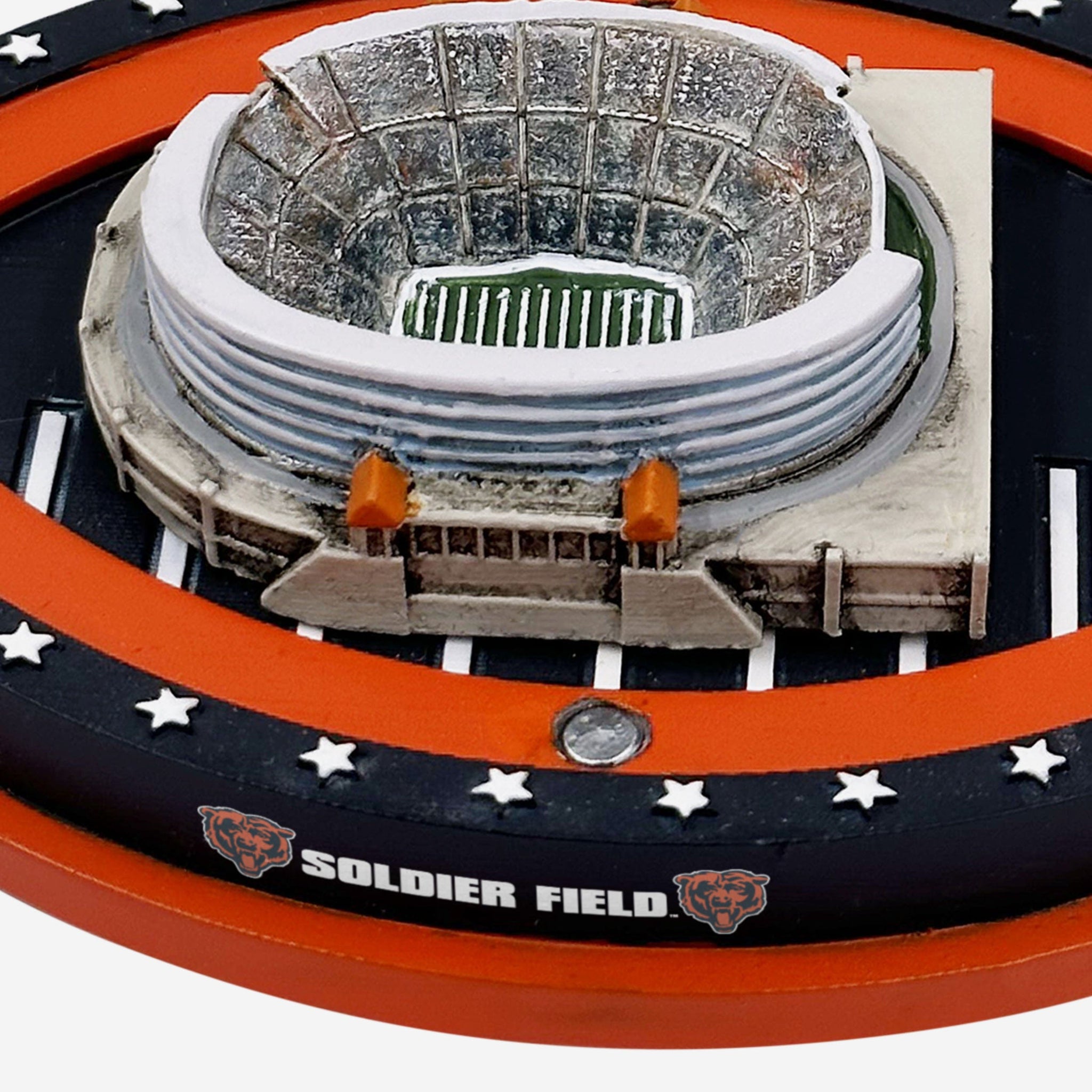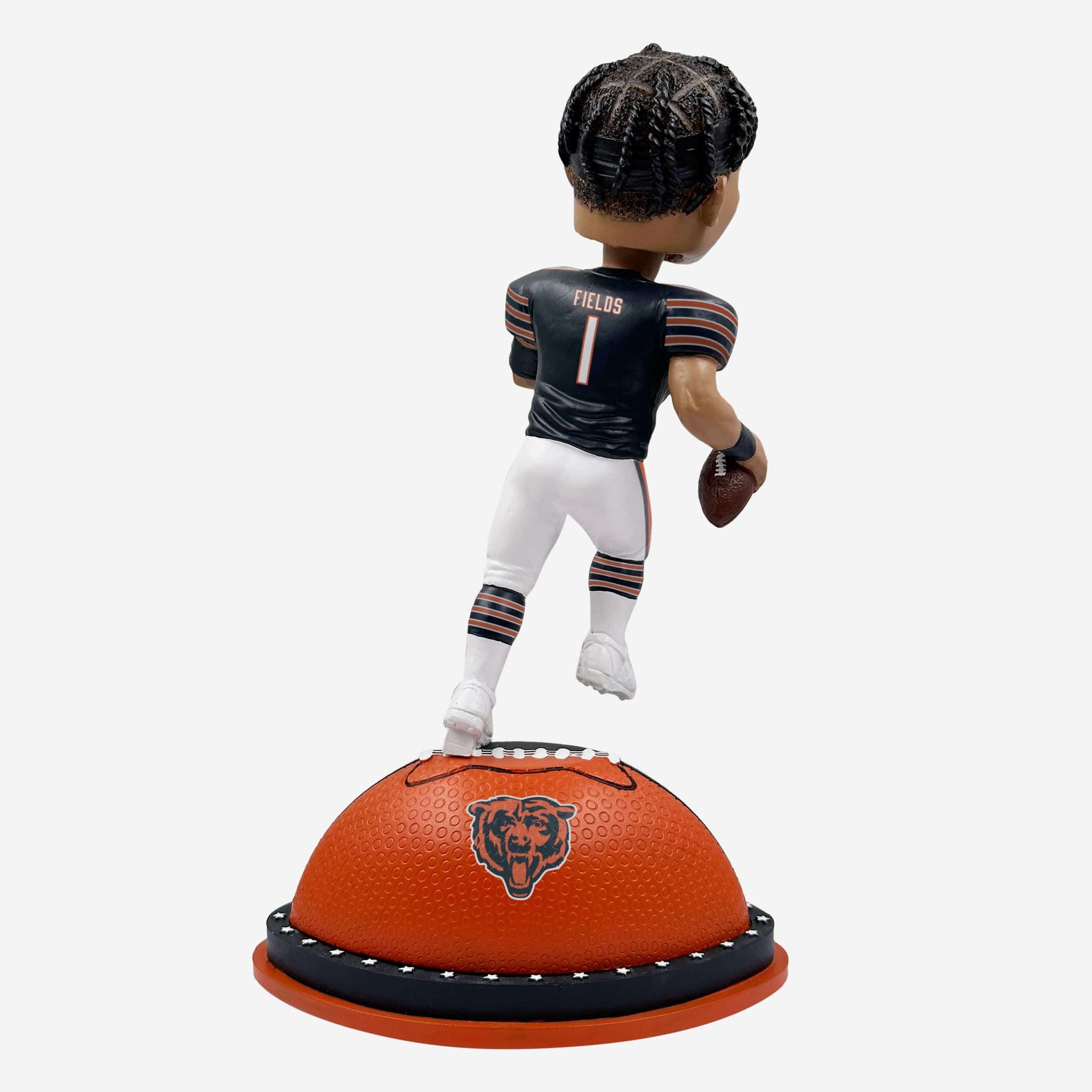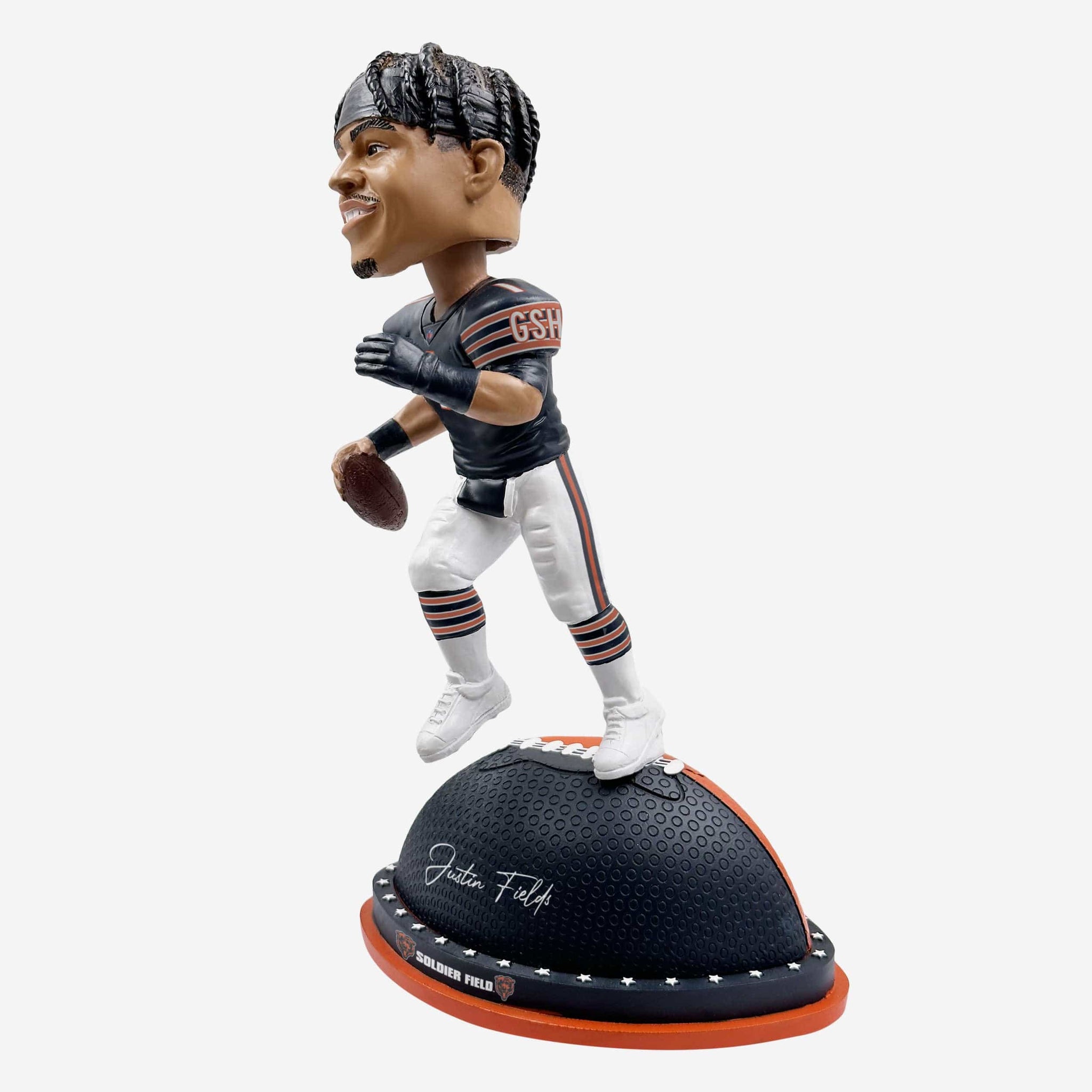 You can't always be at the stadium, unfortunately. But don't worry - Just separate the two halves of the base on this Justin Fields Chicago Bears Magnetic Stadium Base Bobblehead and bring the stadium to you.