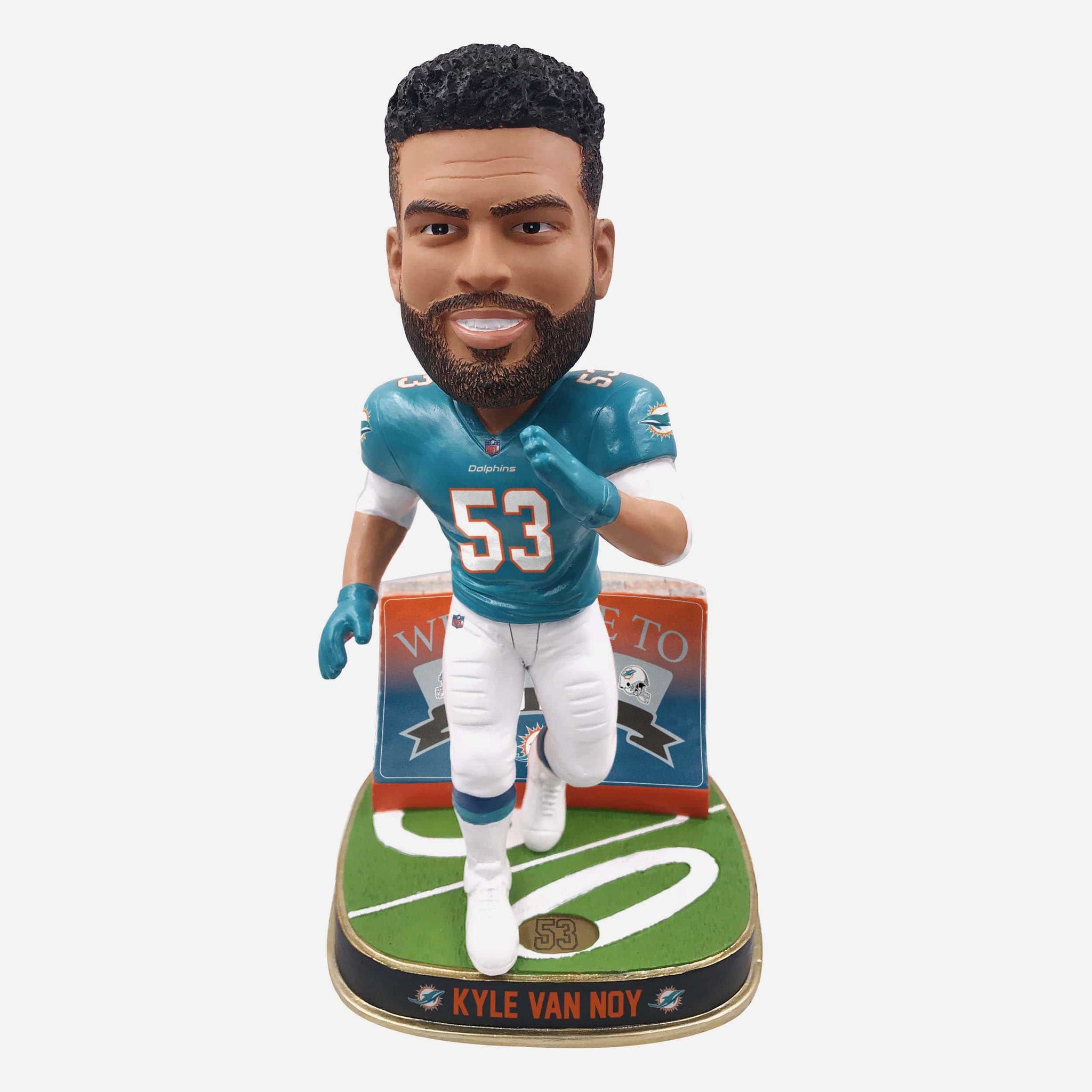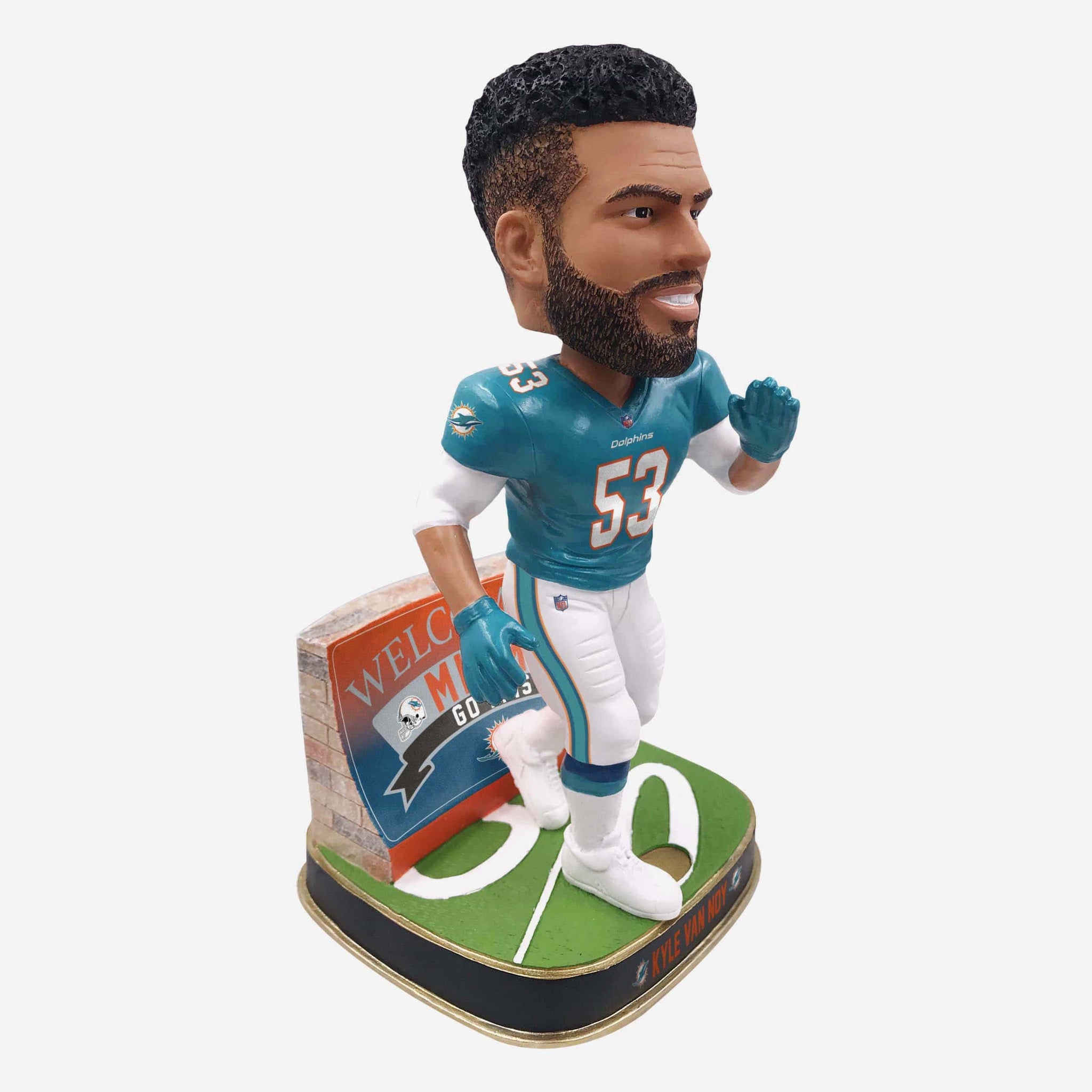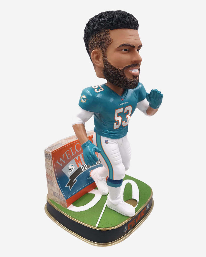 Same face. Brand new place. You've got a shiny new superstar heading to your city, ready to deliver some highlight plays all season long. Life is pretty good. Make it even better by celebrating with this Kyle Van Noy Miami Dolphins Welcome Series Bobblehead. The future is now.