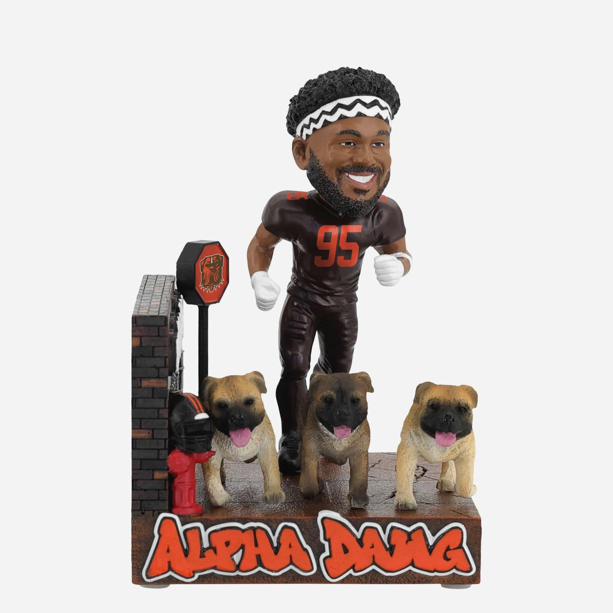Alpha attitude. Dawg Pound dominance. Bring the bite to your shelf with this Myles Garrett Cleveland Browns Alpha Dog Alternate Uniform Bobblehead.