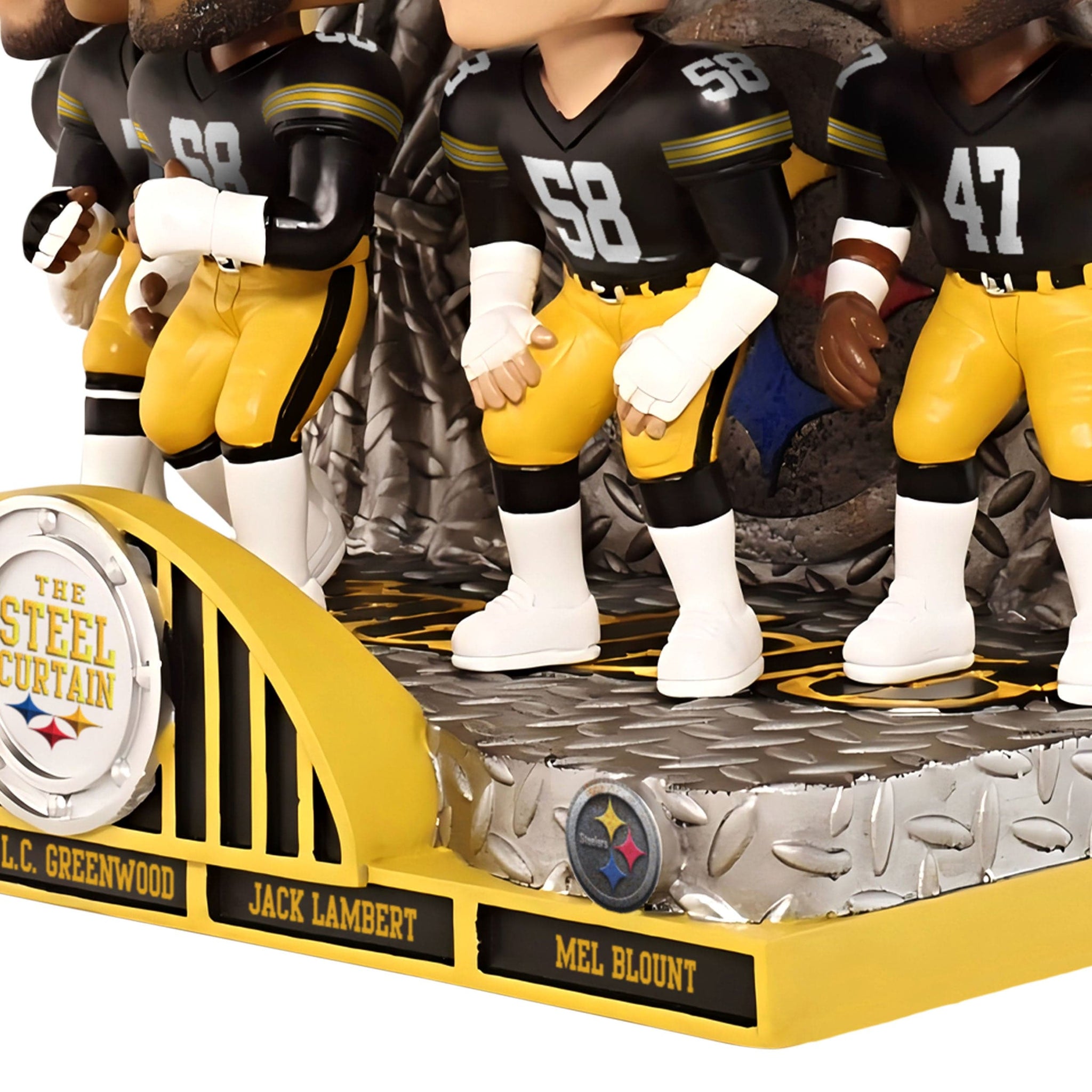 - Portrays Jack Lambert, Jack Ham, Mel Blount, L.C. Greenwood, and Joe Greene wearing their gameday uniforms in action poses, ready to show off the Steel Curtain defense