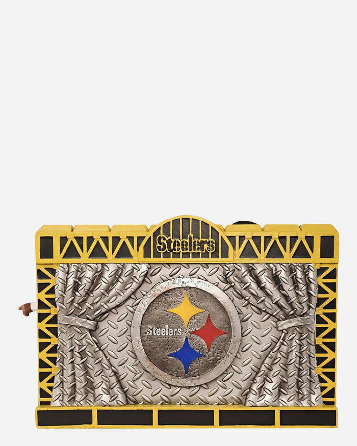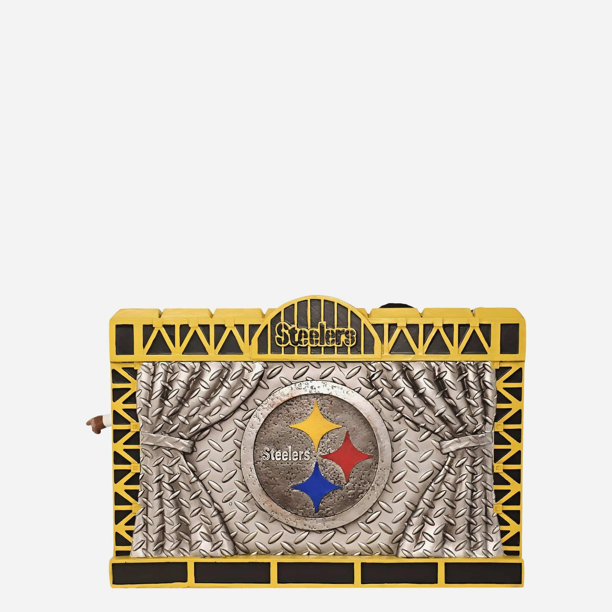 - Thematic team colored, metal backdrop and base with team wordmark name display that will look great in your Steelers collection